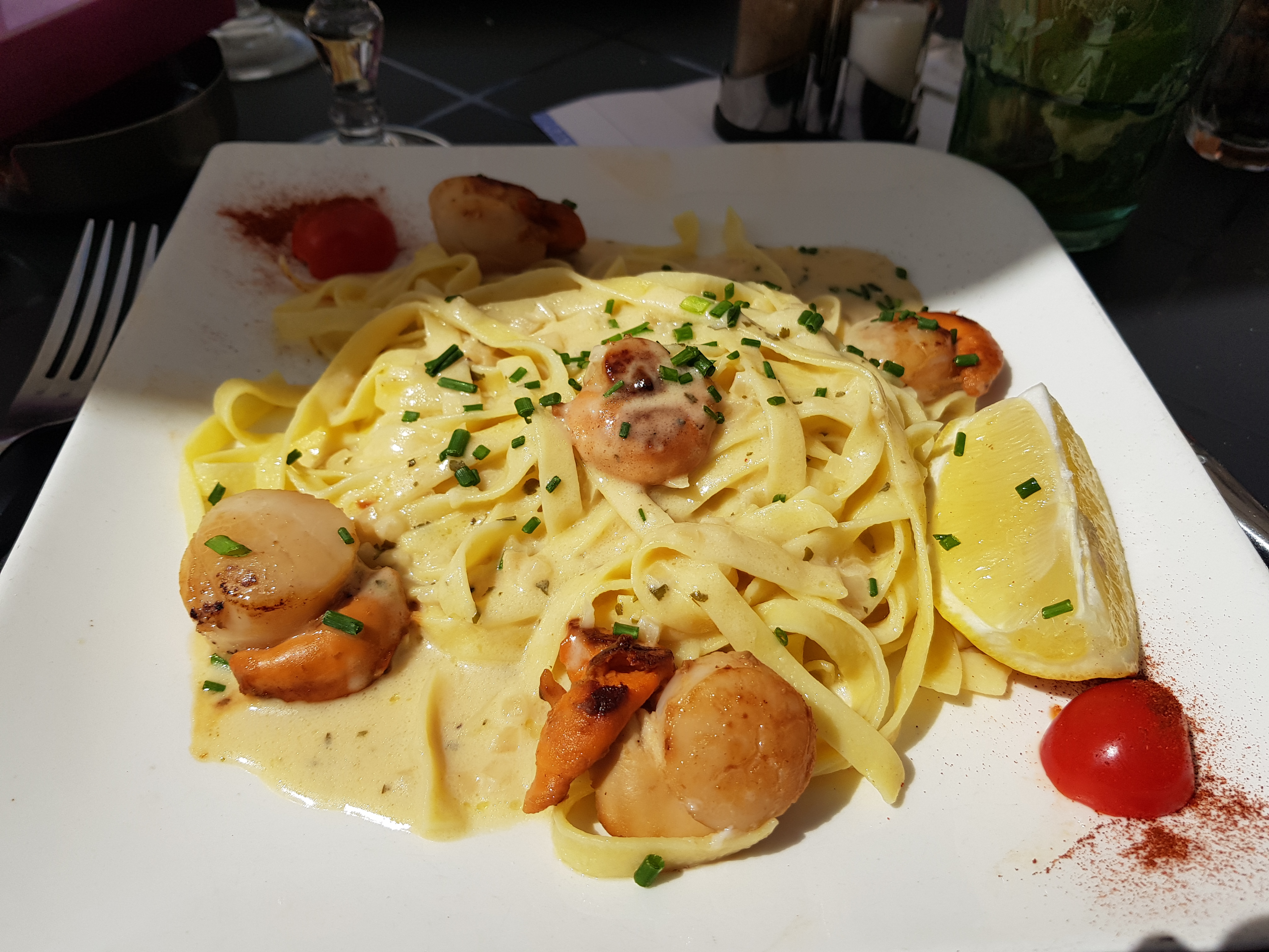 Bien moyen pour le prix,st jacques tagliatelles 18 euros,il fallait chercher les st jacques!!!!! Et sans aucun goût. Un peu 😞 déçu!!