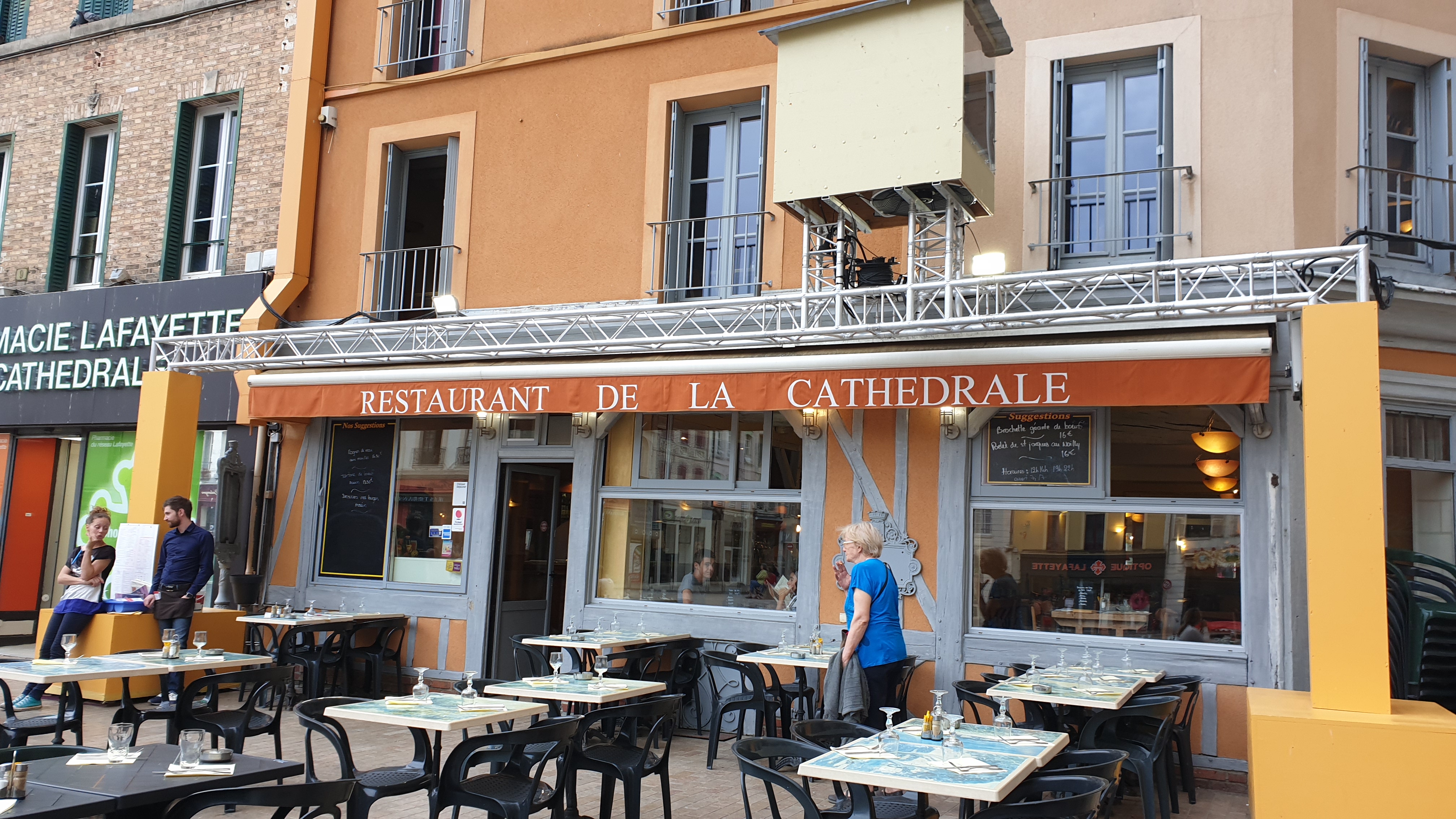 Restaurant super bien placé, au pied de la cathédrale de sens, d'ou son nom. Les moules frites sauce roquefort sont succulentes et les tagliatelles sauce chablis au saint jacques sont un délice aussi. Le camember rôti accompagné de jambon de Parme bien aussi 😀. Une grande terrasse est disponible pour y manger par beau temps 🌞. Je recommande ce restaurant avec plaisir 😁👍
