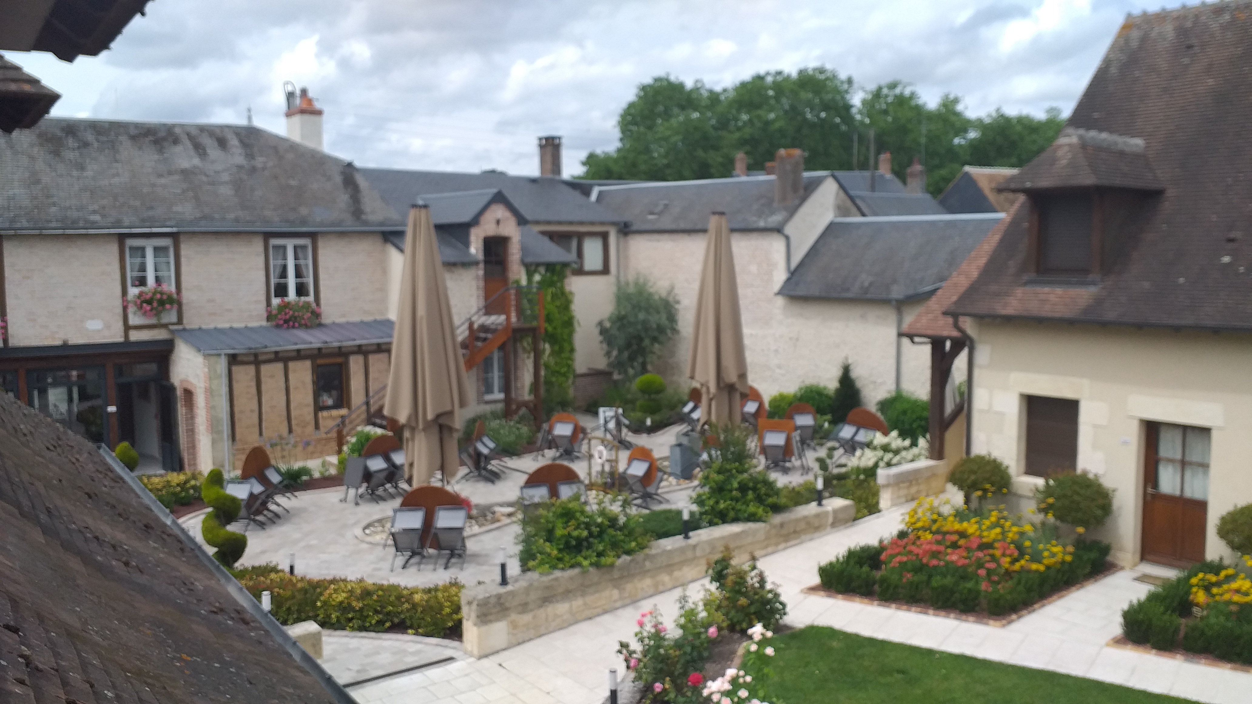Lundi de Pentecôte l'employée qui fait les chambres a été très incorrecte nous précisant qu'elle était seule ce matin et voulait absolument savoir quand nous partions. Petit déjeuner : il a fallu attendre que la serveuse montre le fonctionnement de la cave à vin à des clients avant d'avoir du café. Chien guide aveugle facturé alors qu'il ne doit pas l'être. Dîner correct, attente pour être servis en vin. Nous avons donc mangé le fromage sans vin. Mieux vaudrait le laisser sur la table plutôt qu'un tralala inutile. On n'est pas chez un chef étoilé. Sinon très calme, très propre, très belle petite bourgade.