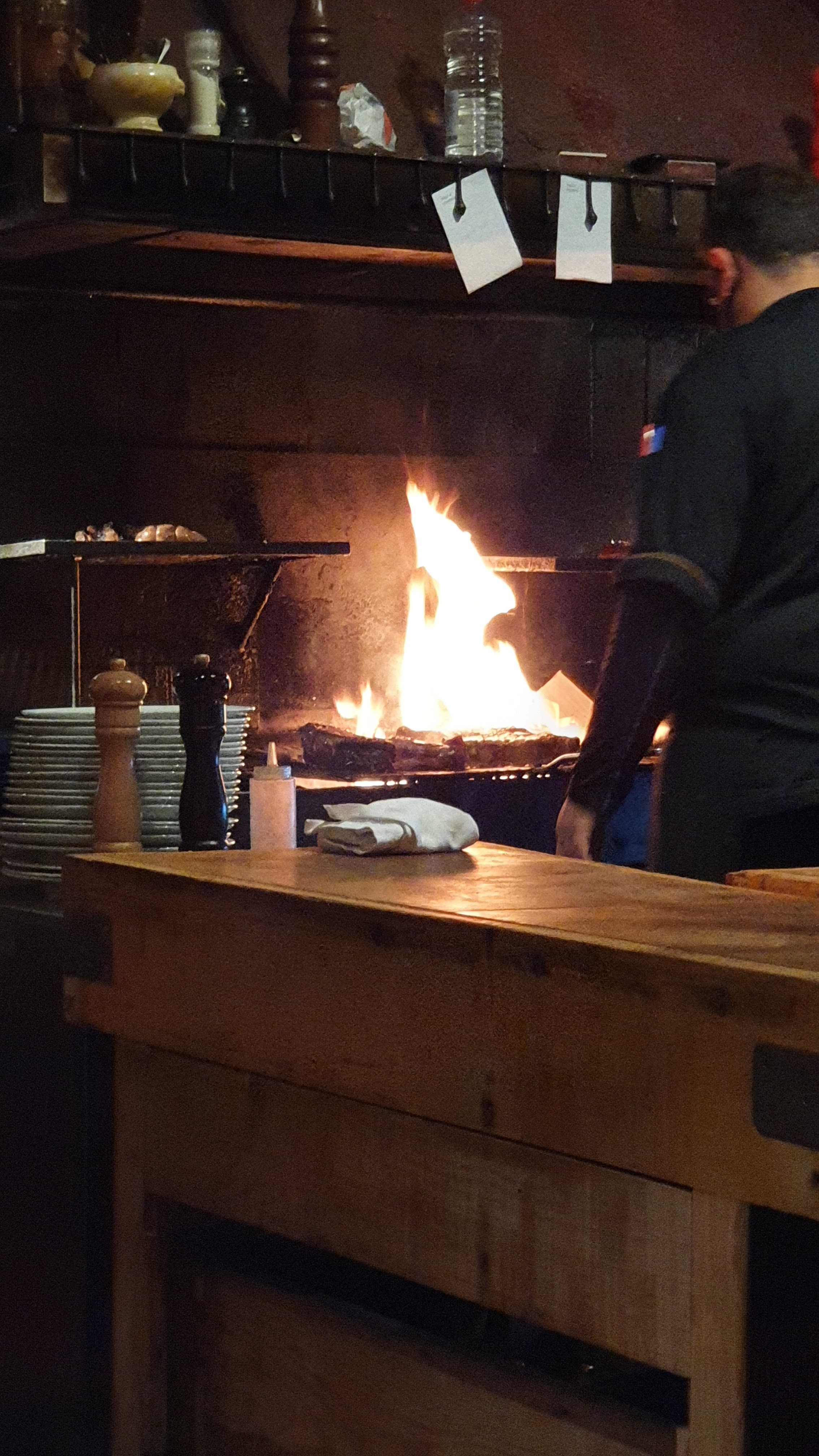 Découverte de ce restaurant, avec un cadre authentique. Ambiance chaleureuse avec la cuisson des viandes à la cheminée, faite devant nos yeux. Un vrai plaisir !! 2 menus proposés, mais pas de choix à la carte. Viande de qualité et excellente. Un moment fort sympathique.