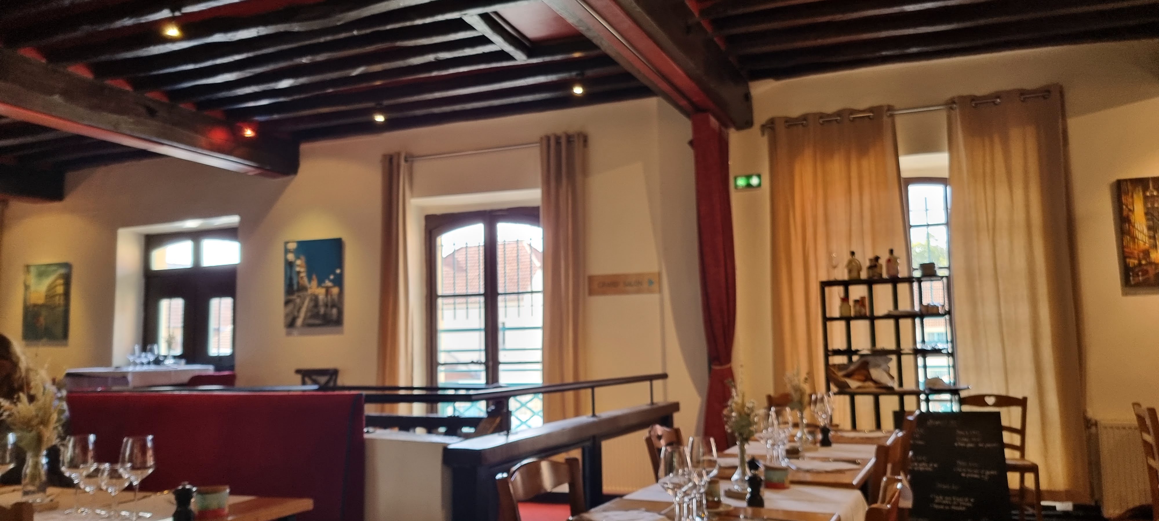 Décor magnifique poutre apparente, accueil sympathique nourriture bonne et abondante le prix a augmenté par rapport à avant mais ça les vaut. Petits soucis avec le rognon il était sec la serveuse a tout de suite vu le problème elle nous a amené une petite sauce d accompagnement. Je le recommande.