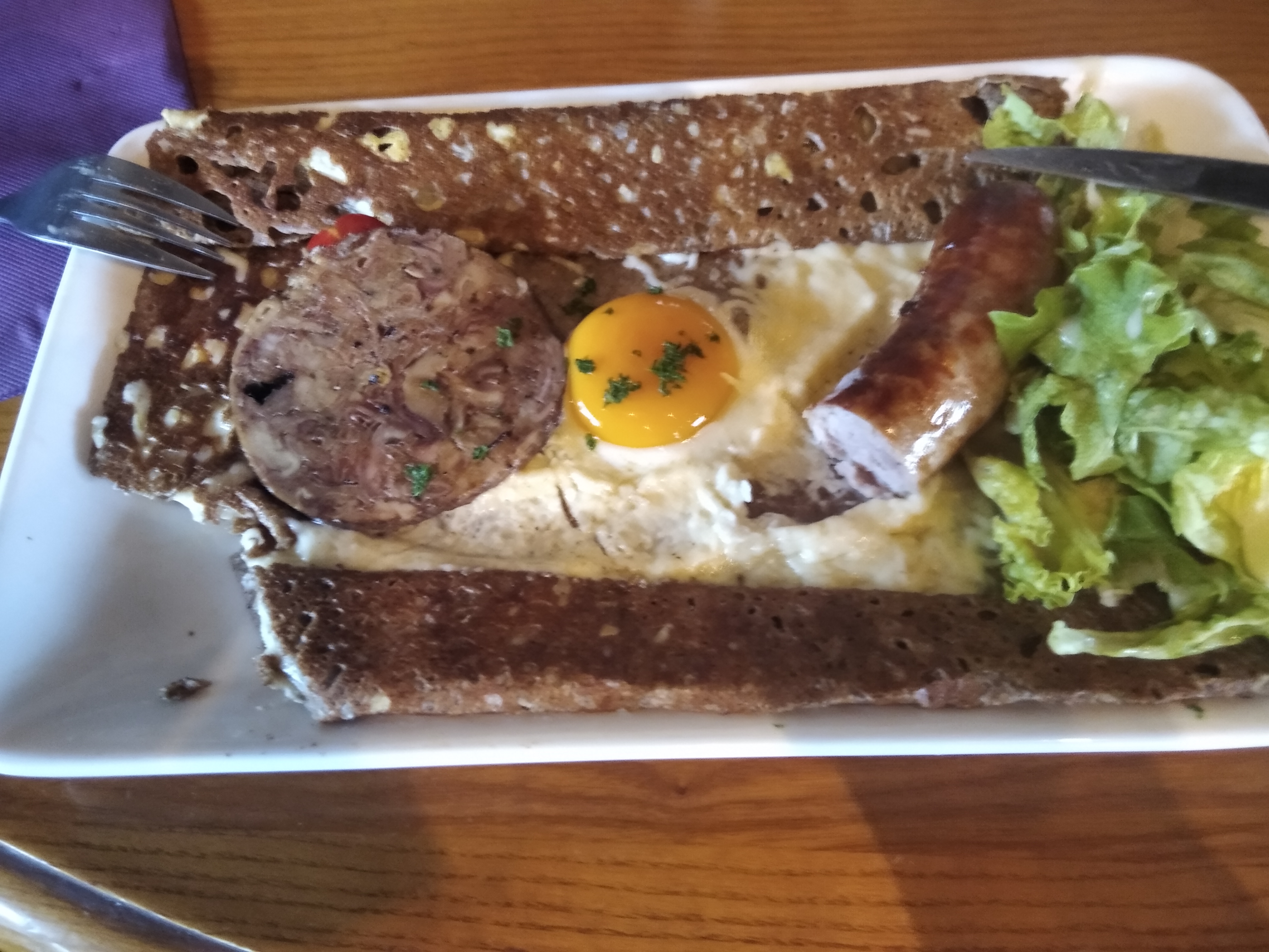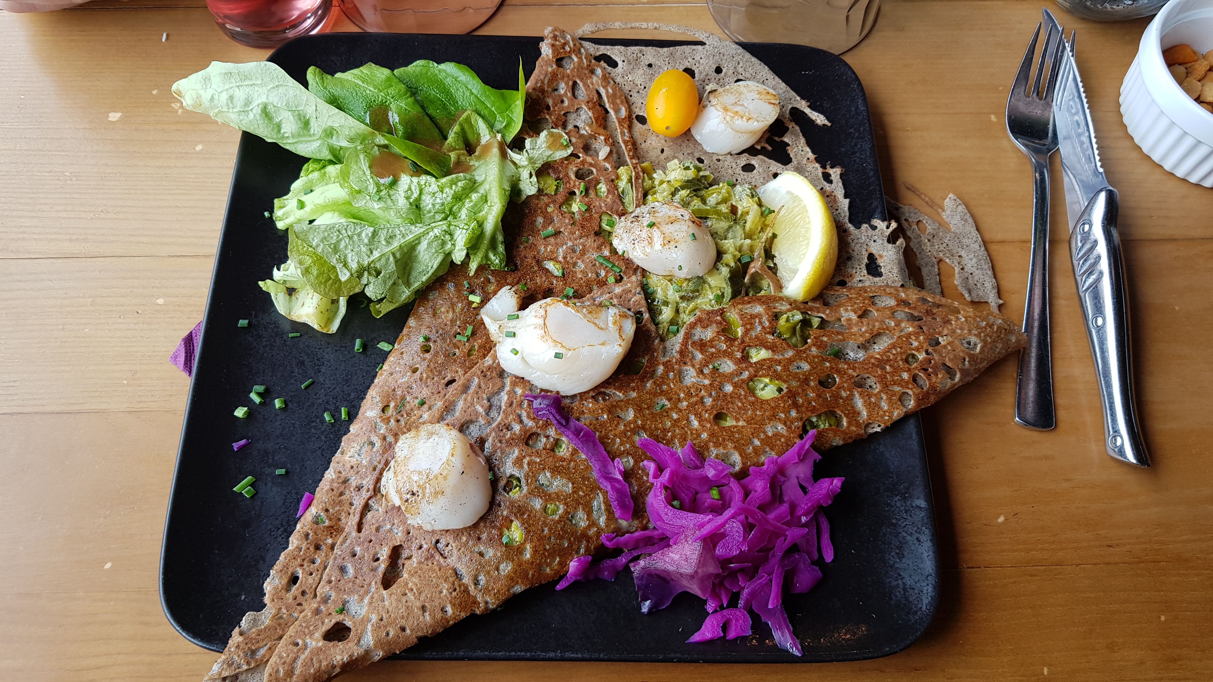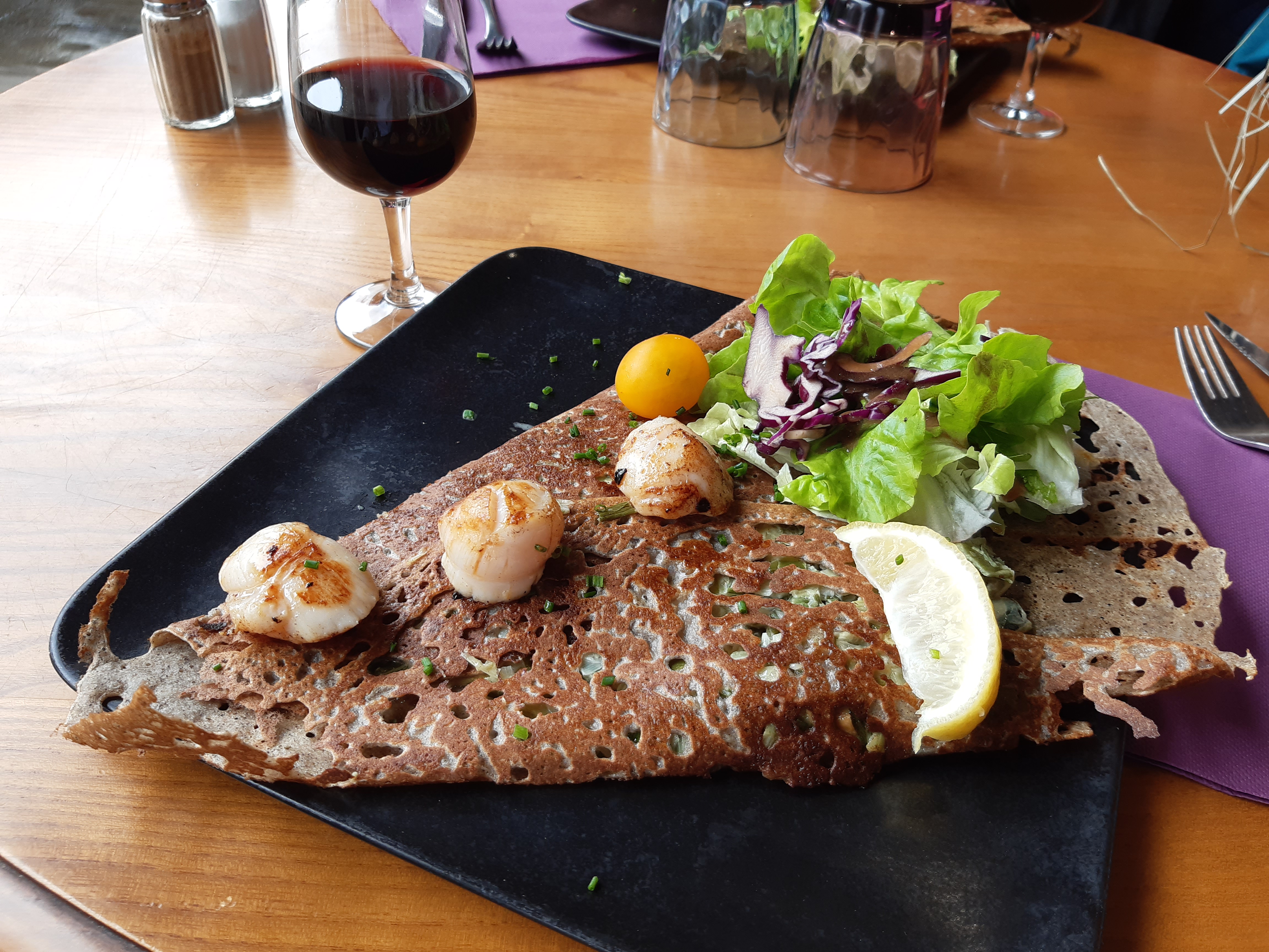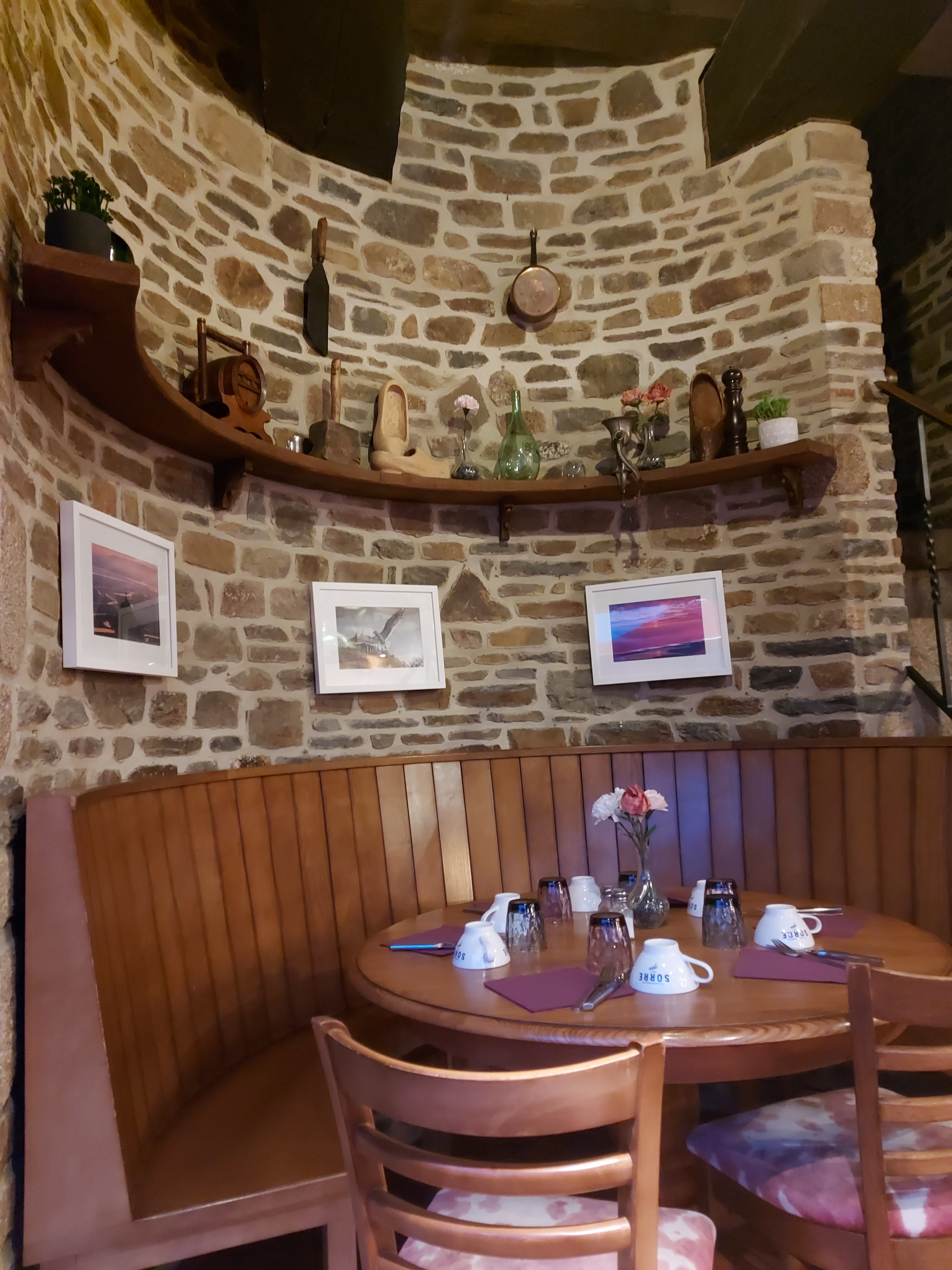 Établissement dont les pierres contribuent au charme d’une ambiance locale affirmée. Un service très efficace et souriant orchestré par un couple de patrons accueillants. Un uniforme marins portés à l’endroit à l’envers. Au goût de chacun ! 😉 Un plat qui malgré notre appétit gargantuesque a su ravir nos papilles et tendre la peau de nos bedaines. En bref, ceux qui prétendent ne pas être satisfait de leur passage à « la galette » ne peuvent que faire preuve de mauvaise fois 😎