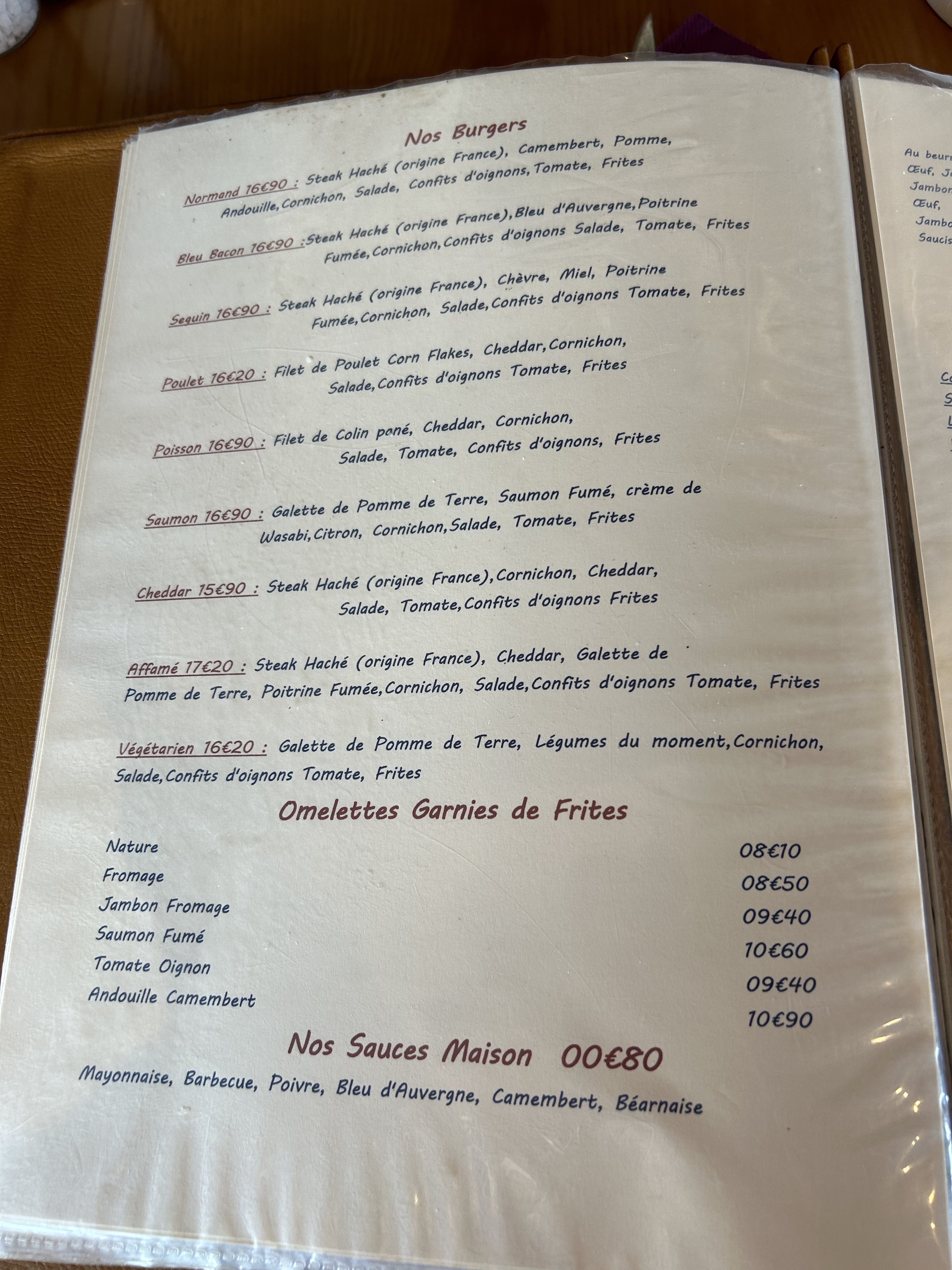 De passage au mont Saint-Michel pour la journée, repas du midi dans ce restaurant où les prix sont abordables mais petite surprise à la fin pour la note: on nous propose des sauces « maisons » avec un large choix puis lorsqu’on arrive pour payer l’addition on apprend que les sauces sont en suppléments! Pas très commercial de la part du restaurant de proposer un supplément sans évoquer les frais possibles en plus. Cependant le restaurant reste bon et le service rapide.