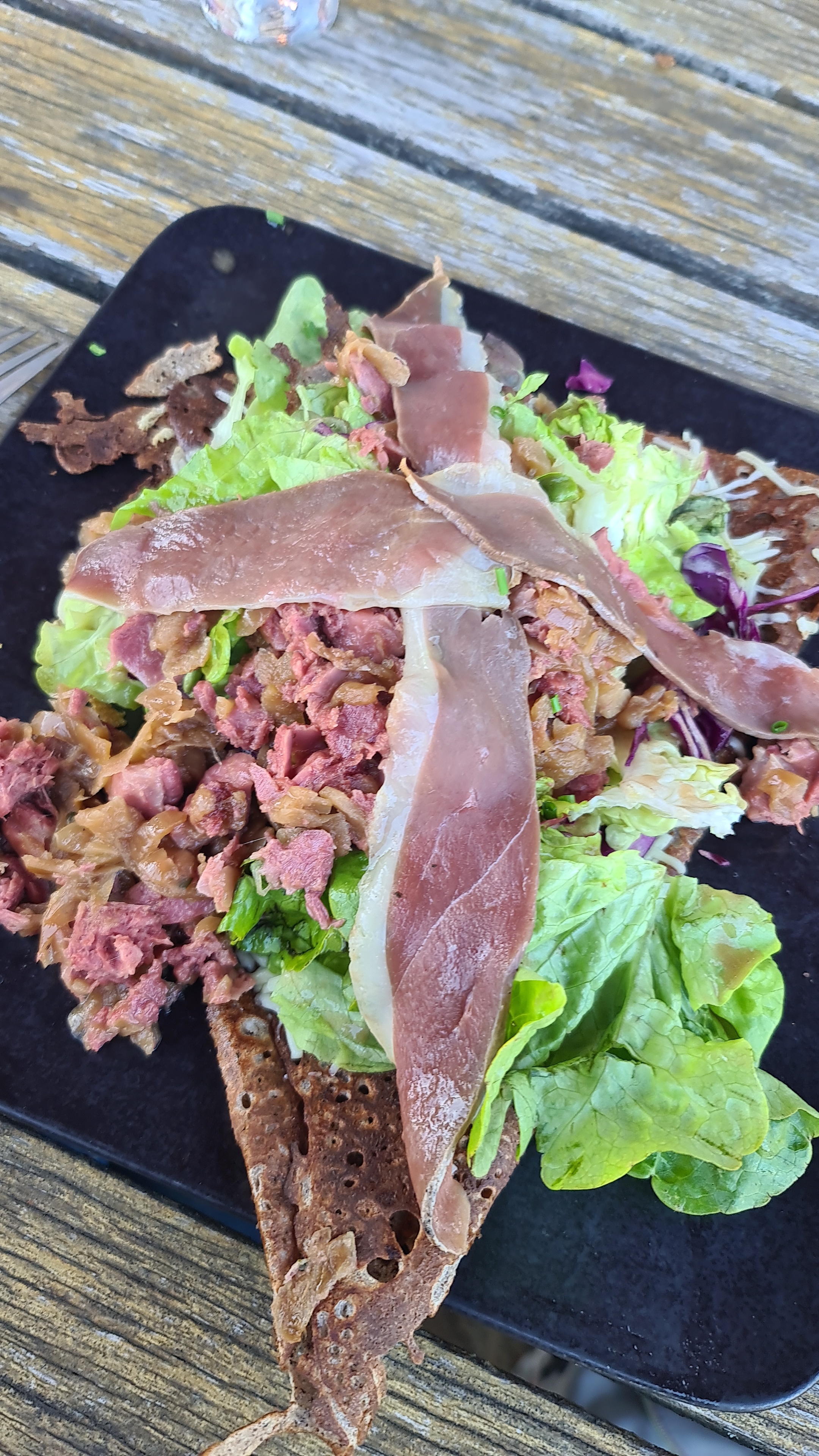 Une première pour nous,mais sans doute pas la dernière. En vacances nous avons été sur un coup de tête dans ce resto. Et quelle découverte. Le personnel.souriant et à l'écoute. Le cadre est sympa. Les galettes sont top. Allez y on y mange très bien.. rapport qualité prix raisonnable.