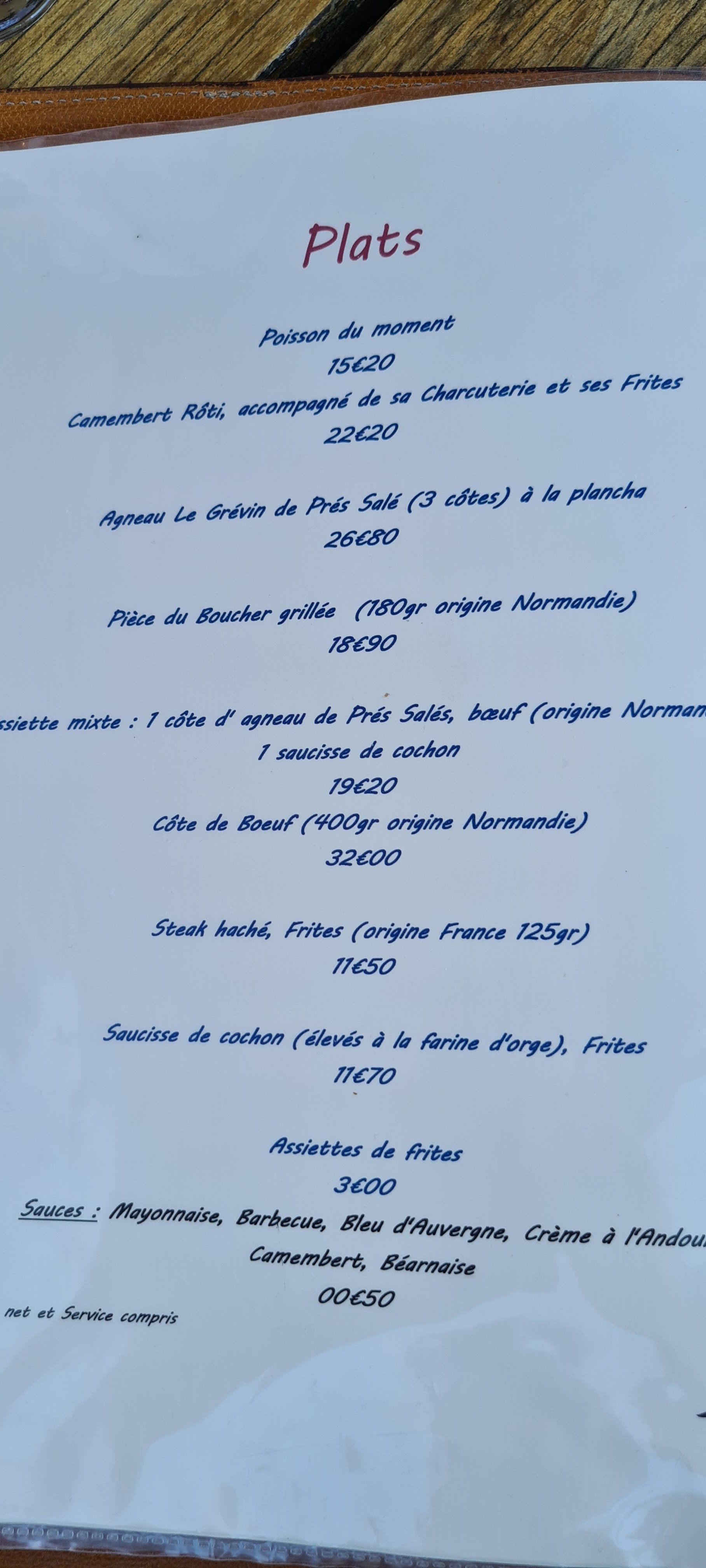 Pour nos 2 soirs au Mont Saint Michel notre chambre d’hôte nous a conseillé quelques restaurants dont celui-ci. Nous y avons mangé les 2 soirs. Le service est agréable, les plats excellents !! C’est génial de voir en début de carte, l’origine de tous les produits !