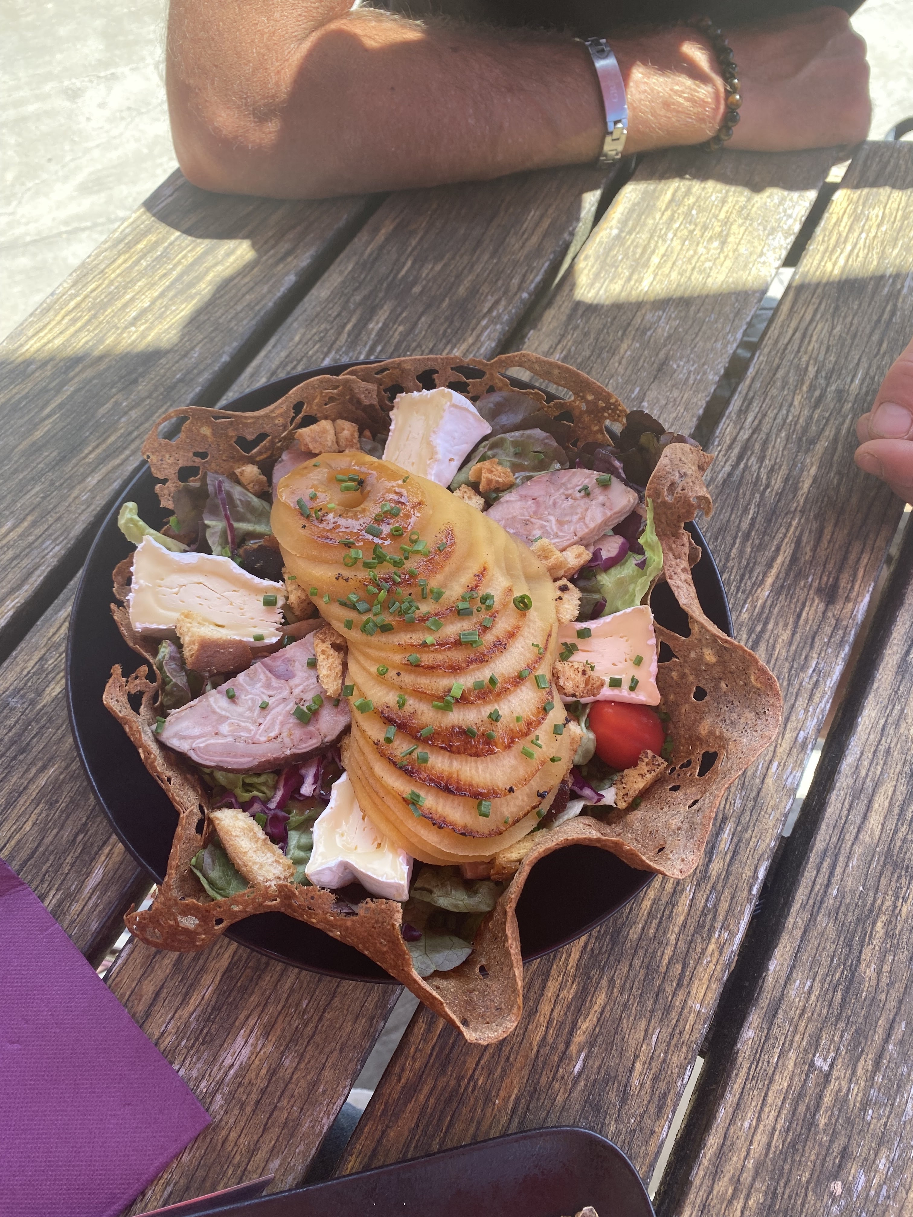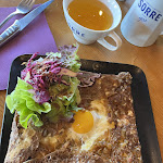 Une belle découverte. Personnel agréable, lieu dog friendly. J'ai commandé une galette auvergnate qui était très bonne et la quantité était très correcte. Juste une petite remarque : pensez à mettre un panneau sur la porte des toilettes pour éviter que les clients l'ouvre rapidement quand les autres font la queue à l'intérieur 😉