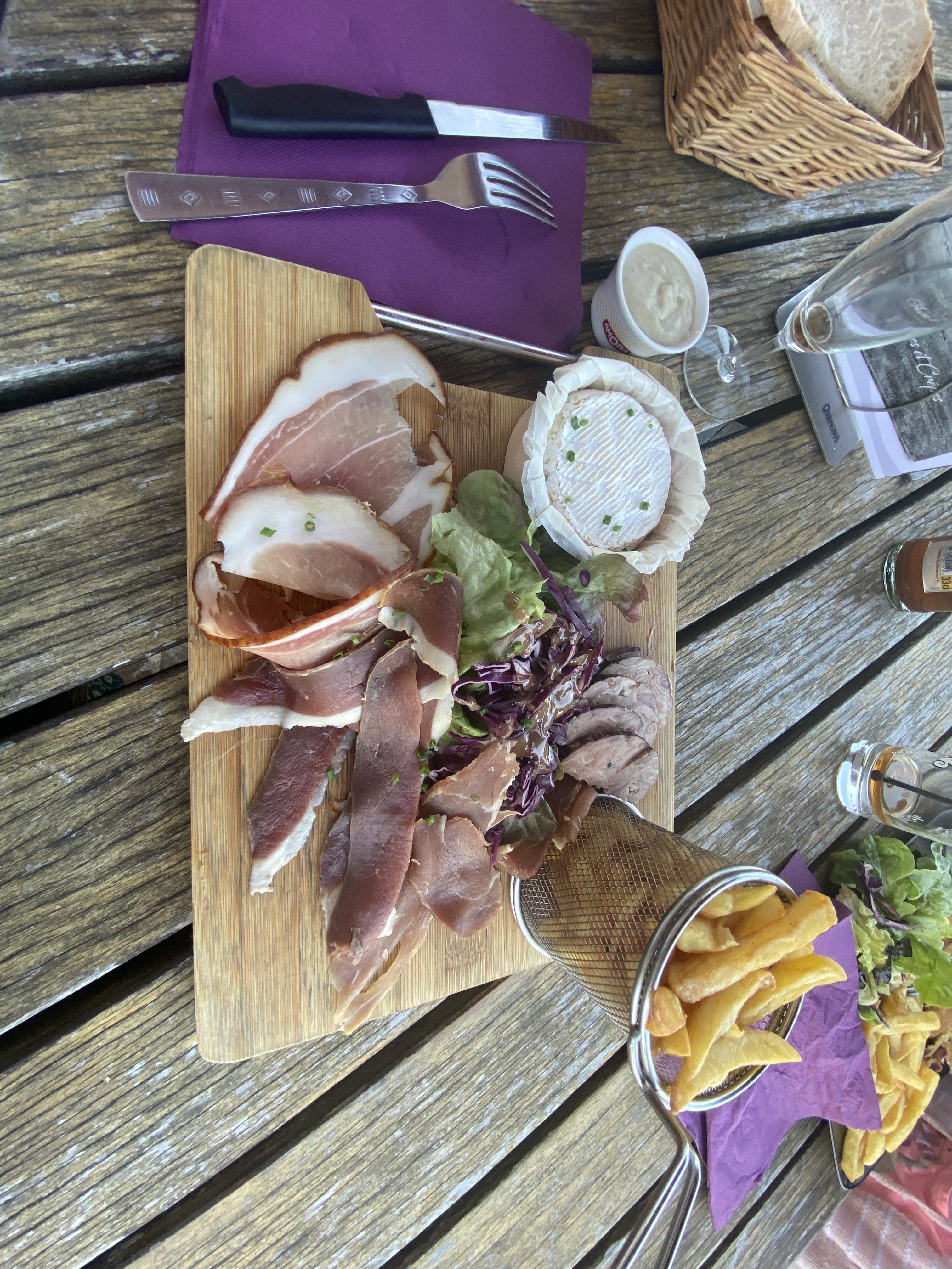 Plateau de charcuterie pas terrible et galette au jambon moyen surtout j ai demandé un moule frites et mon dit que c est pas la saison ok mais surtout le restaurant en face en feussai le bisqu,in