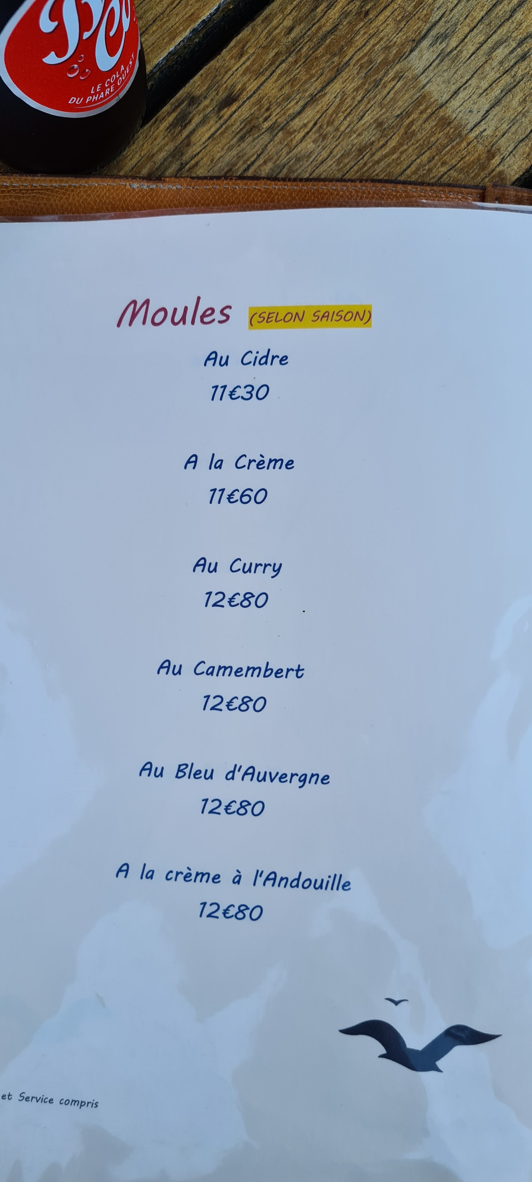 Nous avons eu l'occasion de aller dîner un soir à 4 avec mes 2 enfants, la salle est très bien les serveuse très gentil mais nous avons été déçu concernant la cuisine. Pas de moules on me dit que ce n'est pas la saison il faut attendre juillet !!!!!!!!! Pour le prix proposé j'ai été assez déçu pat exemple dans notre plas nous avons eu des frites surgelés, les crêpes on sent tout de suite quel ne sont pas fait maison bref dommage pour le prix et surtout pour le coin nous avons été déçu