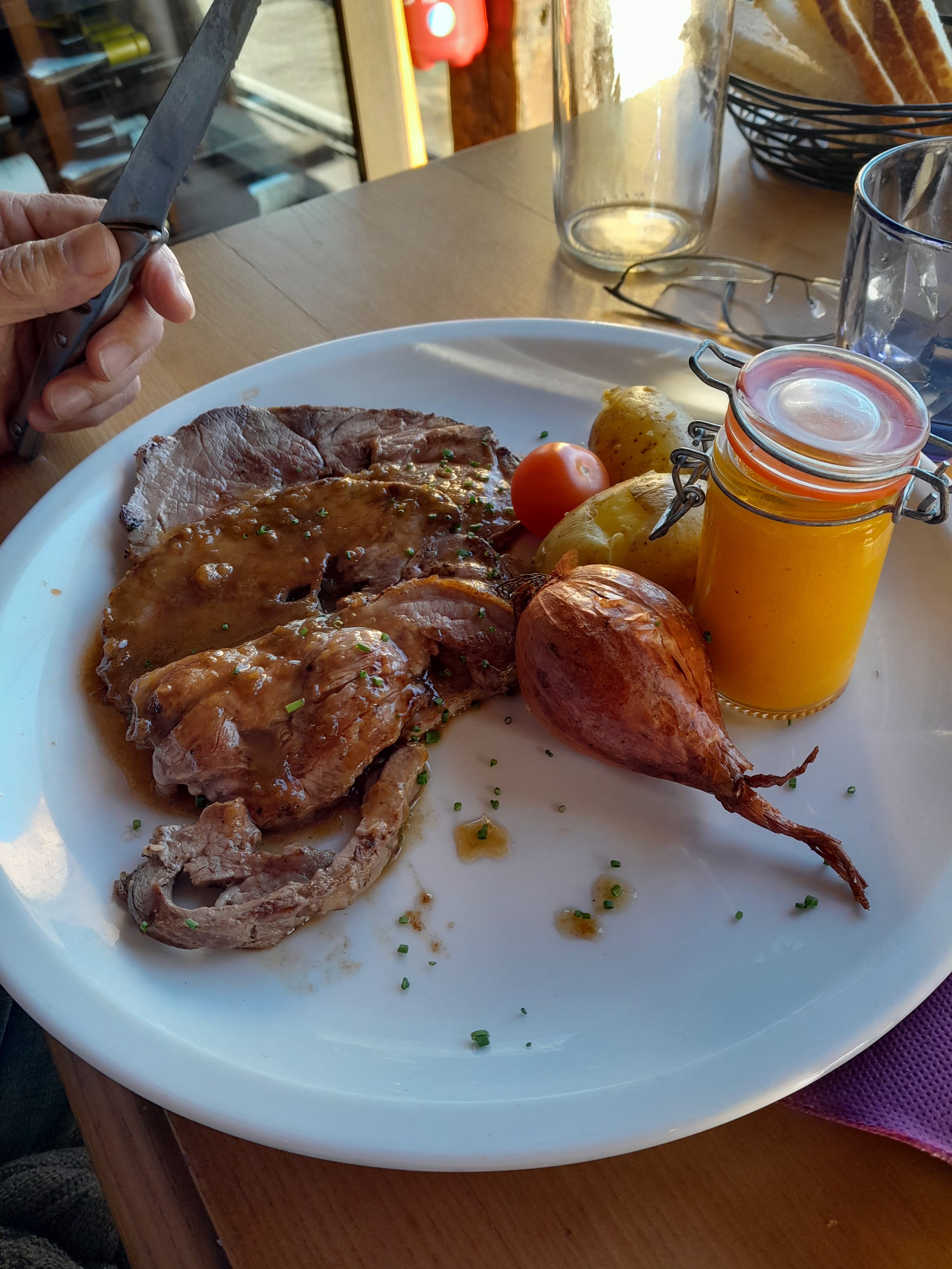 Les plats sont bons et très généreux. Seul petit bémol la fumée qui sort du passe plat est un peu dérangeante quand on est au bout de la table de 10 personnes. La terrasse est sympa mais elle est réservée aux groupes de moins de 10 personnes.