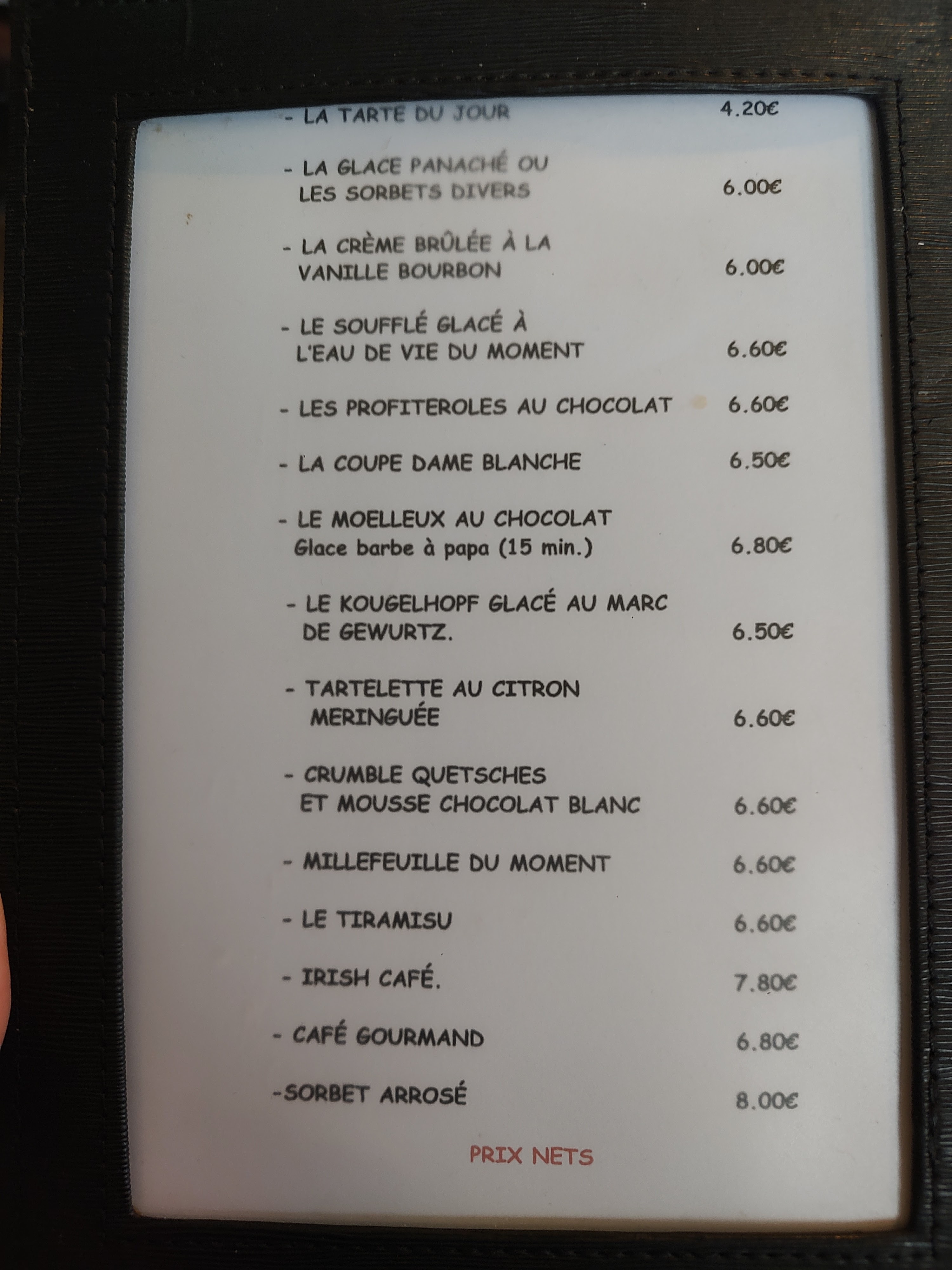 Ça fait un an que je passe devant tous les jours. Et je m'y suis arrêté avec mon fils. Très bon établissement. Nous avons pris chacun un cordon bleu traditionnel et un au munster. Suivis d'un dessert. Profiteroles à tomber. Vraiment ça fait des années que je n'ai plus pris de profiteroles au restaurant, tellement je suis déçu de tomber systématiquement sur des choix secs ou durs. Et là ils sont frais et bons. Divins même. Et là crème fouettée.... Une tuerie Je recommande cet établissement les yeux fermés.