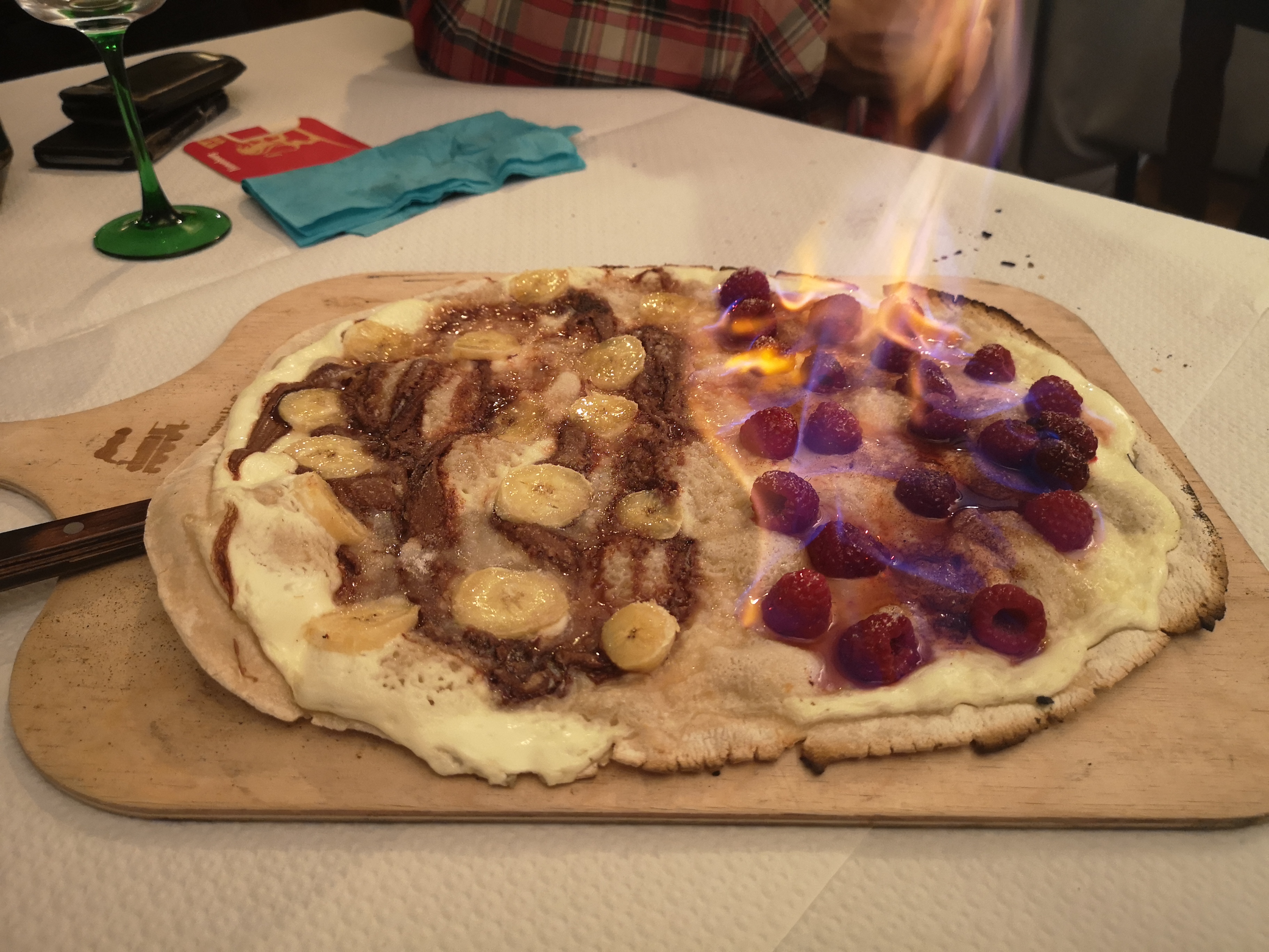 Super tarte flambée surtout celle pour le dessert -> sucrée + cannelle