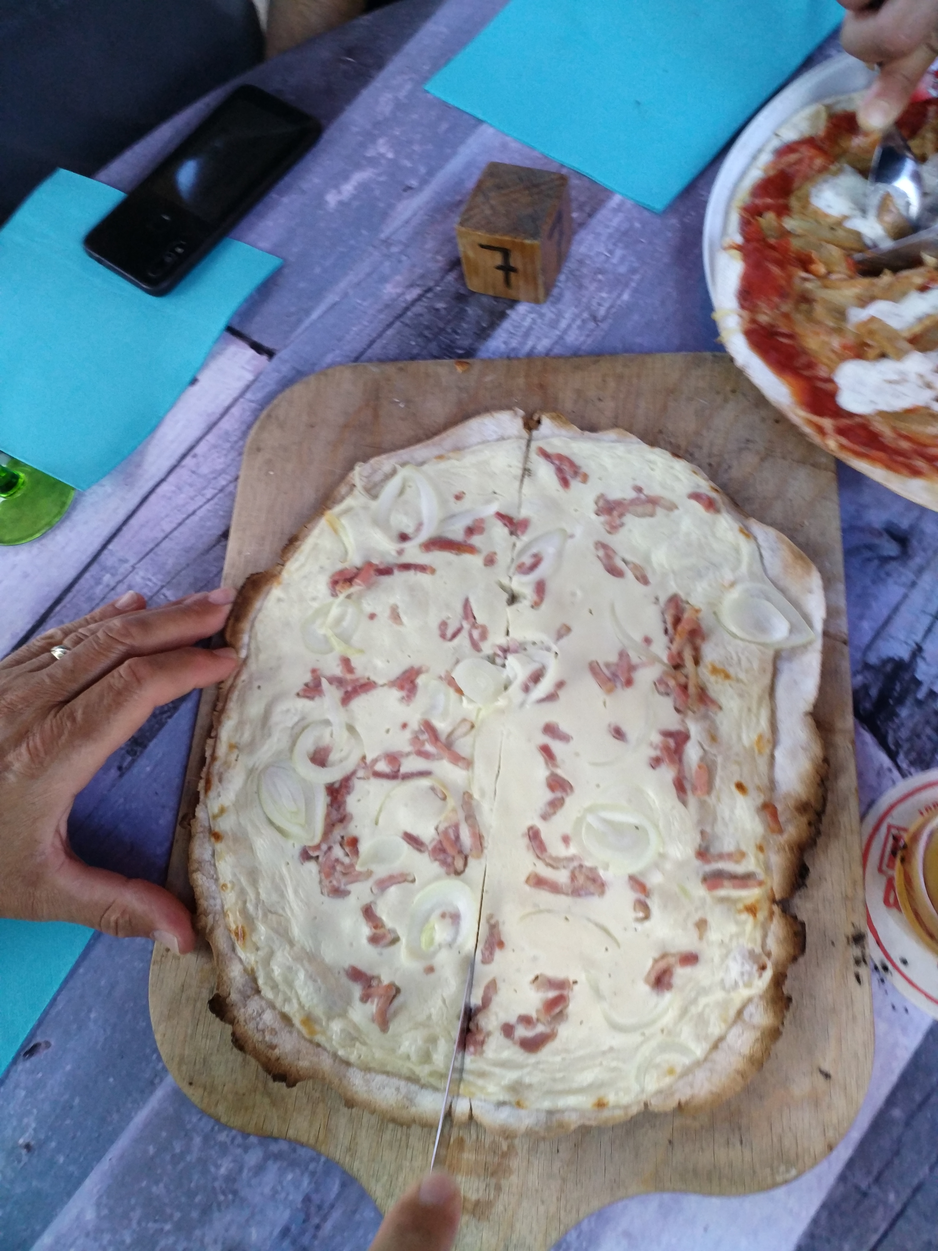 Nous avons mangés de superbes tartes flambée avec nos amis alsaciens. Elles étaient tellement appétissantes que la photo n à pu être prise qu en cours de dégustation.😉