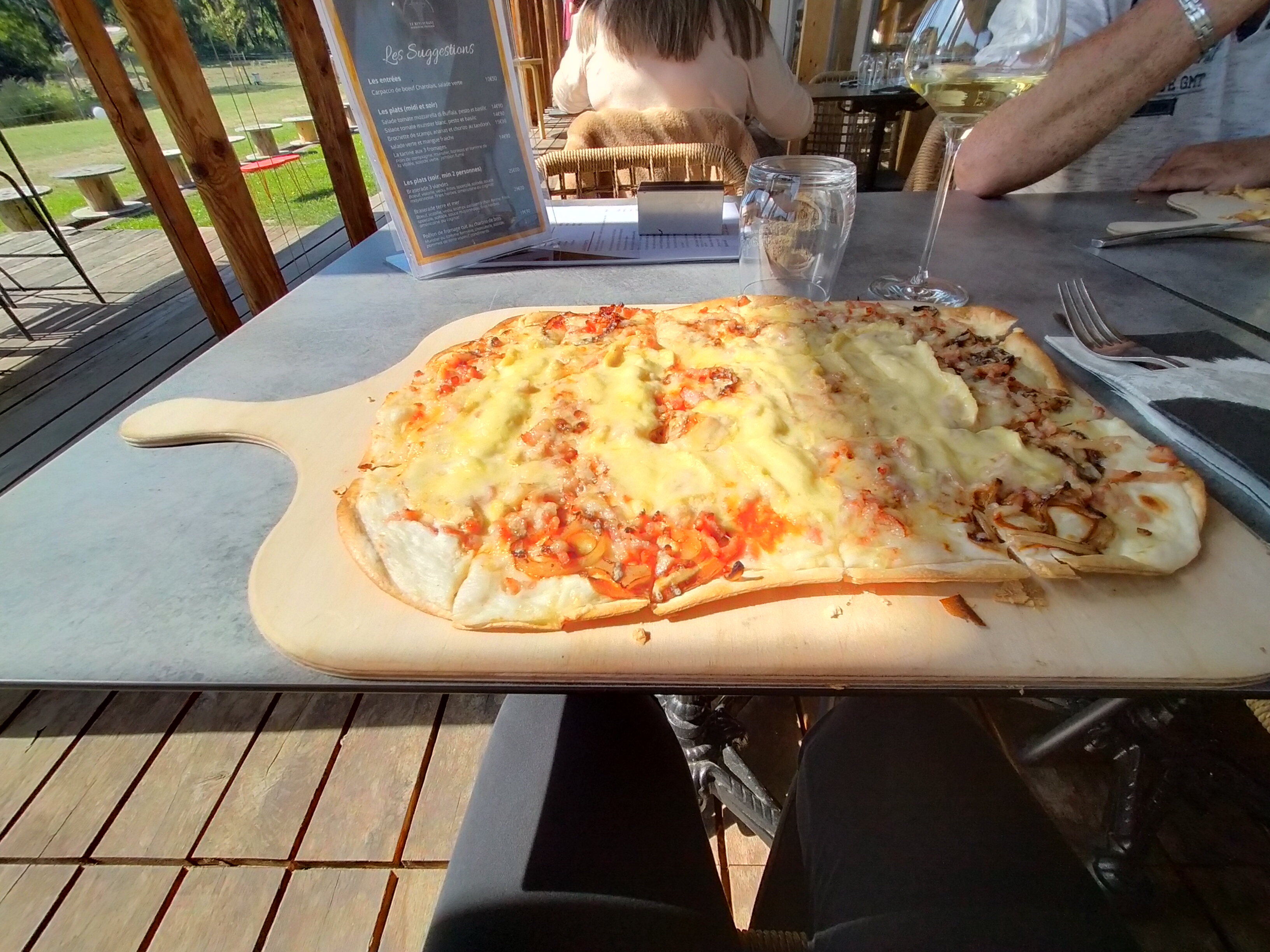 J'ai pris le petit déjeuner et le repas du midi. Petit déjeuner classique avec viennoiserie, café et jus d'orange. Le midi c'était tarte flambé à volonté. Rien de fou mais le cadre quand à lui est très jolie et le personnel agréable.