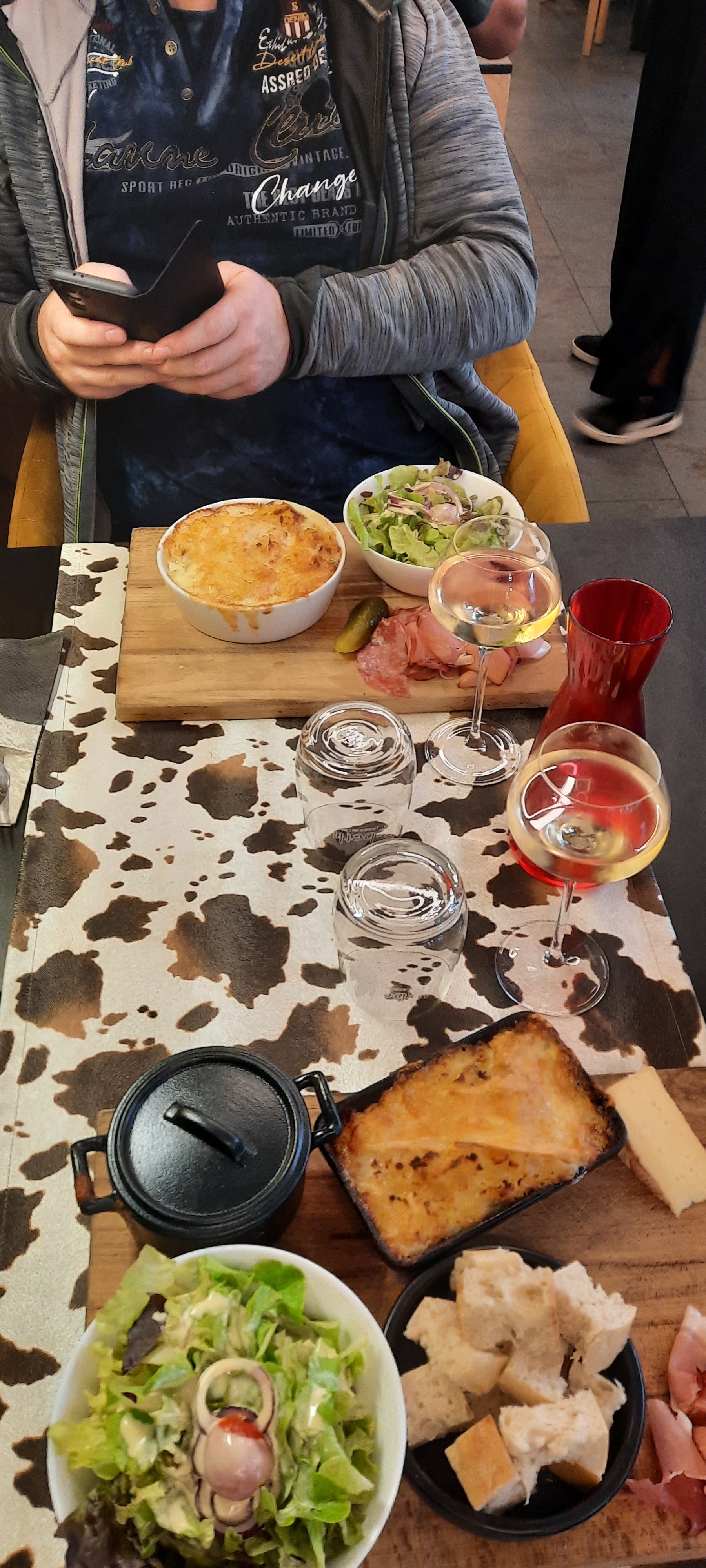 Un peu cher , mais tellement bon ! Fromages à gogo , un vrai plaisir pour les amateurs . Petit conseil : réservez à l'avance !