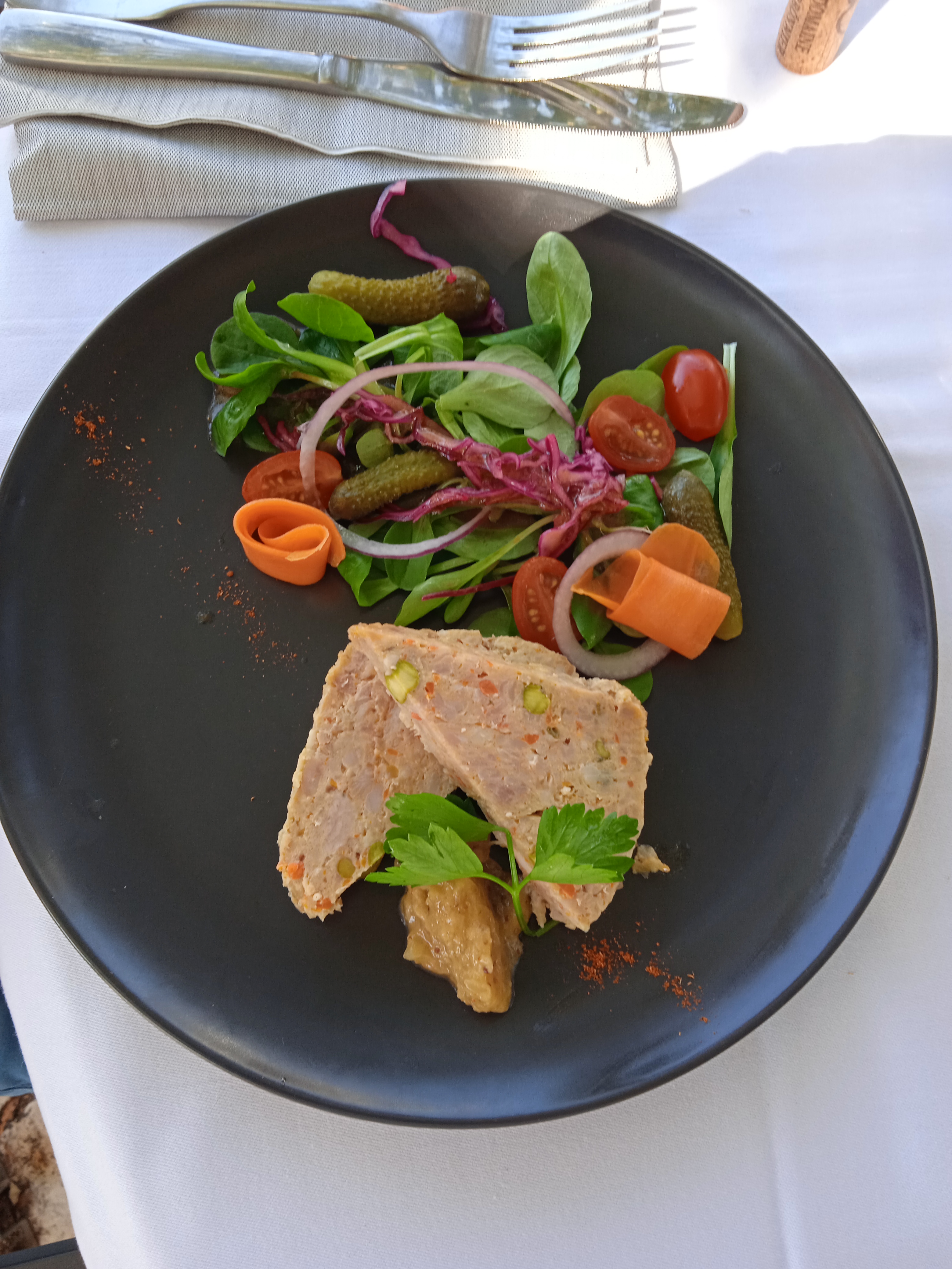 Emplacement très agréable mais trop de temps d attente entre chaque plat carotte pas cuite
