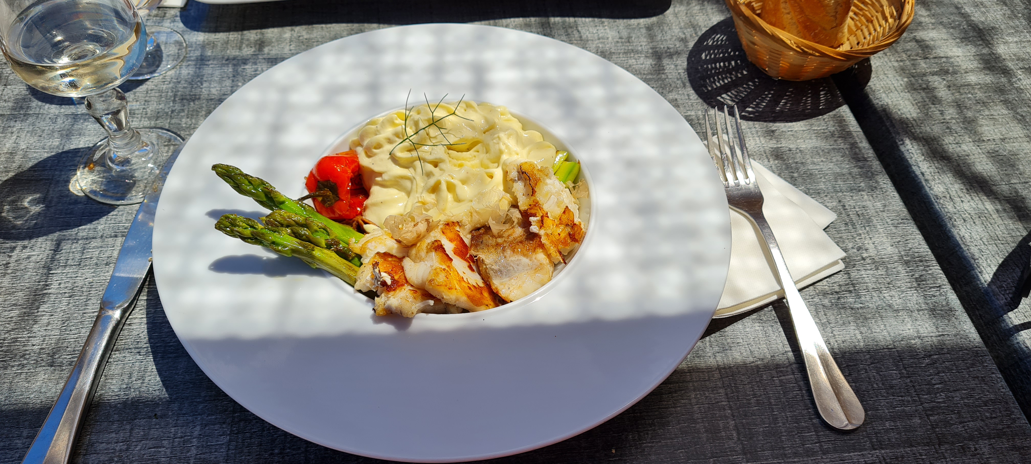 Terrasse sur le trottoir, on mange au bord du port mais avec les voitures. Très peu de choix sur la carte et plats principalement au dessus de 20€. Les plats sont bien présentés et on a le temps de manger. Mention spéciale à notre serveur, ultra pressé, pas très agréable, impatient. Perso je n'y retournerais pas si je passais dans le coin.