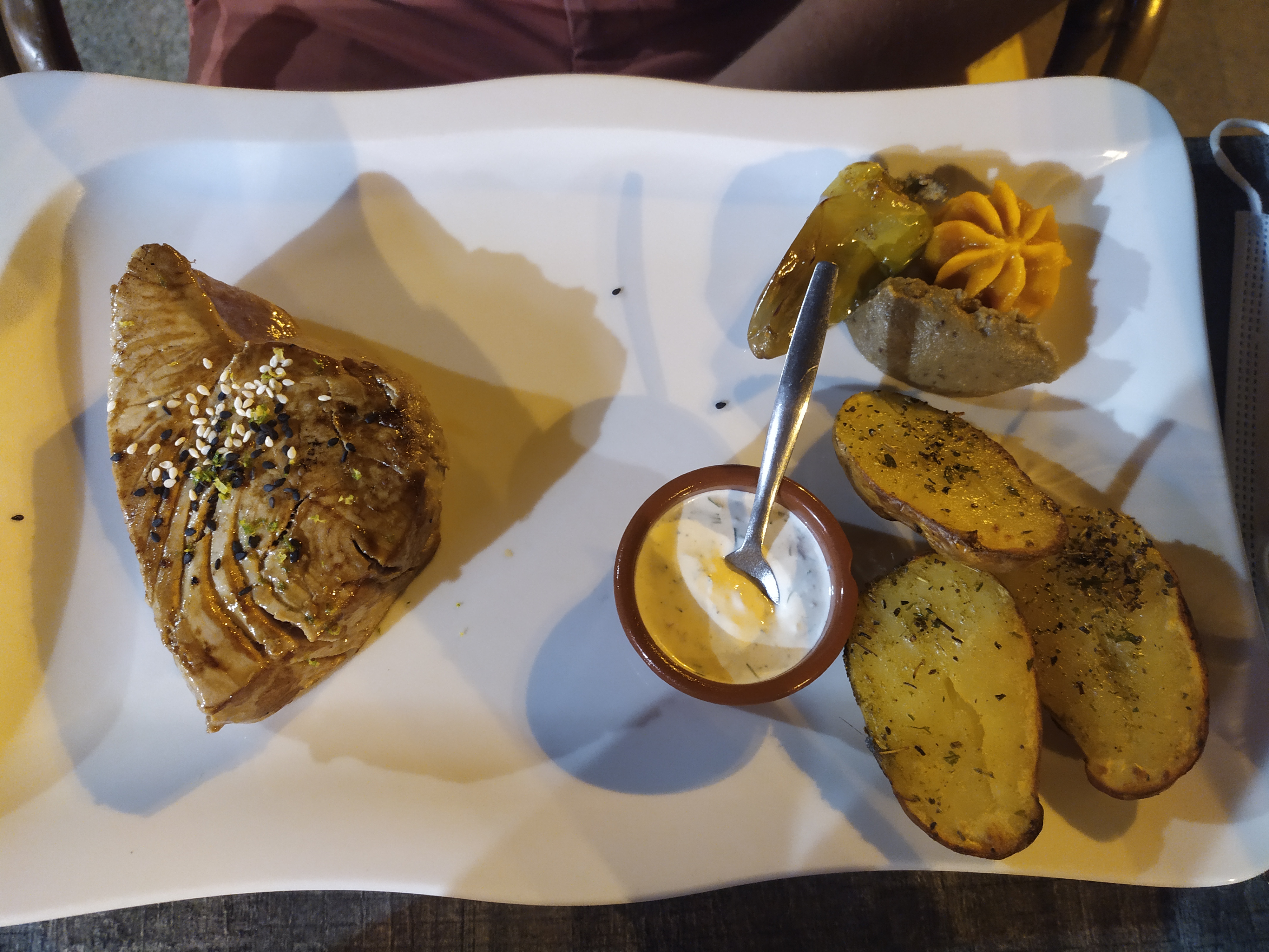 Excellente carte. Poisson très bien cuisiné avec des melanges de saveurs et d'épices surprenants. Super accueil. Attente très correcte, inhérente et logique par rapport à la cuisine de produits frais. À conseiller. Il nous tarde notre prochaine venue pour goûter plus de plats de la carte.