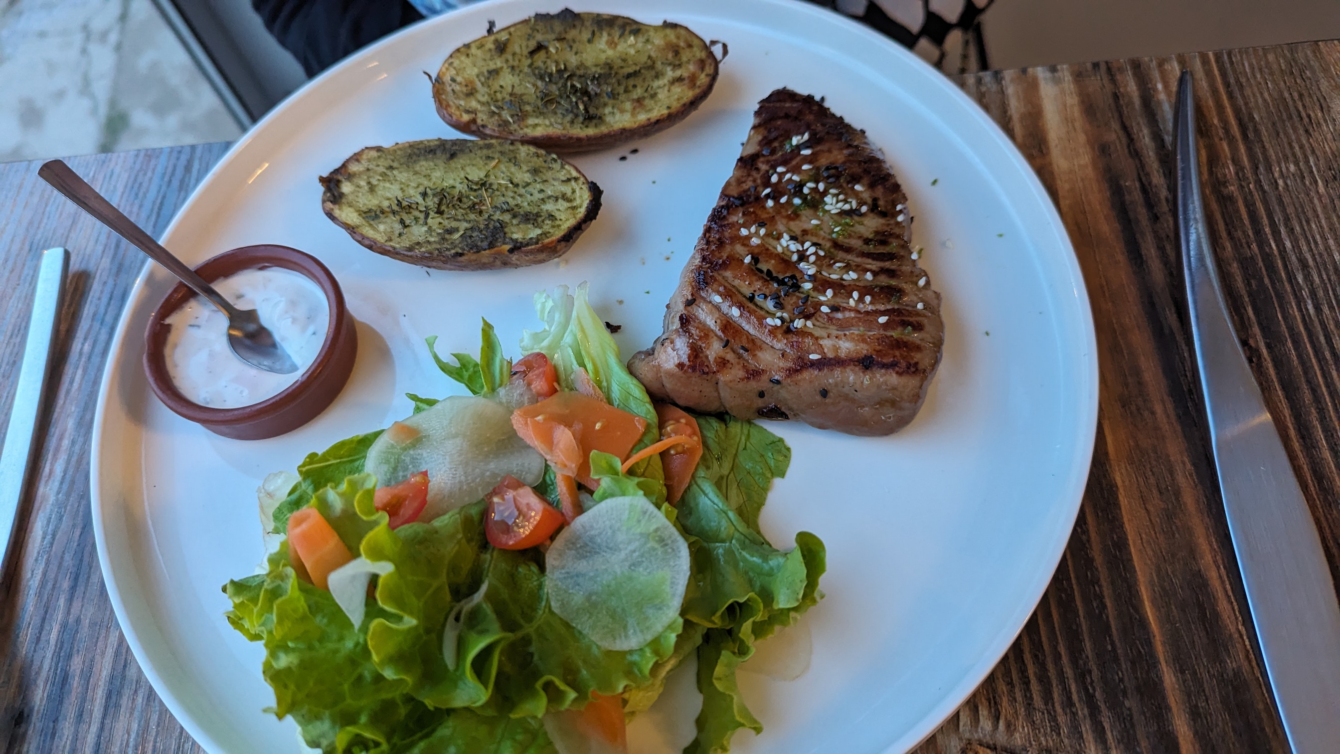Très bonne expérience. Cadre sympathique ! Nous étions 4 et avons bien mangé ! La soupe de poisson en entrée m’a surprise, elle était vraiment bonne. L’aïoli dessus trouvait parfaitement sa place. L’espadon était tendre et bien assaisonner. Bémol, un seul serveur pour un samedi midi donc servir un peu long par moment. Au moins un choix de dessert en plus serait le bien venu. Rapport qualité/ prix = 4,7/5