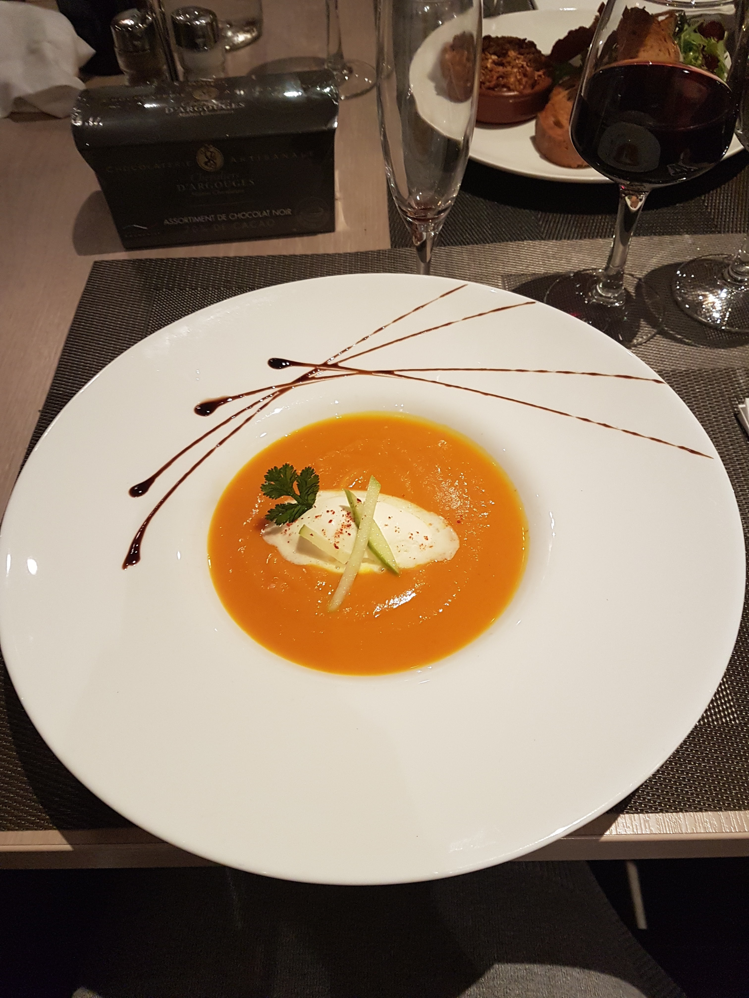 Nous y avons mangé à cinq le 21 novembre. J'ai enlevé une étoile, je tiens à préciser que ce n'est pas à cause de la nourriture. C'est très bon et copieux, personnellement j'ai particulièrement apprécié le crumble de st marcelin, le filet de bar (la sauce au poivron est excellente et la purée de petit pois est bien forte) et le paris brest revisité (je n'en ai mangé un de si bon, le chou est croustillant, la crème bien parfumée à la noisette, vraiment un régal et l'avis a été unanime dans ma famille). Ma famille a quant a elle apprécié le foie gras, savoureux et surtout les ST Jacques qui étaient bonnes et donnaient envie avec leur taille. J'ai enlevé une étoile pour la raison suivante : le service. Certes c'étaient un dimanche mais plus de 3h30 ça devient long, avec notamment au moins 30-40 min entre l'entrée et le plat et le plat et le dessert. Dommage. Egalement une disparité dans le niveau de présentation et de décoration des plats : certains sont on ne peut plus simple, d'autres sont beaucoup plus élaborés (notamment certains poissons et desserts). Ça reste une bonne adresse où on mange bien mais prévoyez d'y passer du temps.