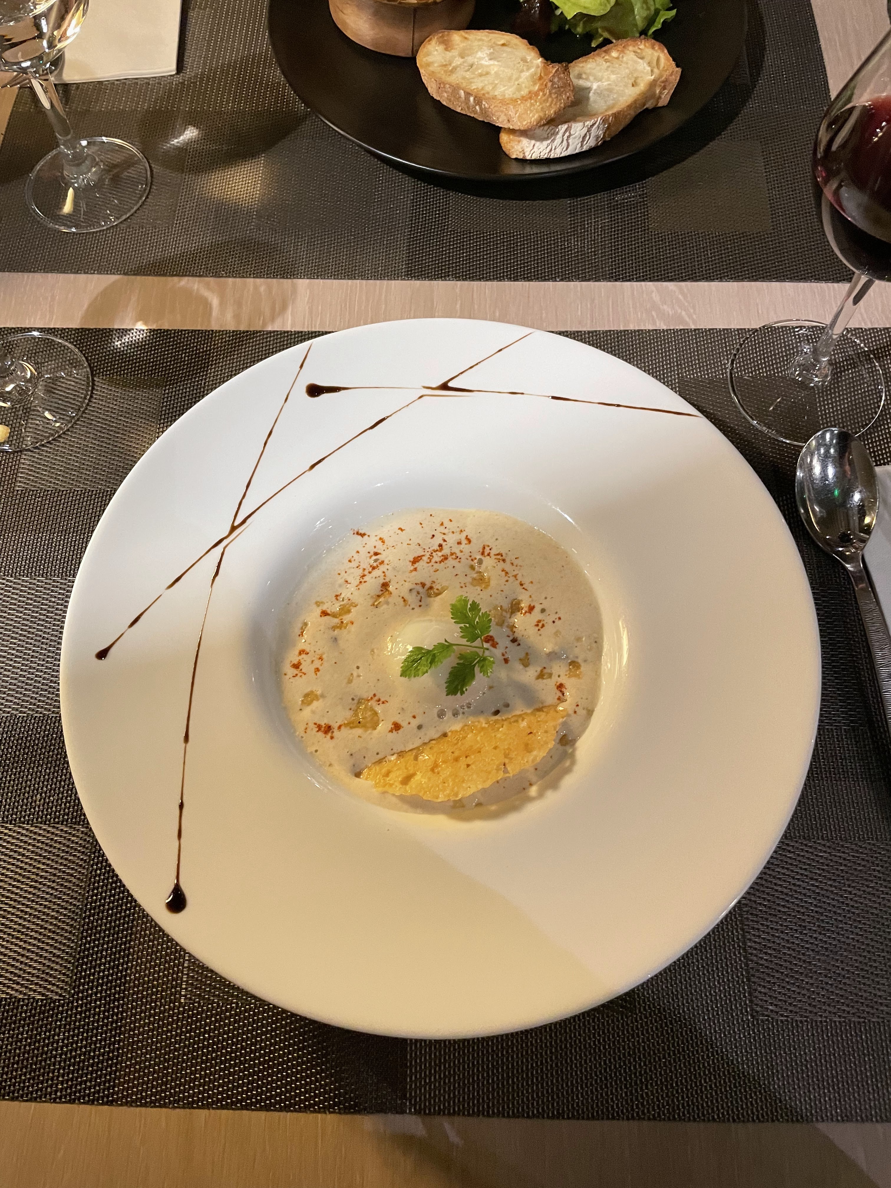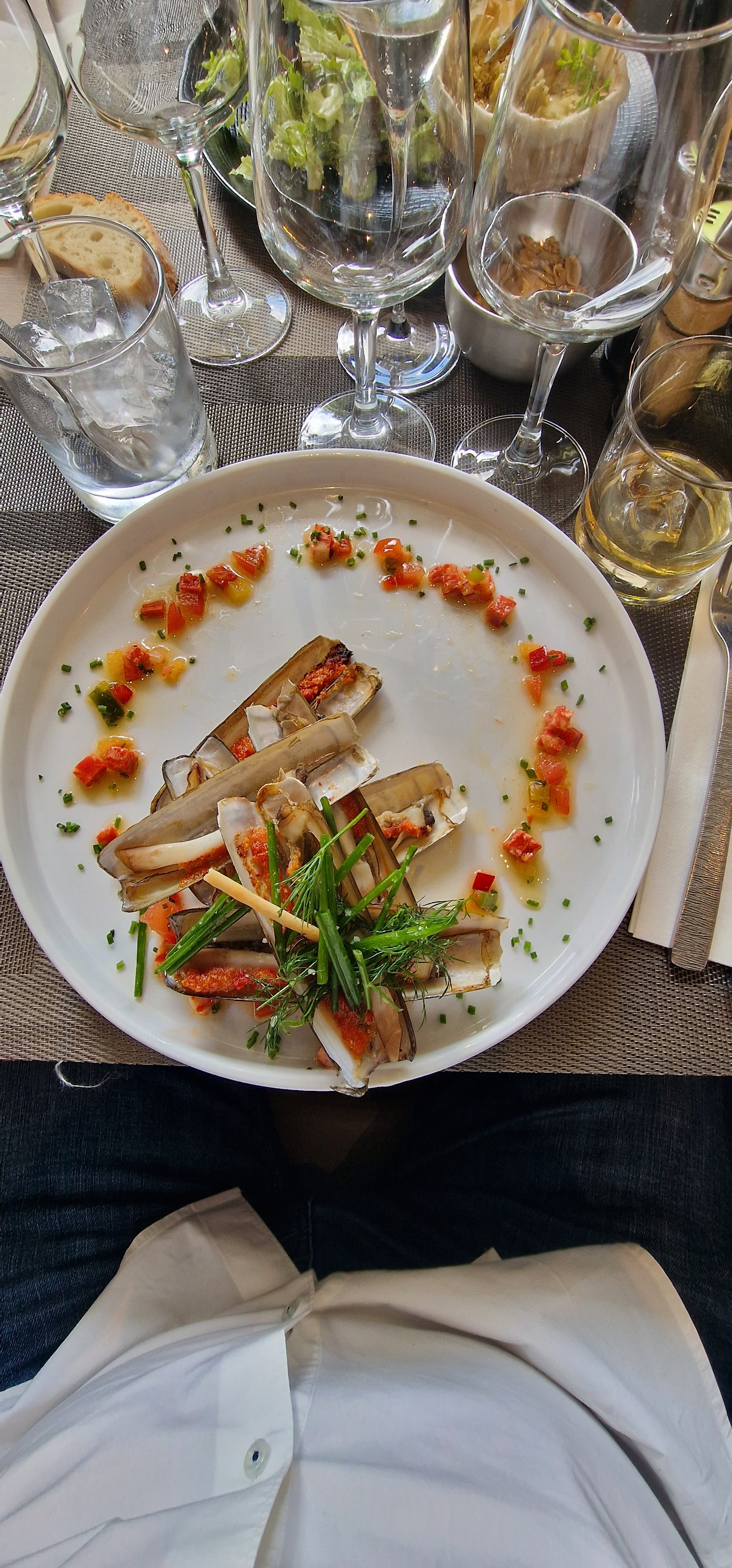 Déjeuner très agréable ! Les couteaux gratinés au chorizo, le bar à la plancha et la poire pochée étaient cuisinés délicatement et la dégustation en rapport ! Seul bémol regrettable...pourquoi proposer un vin qui d'ailleurs ne figure pas sur la carte...🤔 ( à l'origine un beaujolais domaine des grands fers absent ce jour ) dont une caractéristique est plus que saugrenue...le vin des viandards ! Inscrit au dos de la bouteille...sérieux 🤔🥴 je ne me rappelle plus de son appellation exacte...pas en rapport avec le cadre ! Je recommande ce restaurant côté carte mais pas côté cave à vins par ce choix incongru !