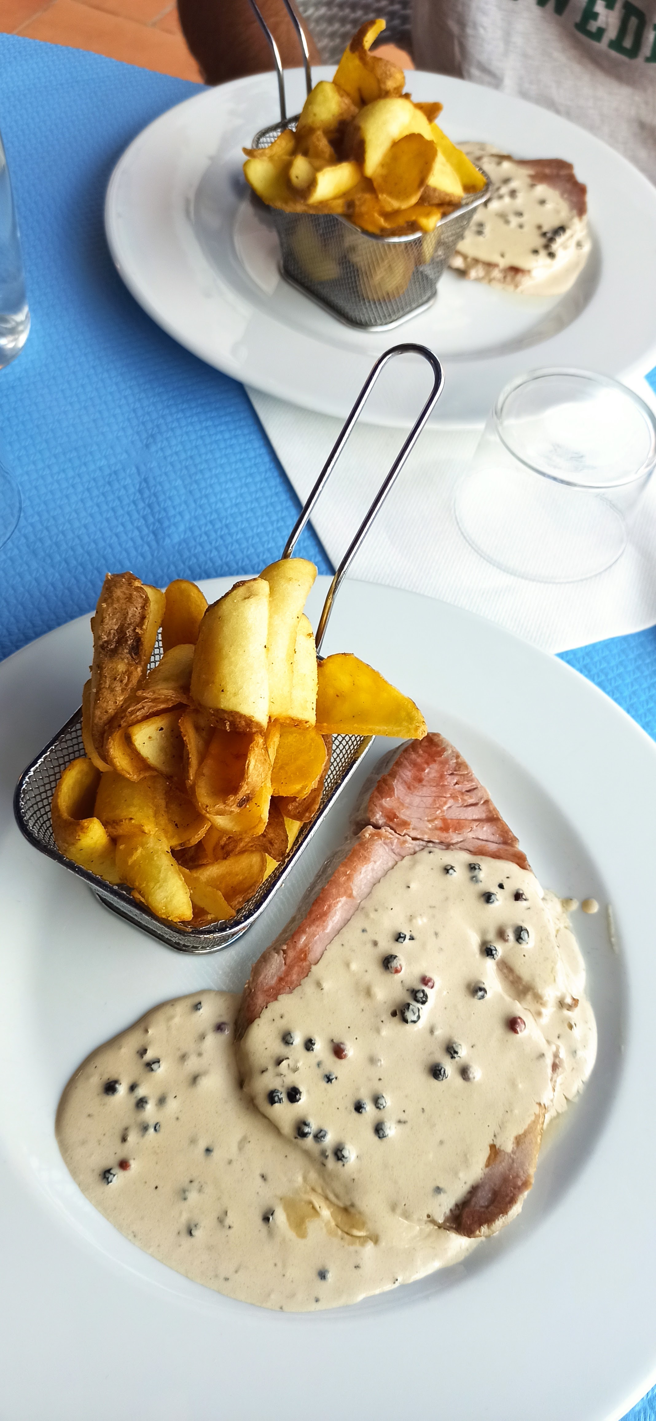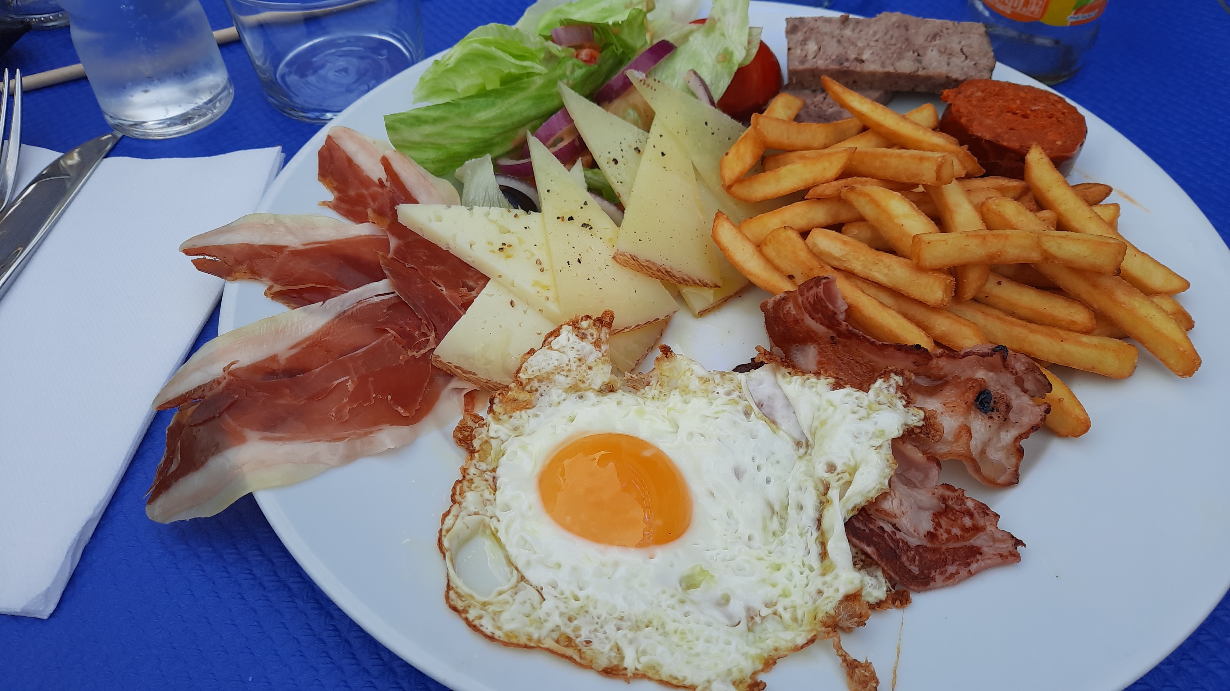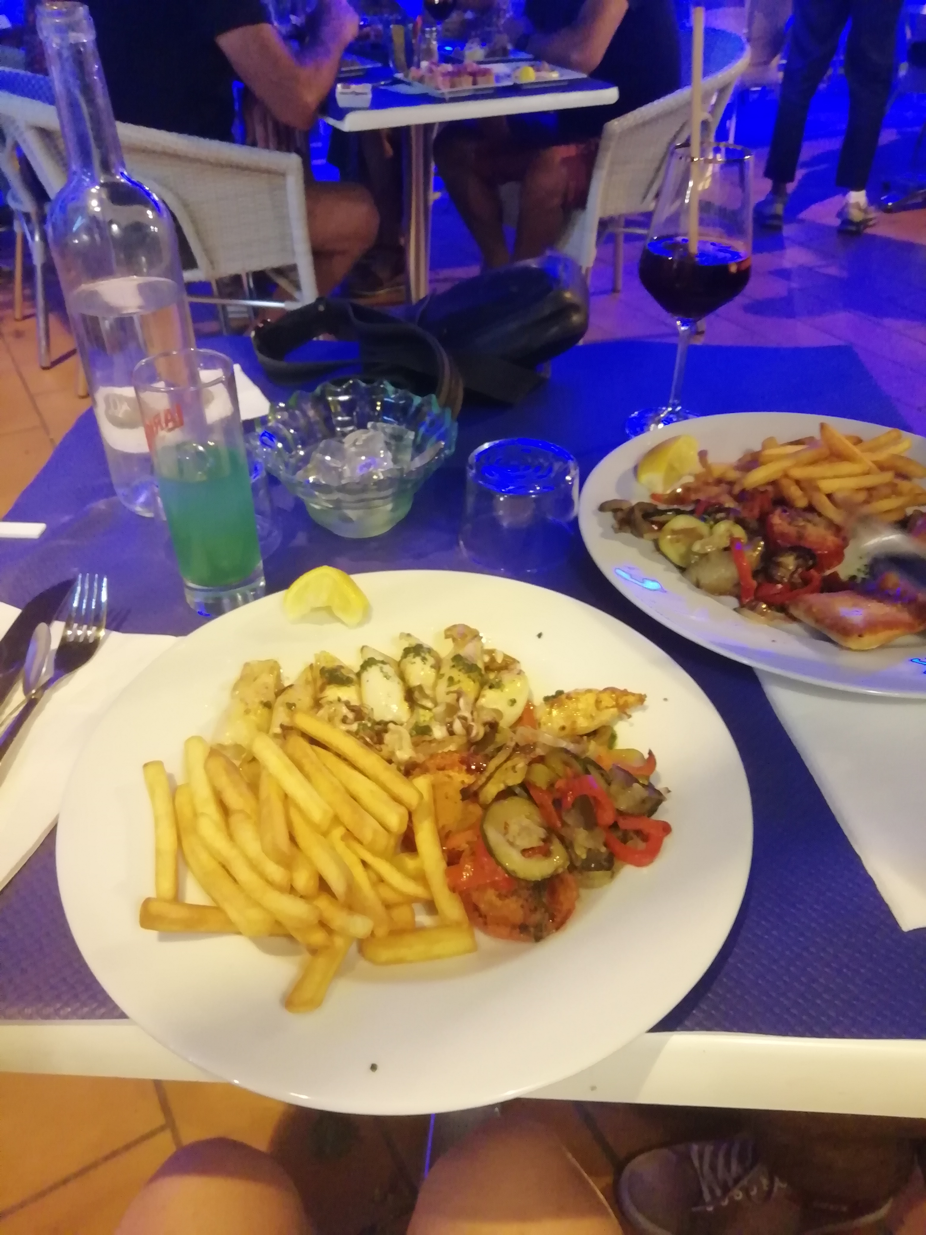 Dernier restaurant de vacances. Je prends des tapas ainsi qu’une entrecôte sauce roquefort : rien à redire, la cuisson était parfaite et la viande de qualité. Madame a pris le plateau du mousse (assortiments de fruits de mer). Le plateau était très garni de divers crustacés et servi avec des assaisonnements adaptés. Tout s’est bien passé, jusqu’au retour à la maison, où Madame a été malade toute la nuit ; aucune méprise possible...