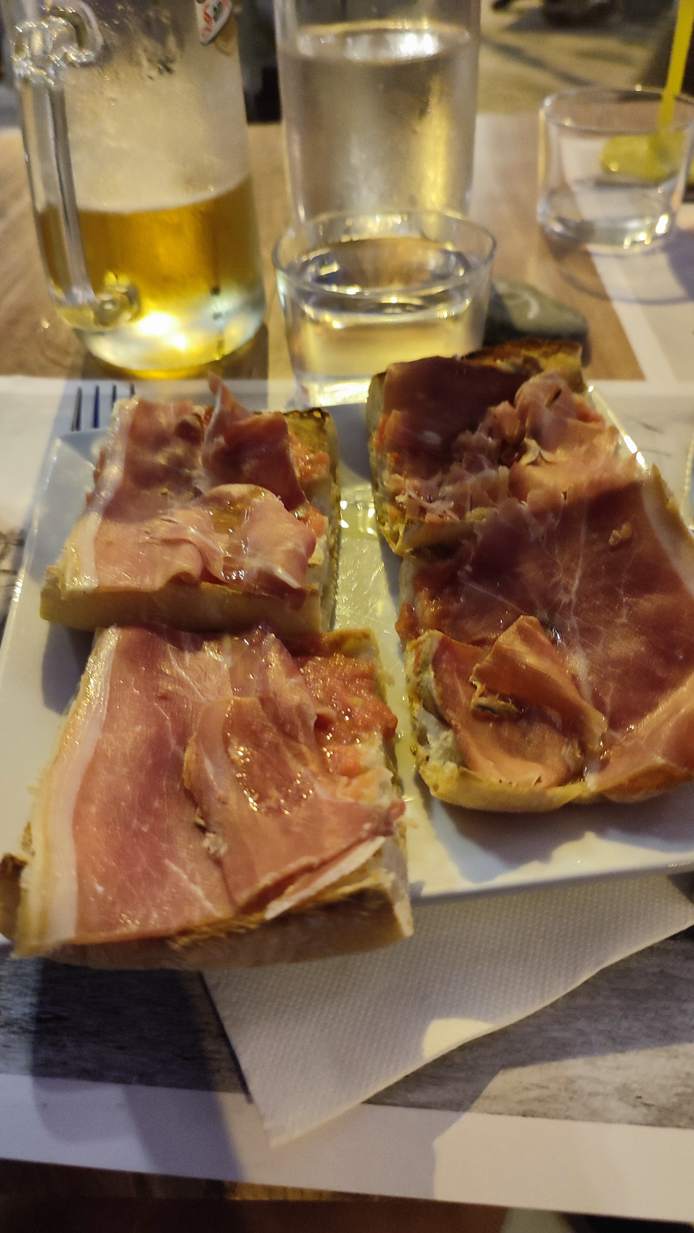 Moules à l'aioli pas chaudes, moules en casseroles sans plus. Mais pan con tomate y Jamon parfait. Le tout très moyen pour la note. Dommage que le chantier du parvis coupe la vue et le calme.