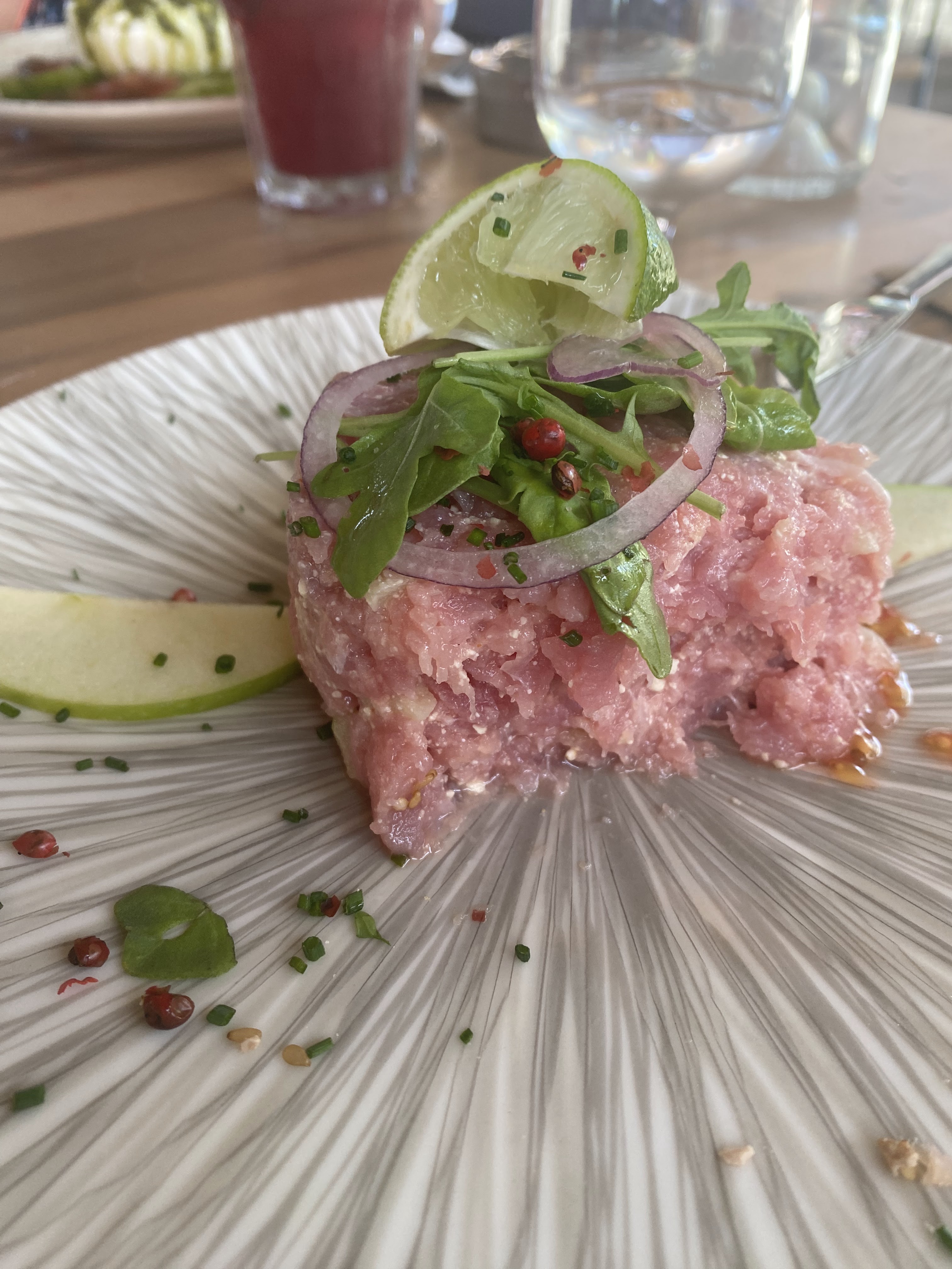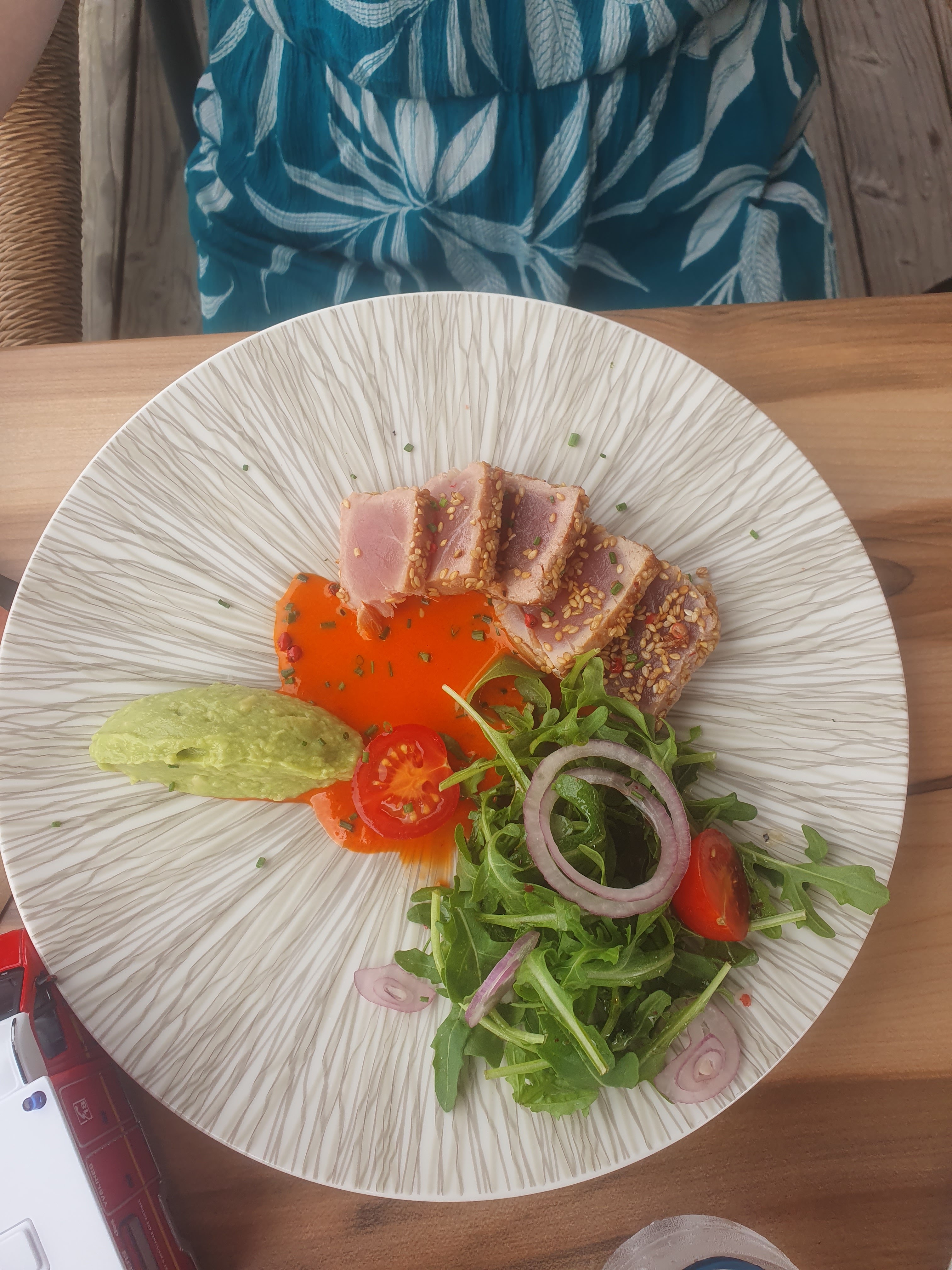 Le cadre est très bien et l ambiance familiale. Question prix : C est un peu chère pour la qualité apportée. Le tartare de thon semble surgelé et services sans aucun accompagnement !!! Pas de frites , pas de salades accompagnées avec le tartare de thon , en sachant que la pomme de terre ce n est pas ce qui coûte le plus cher ! Les frites en accompagnement sont payant compter plus de 4 euros ! Pour avoir de l eau a table , noté sur sa tablette il a fallu que je relance le service. On pourrait penser que c’est dut a l affluence de monde mais pas du tout car le restaurant est remplie a 65 % . La salade Cezard que mon ami a pris est 100% issue d agro alimentaire, poulet croûtons, salade semi préparée. Dommage, on va dire que cela n est pas le bon jours !!