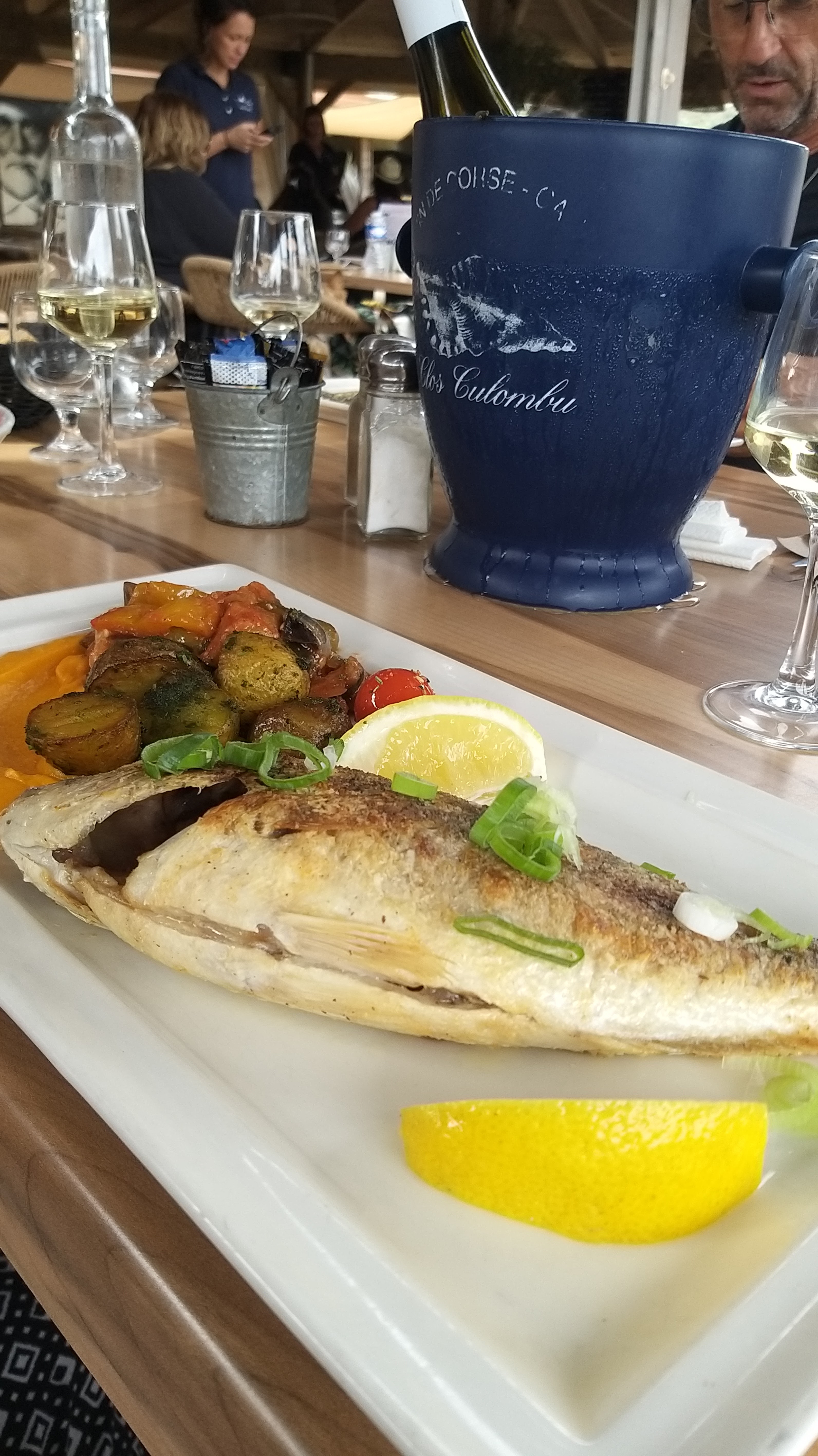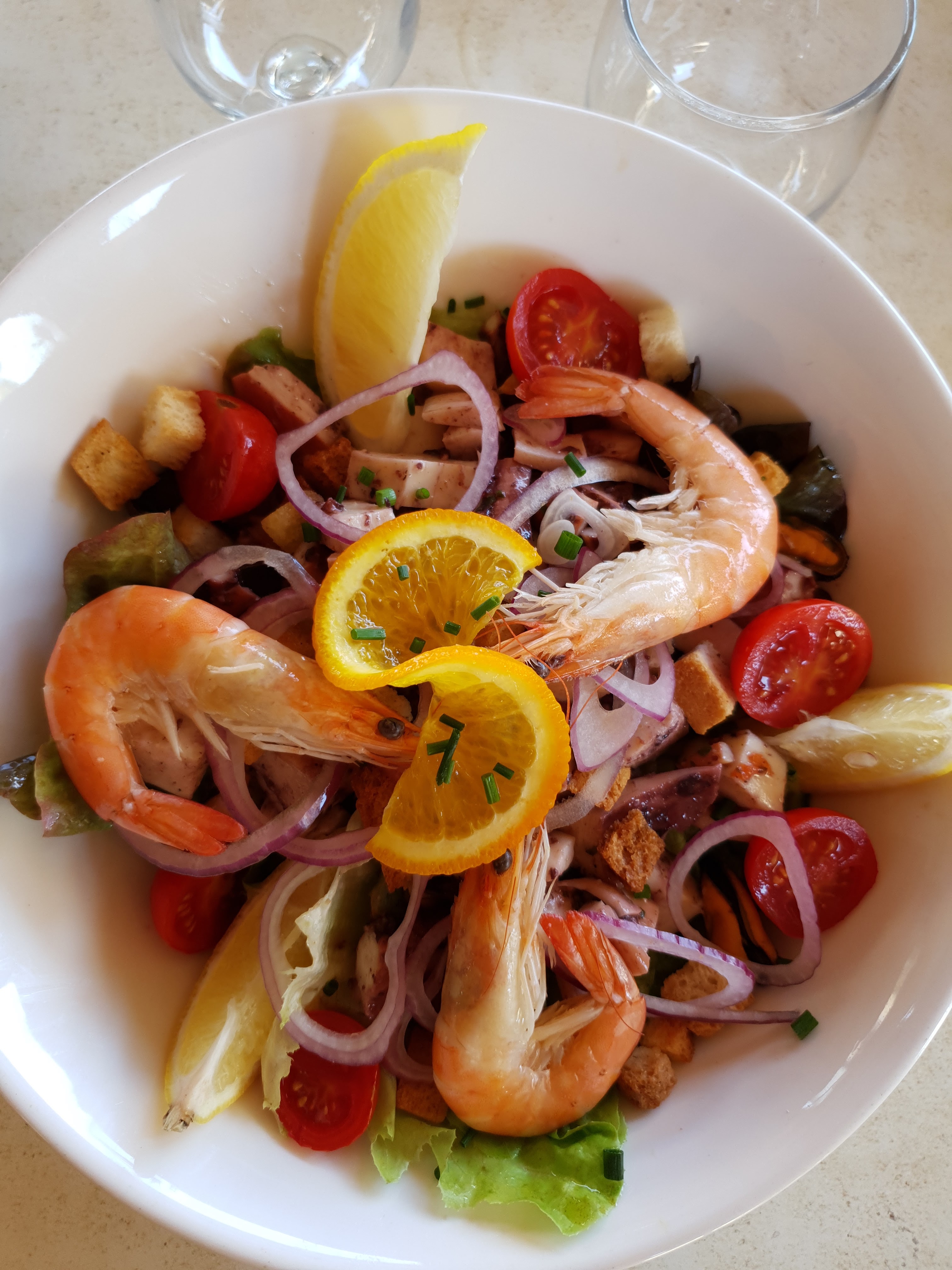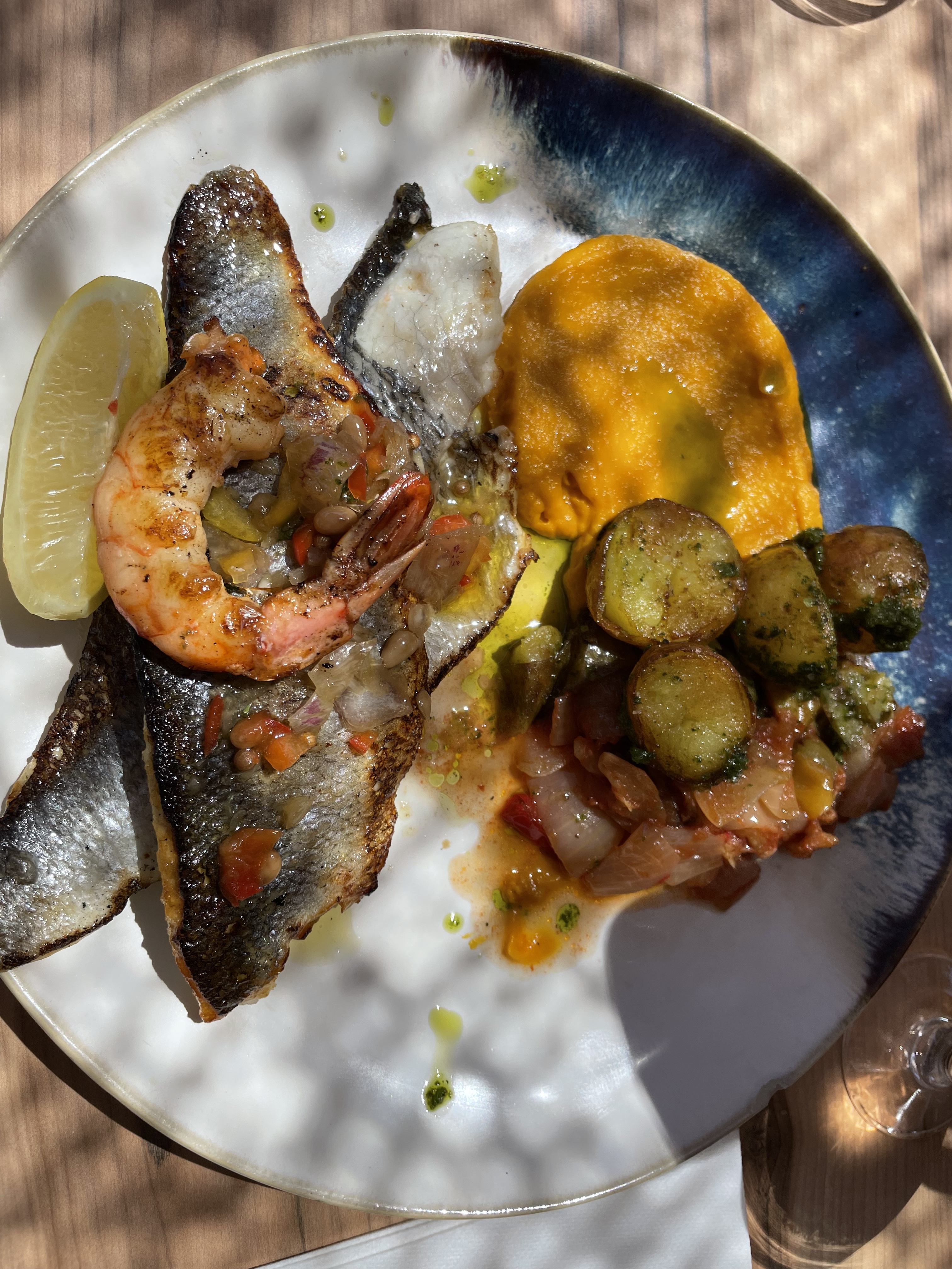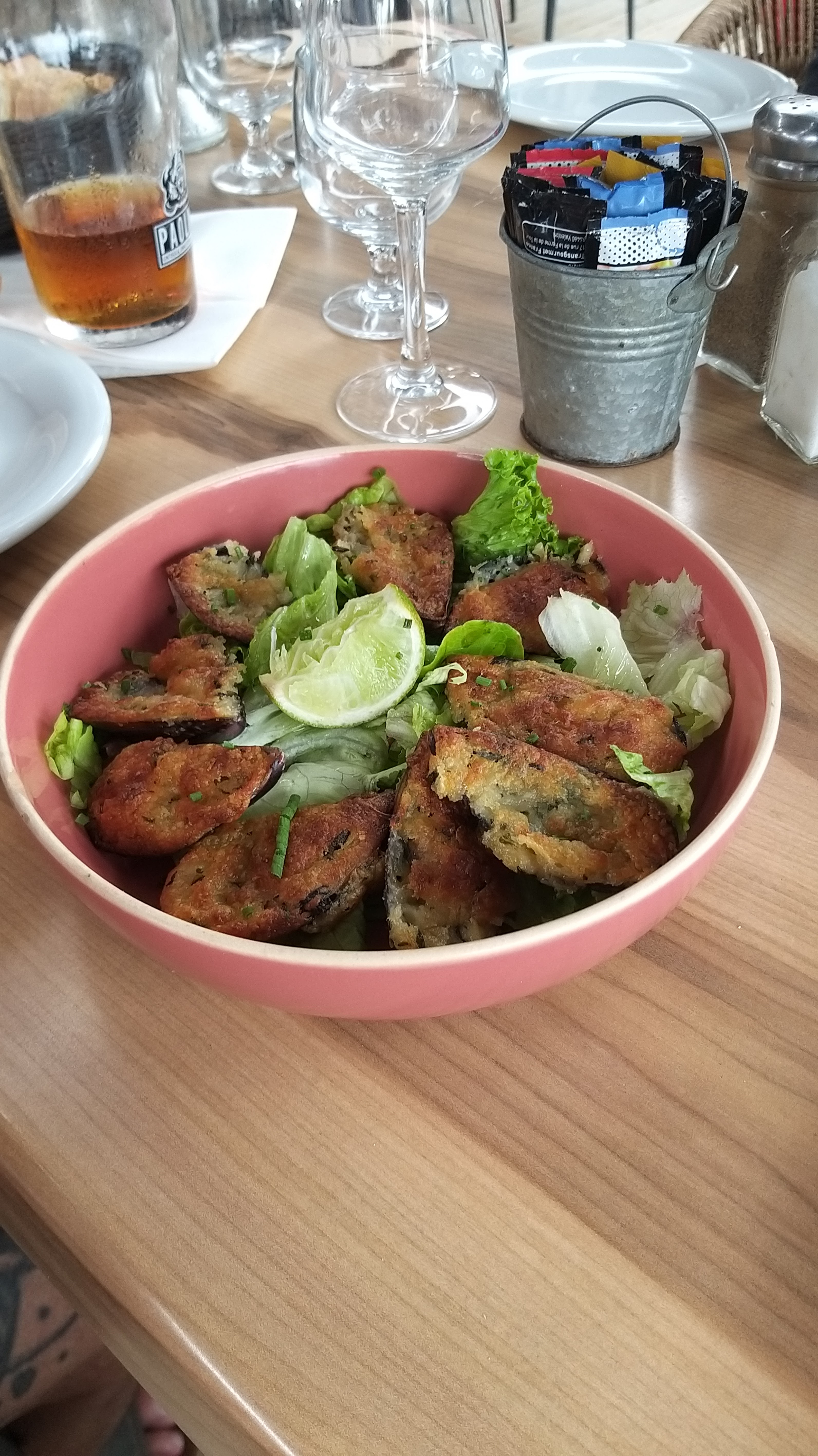 Jolie baie submergée de touristes...parking payant pour avoir accès au resto et à la plage : 5€ c'est abusé!! Déçus par le plat : mon mari a pris la trilogie de poissons (1 malheureuse gambas, 1 morceau d'espadon et 1 petit filet de bar) et moi la salade de poulpes (beaucoup trop de vinaigrette on n'a pas le goût du poulpe!), par contre très bon dessert. Trop de monde c'est un peu l'usine!