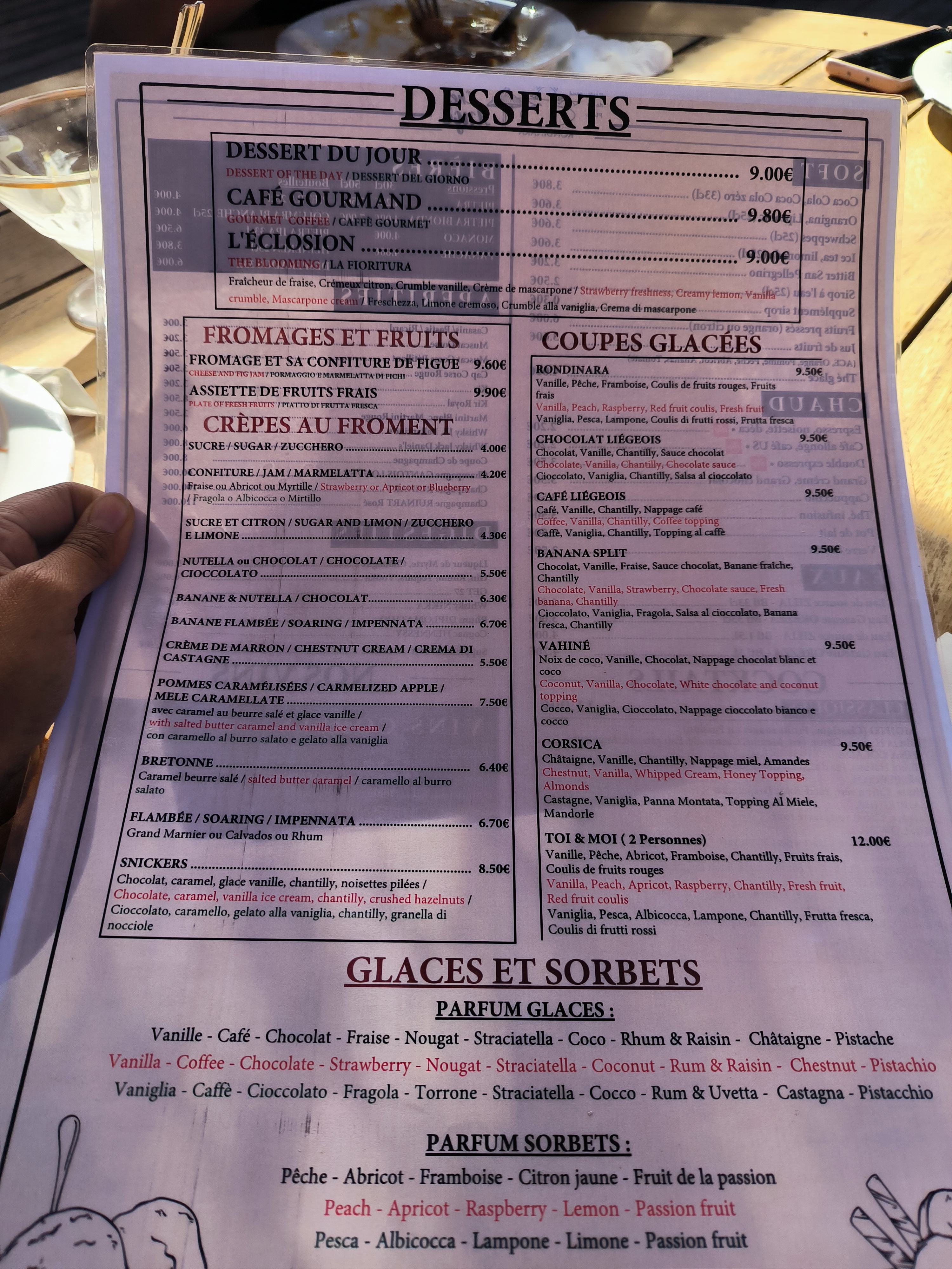 Rien à dire . Service et acceuil au top . Sourire et bonne humeur . Qualité des produits et panorama au rdv . Je conseil les yeux fermés. Je reviendrais sûrement à mon prochain séjour en Corse.. Merci à ange et son équipe changer rien .😉❤️❤️❤️
