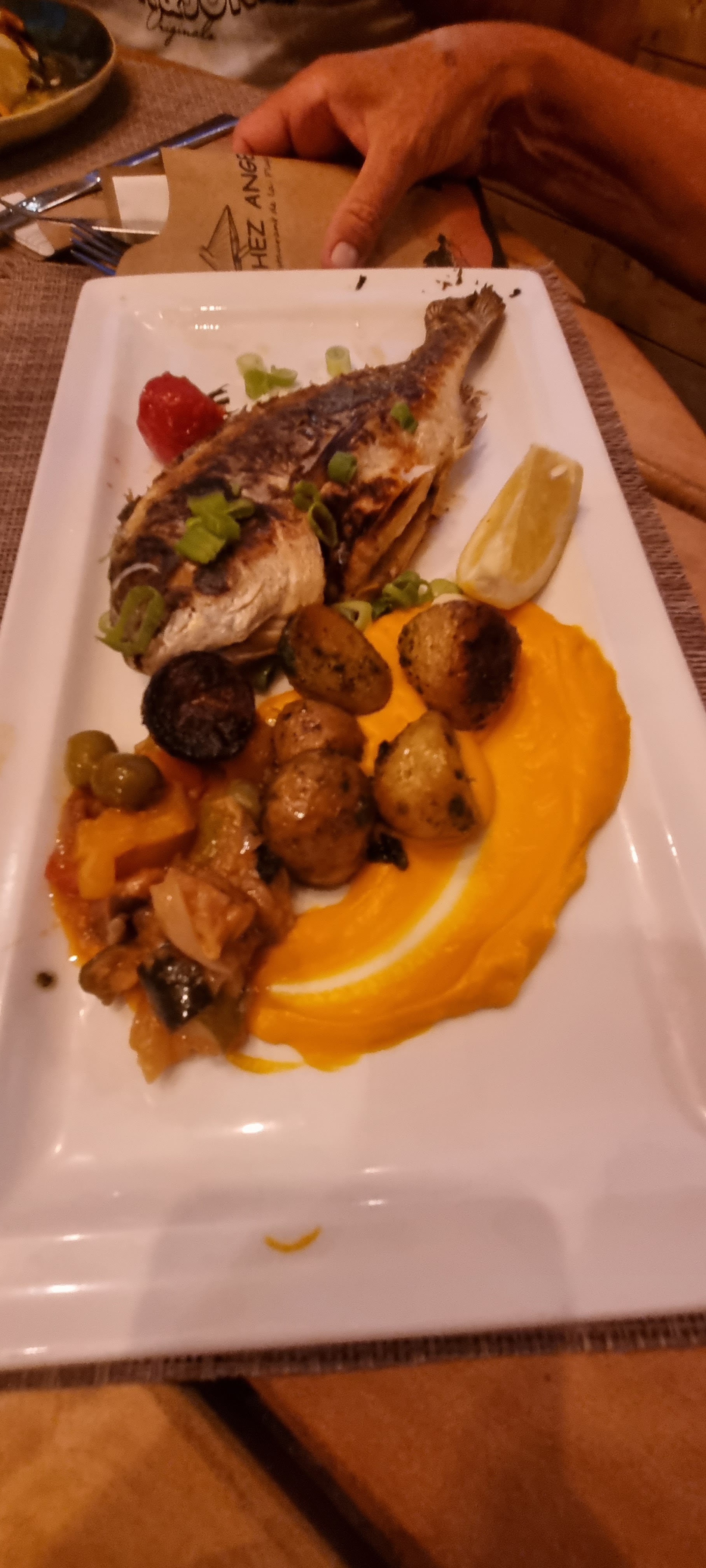 Tout était parfait ! L'ensemble du personnel est très agréable et attentionné. Les plats sont excellents, et frais. Nous avons passé un très bons moments, dans un cadre magnifique. C'est la deuxième fois que nous venons chez Ange (première fois en 2021), et c'est sûre nous y reviendrons !