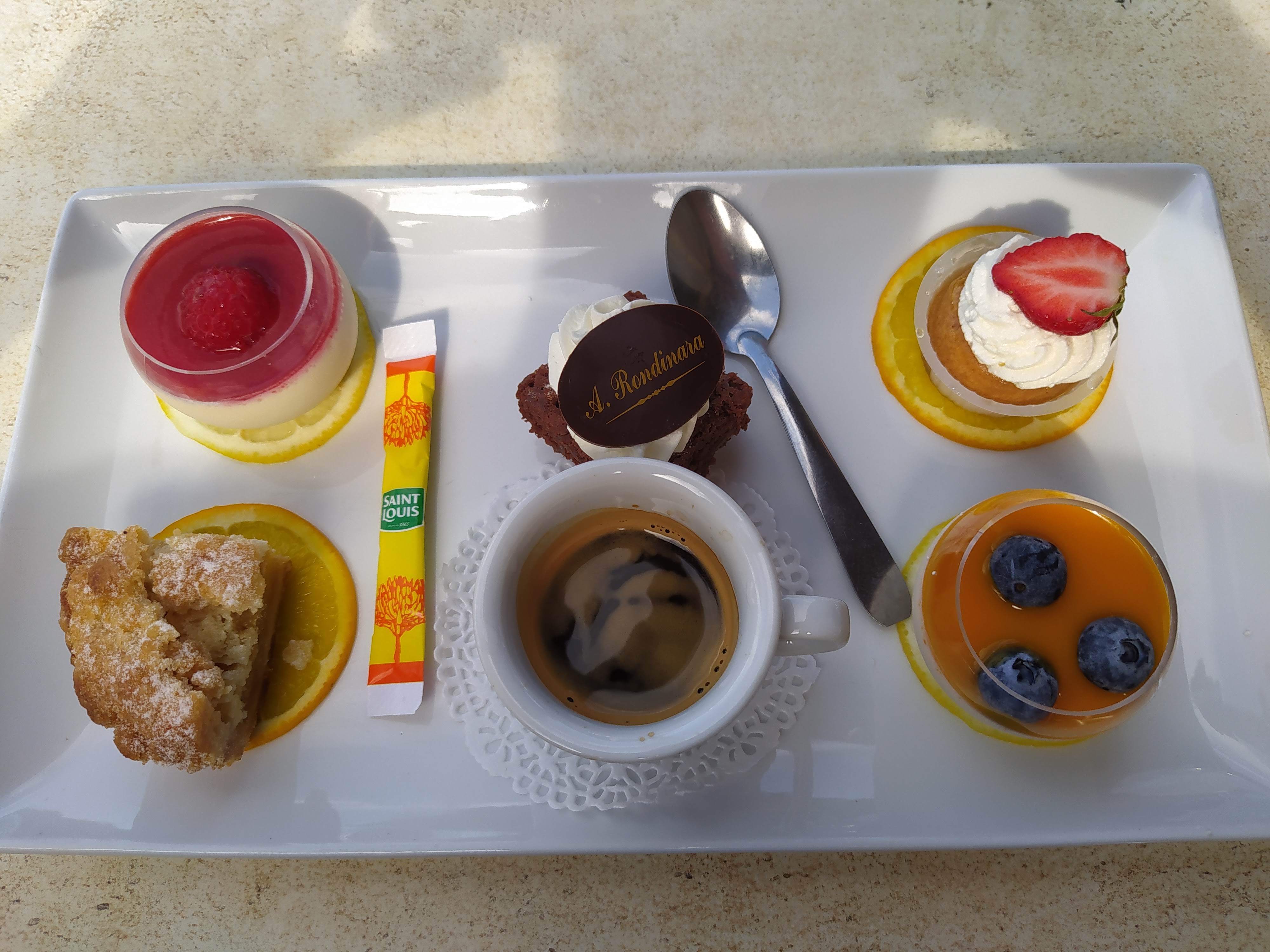Superbe endroit où on mange très bien. Le cadre est génial, les plats succulent (vraiment) a l’image du café gourmand en photo. Le personnel est très nombreux , serviable, aimable et très pro. Les prix sont salés mais en rapport avec l’endroit et le service. Je recommande.