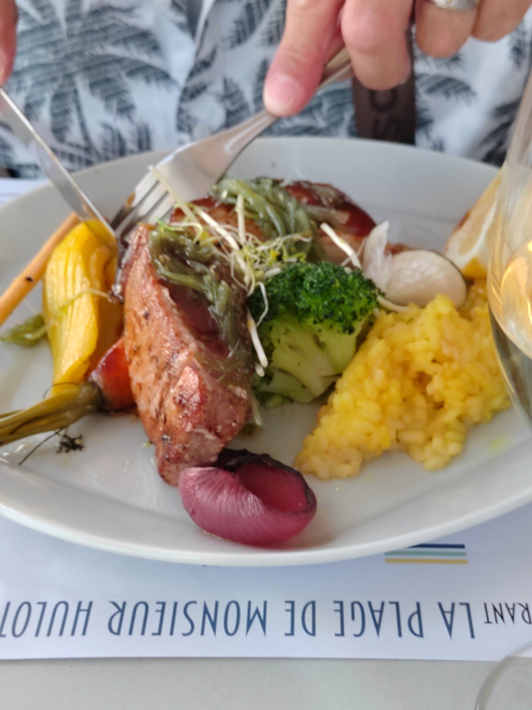 Soyons clair, l'emplacement est top. Belle plage de sable pas trop bondée. Le repas était bon et le personnel de bonne volonté bien qu'un peu trop amateur par moment (probablement des étudiants saisonniers plutôt que des serveurs professionnels). Plusieurs plats végétariens...Une bonne adresse bien que l'endroit soit plutôt touristique. NB : Vous vous appuyez sur cet avis pour vous faire une idée bonne ou mauvaise... réagissez et encouragez avec un like... «👍».