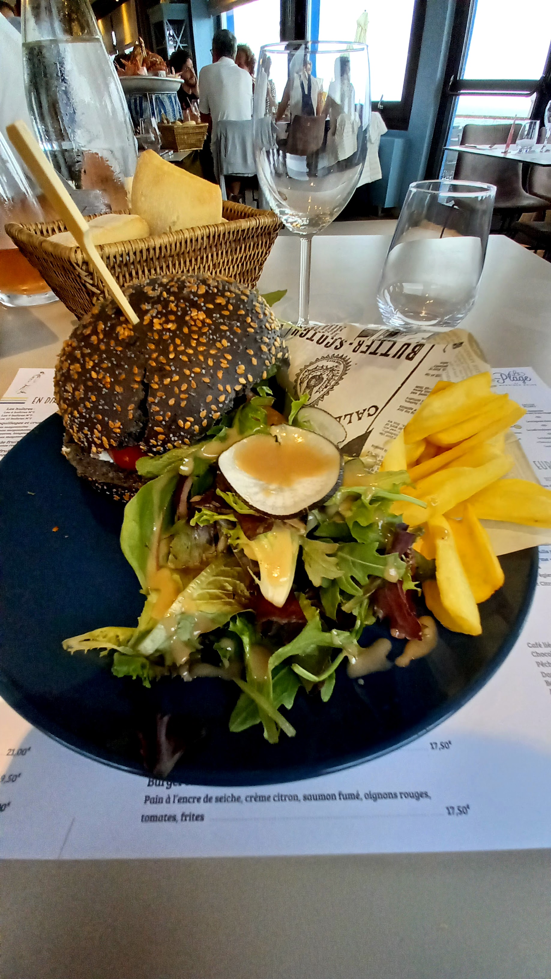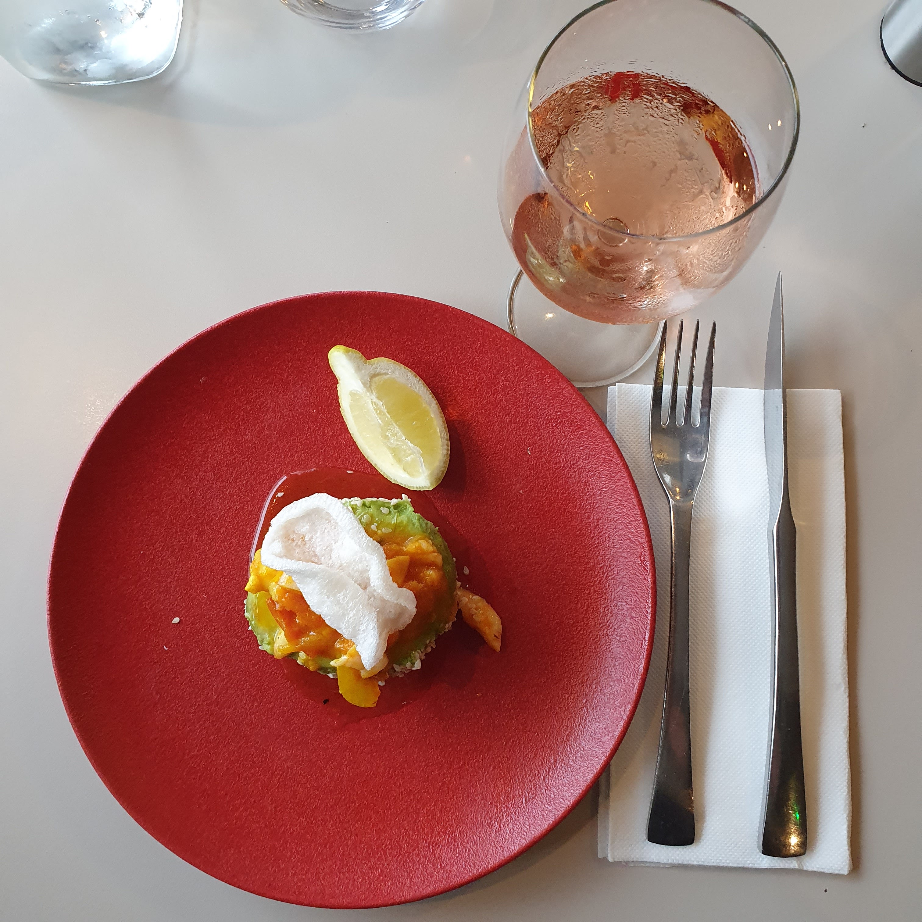 Vue imprenable. Nourriture et originalite, bravo aux cuisiniers et cuisinieres. Service moyen ( deux serveuses ne portent pas le masque, ou alors sur le front?!) et malgré une réservation faite depuis 1 semaine en bord de terrasse, nous n avons pu avoir la table souhaitée (qui est d ailleurs restée inoccupée au moins jusqu'à notre départ à 14h). Le vin blanc n était pas frais , dommage encore. 4 étoiles pour les plats, 2 pour le service et 3 pour le choix sur la carte, moyenne donc de 3...