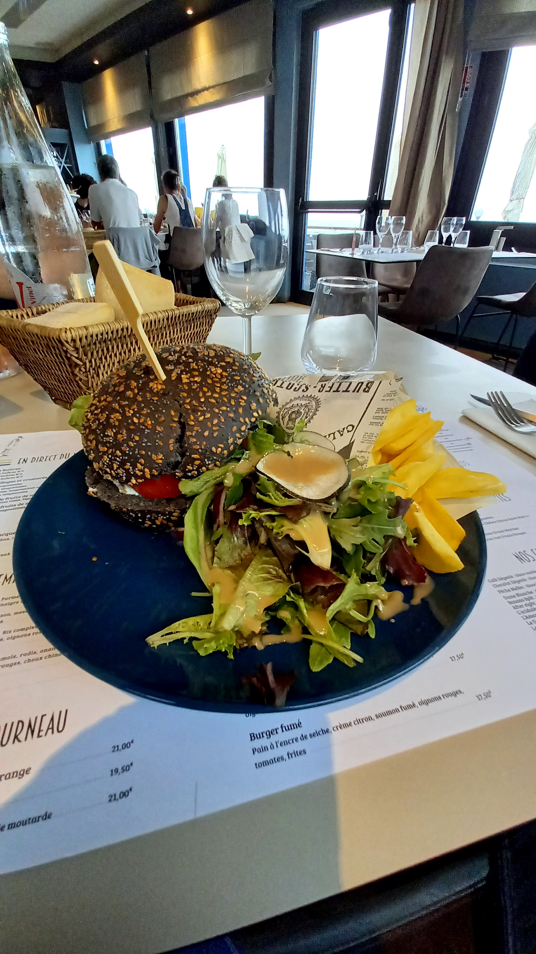Nous sommes une famille de 5 personnes et avons réservé une table lundi 1 novembre. Restaurant avec une très jolie vue sur la mer. Il y a du choix dans les plats proposés : fruits de mer poissons viandes burgers... Donc pour tous les goûts ! Serveuse très aimable. Prix très corrects.