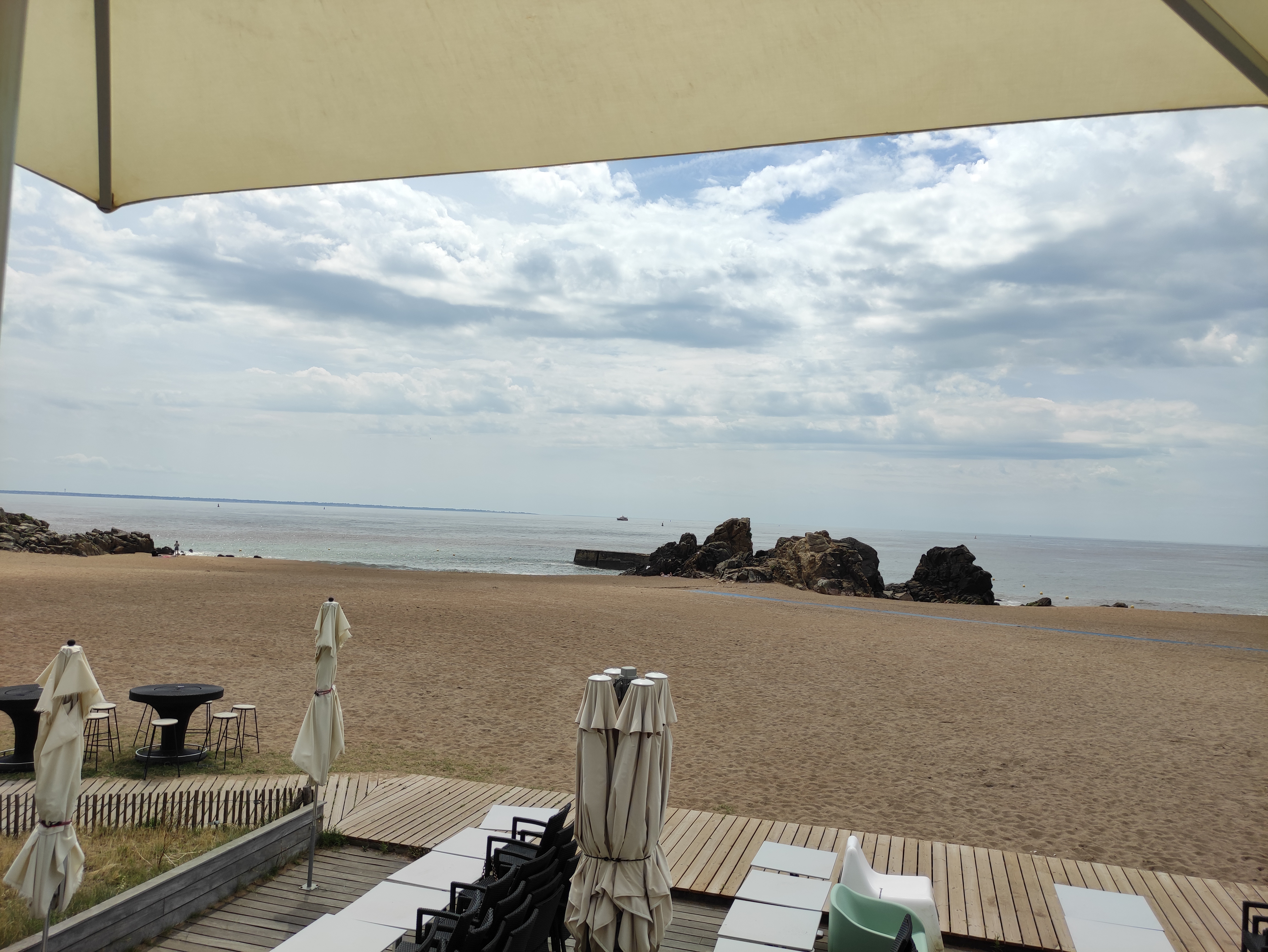 Bon, beau (dedans...dehors !) professionnel... que dire d'autre ? Allez-y ! Nous : c'est une habitude indétrônable de nos visites à St Nazaire ! Et pour vous mettre en appétit n'hésitez pas : petit verre dans un transat les pieds dans le sable ! À bientôt !