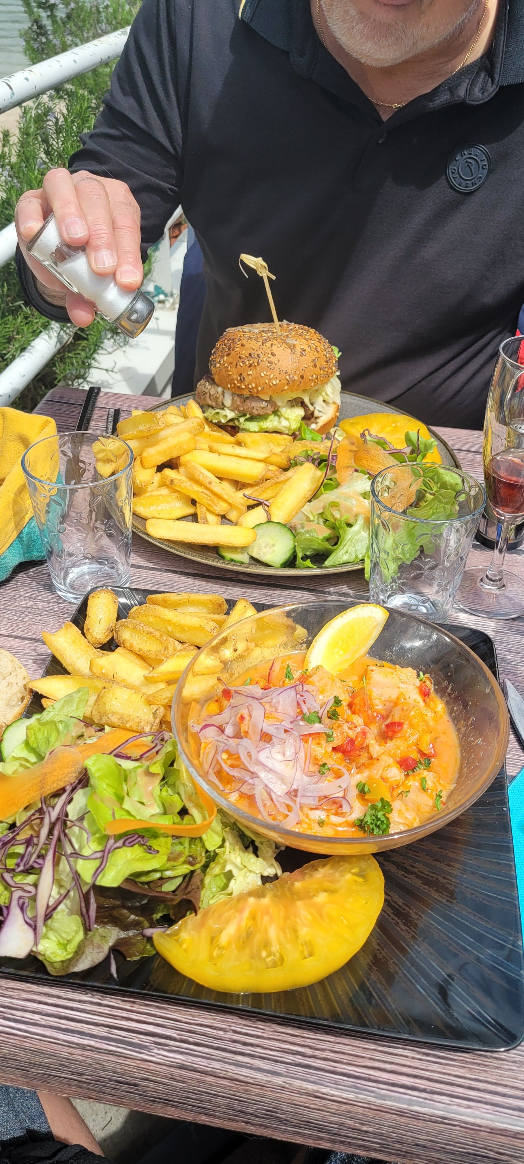 Un repas entre collègues, un samedi soir. Magnifique vue sur le lac, repas servi en terrasse. Il y en a pour tous les goûts : viande, poissons... brochettes d'agneau, délicieuses, tendres et cuisson comme demandée. Brochettes de gambas, un délice. Ainsi que le tartare de thon et le cabillaud. Quant aux desserts...une montagne de profiteroles ! Rien à redire, un repas complet. Service OK. On y retournera...😊