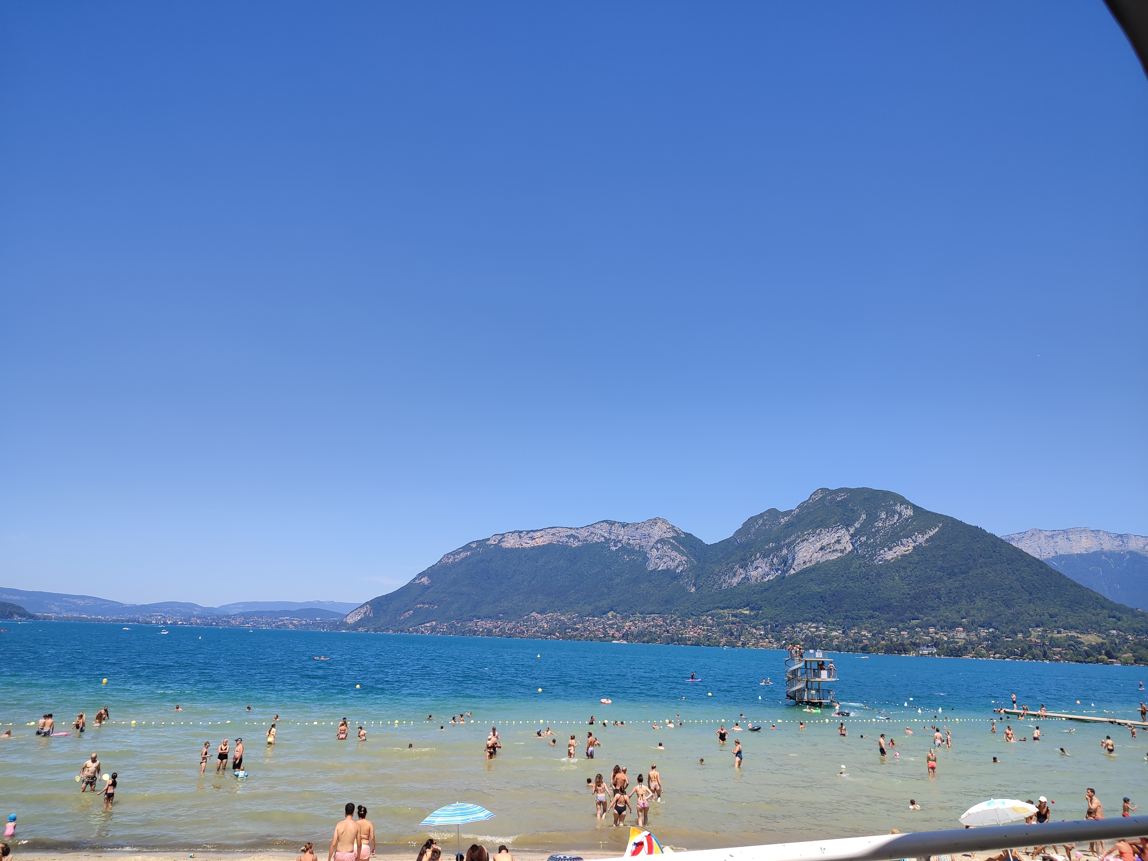 Bienvenue sur les bords du Lac d'Annecy..... Des tarifs de fous, 6 euros la desperados, 1.50 euros la chantilly en bombe pour les desserts, 19 euros la salade César, le coca est servi au verre depuis une fontaine.... Il est sans bulle, j'ai du réclamer une canette... Jolie vue mais c'est tout.....