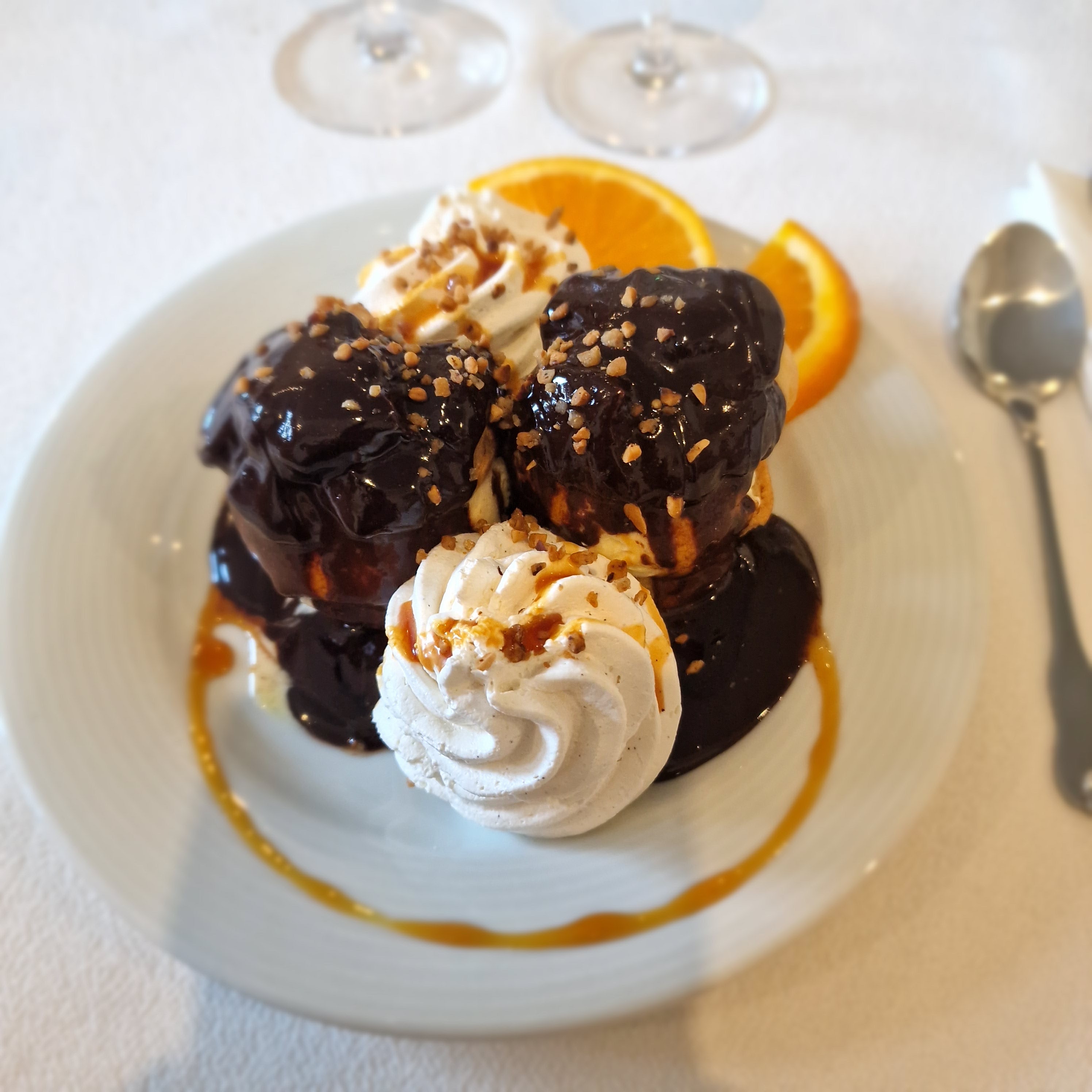 Je recommande ce restaurant, nous nous sommes régalés ! Une tomate/burrata en entrée qui pourrait paraître pourtant simple devient un vrai régal avec un sablé parmesan et un lit de sauce tomate oignons très bien préparé. Et alors les profiteroles avec cette chantilly délicieuse... parfait pour terminer le repas ! Service parfait dans un restaurant climatisé et épuré. Allez-y les yeux fermés !