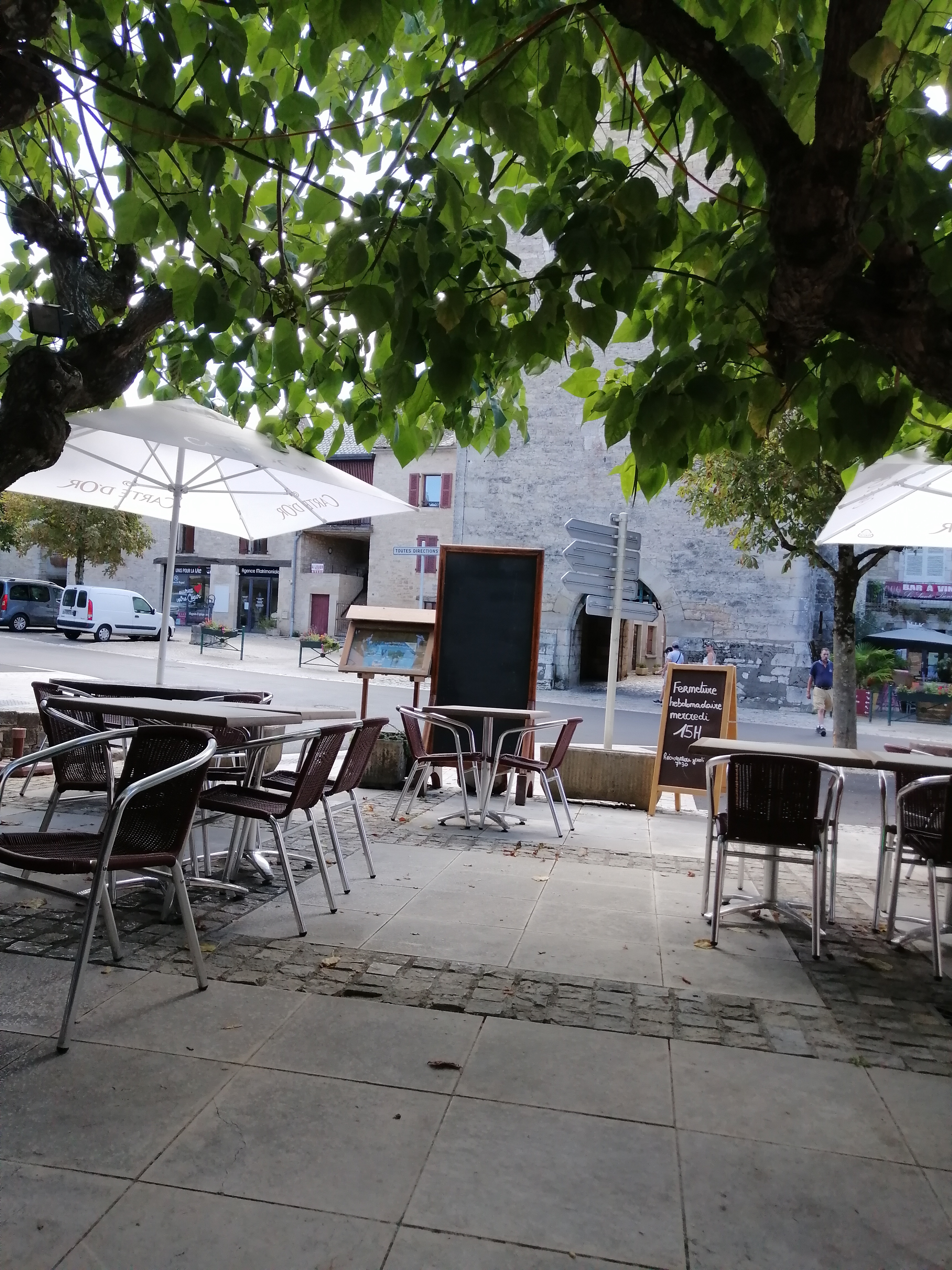 Terrasse très agréable pour y prendre un verre. Vue sur la porte de la vieille ville. Je n'ai pas encore pu y déjeuner. A suivre.