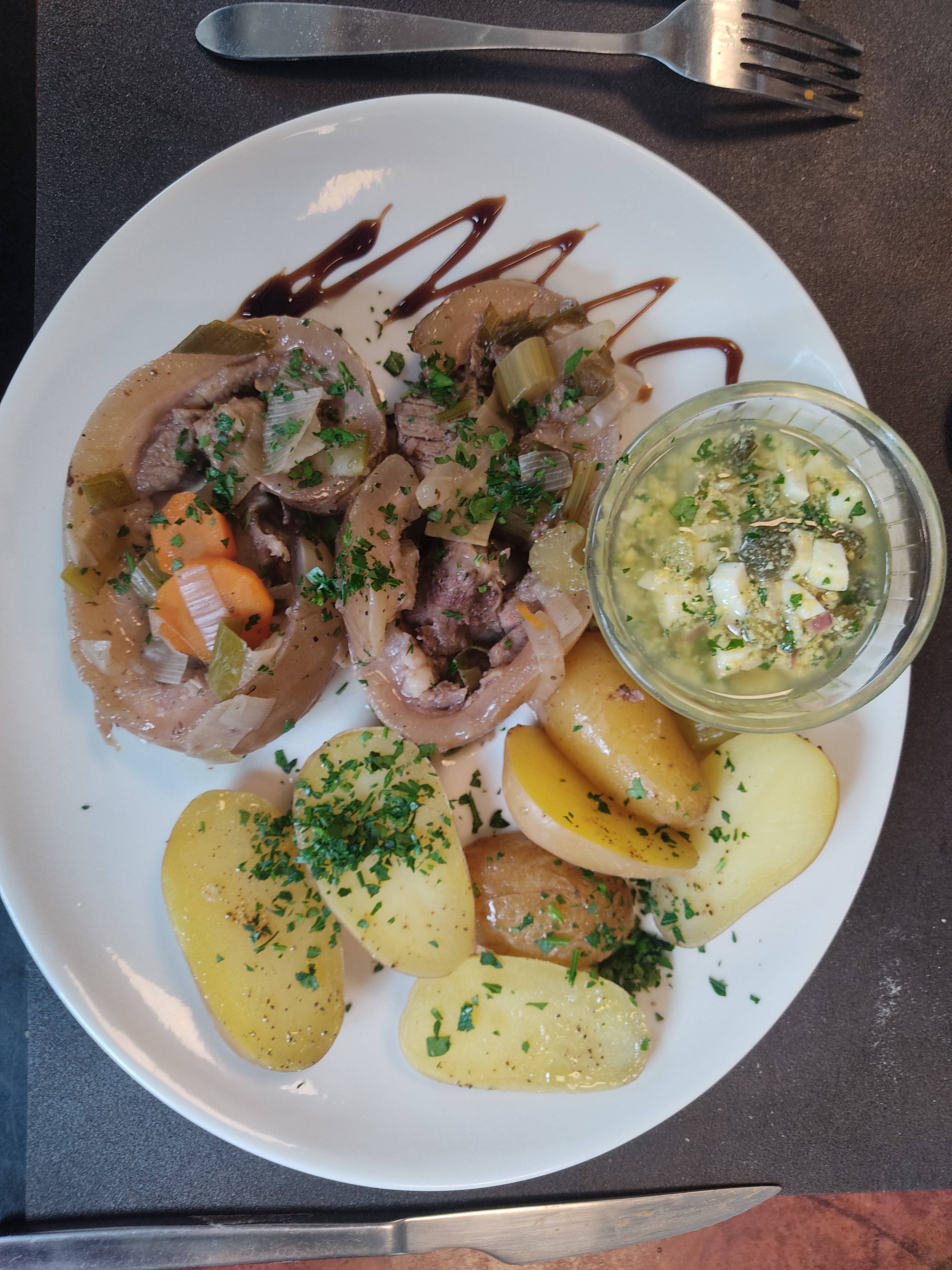 Repas en famille à trois,Bon restaurant,la chef nous a régalé( camembert rôti/charcuterie locale,chou farci et menu du jour)en salle la patronne nous a mis à l’aise,nous avons passé un très bon moment…à refaire bientôt pour une tête de veau…