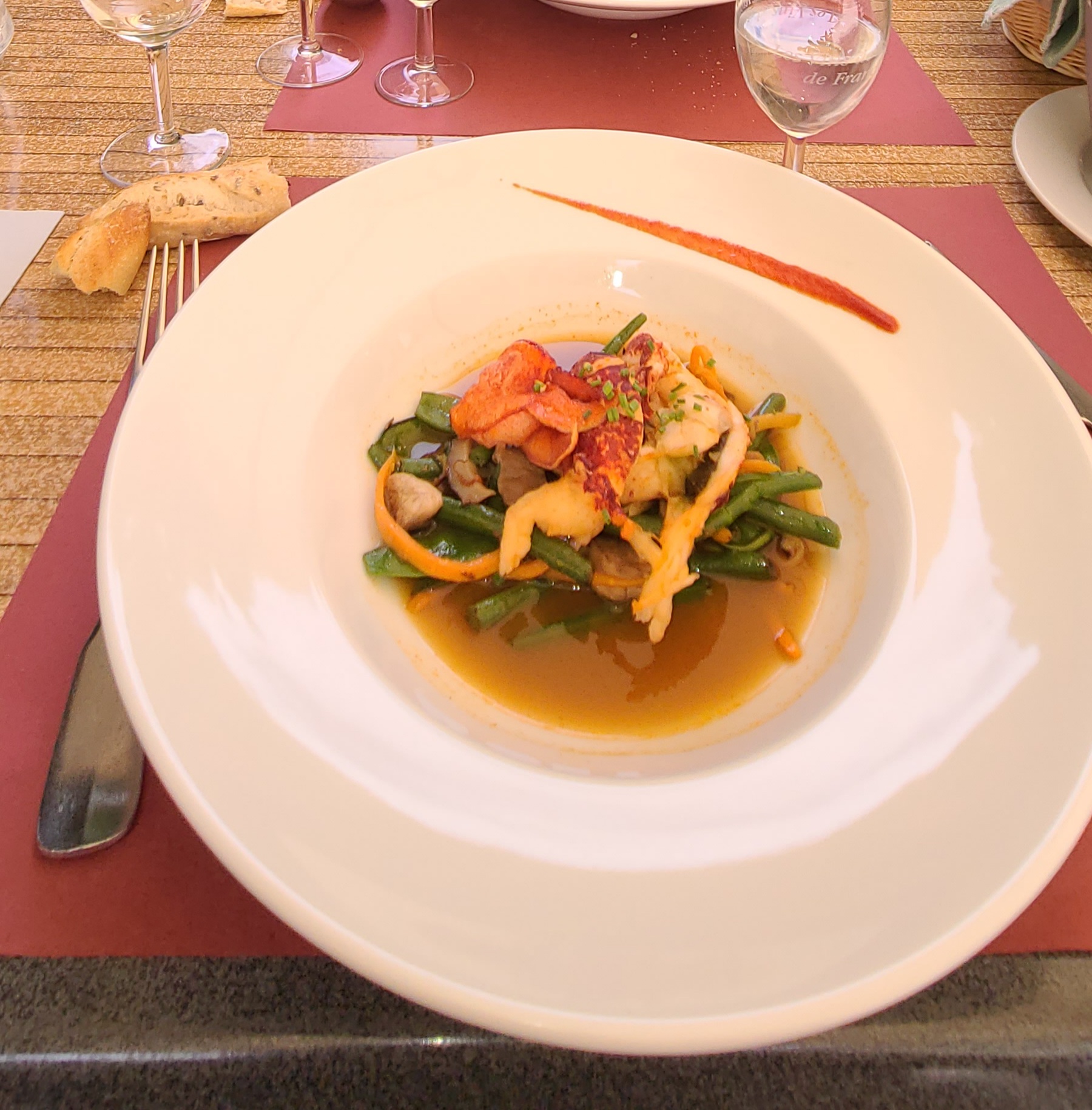 Cadre superbe, très bonne cuisine dans la tradition française sans être imaginative. Personnel agréable.