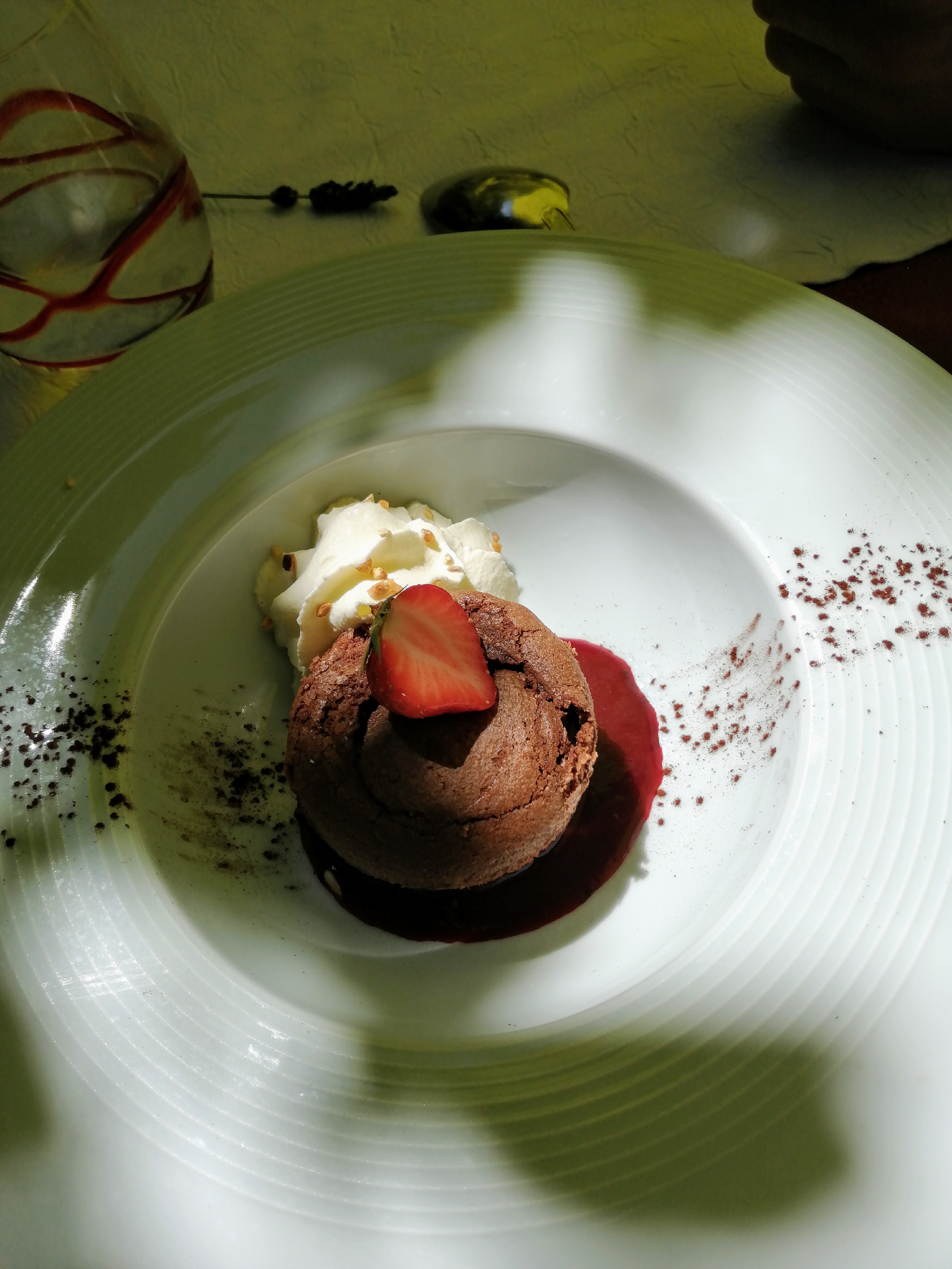 Alors par ou commencer Le cadre et jolie manger sous le grand platane est agréable côté service rien à signaler très accueillant Côté assiette c’est pas la joie, magret entier très sec pas sauce et presque cru a cœur demandé rosé, pomme de terre grenailles sèches et pas assaisonné, risotto à l’encre de seiche sans plus insipide et saint Jacques raté voilà voilà très déçu vraiment et le prix ne justifie pas du tout la qualité de la cuisine proposé 28-30 le plat la qualité y était pas !!!!! Côté dessert que des desserts à base de chocolat !!! Sauf les boules de glaces