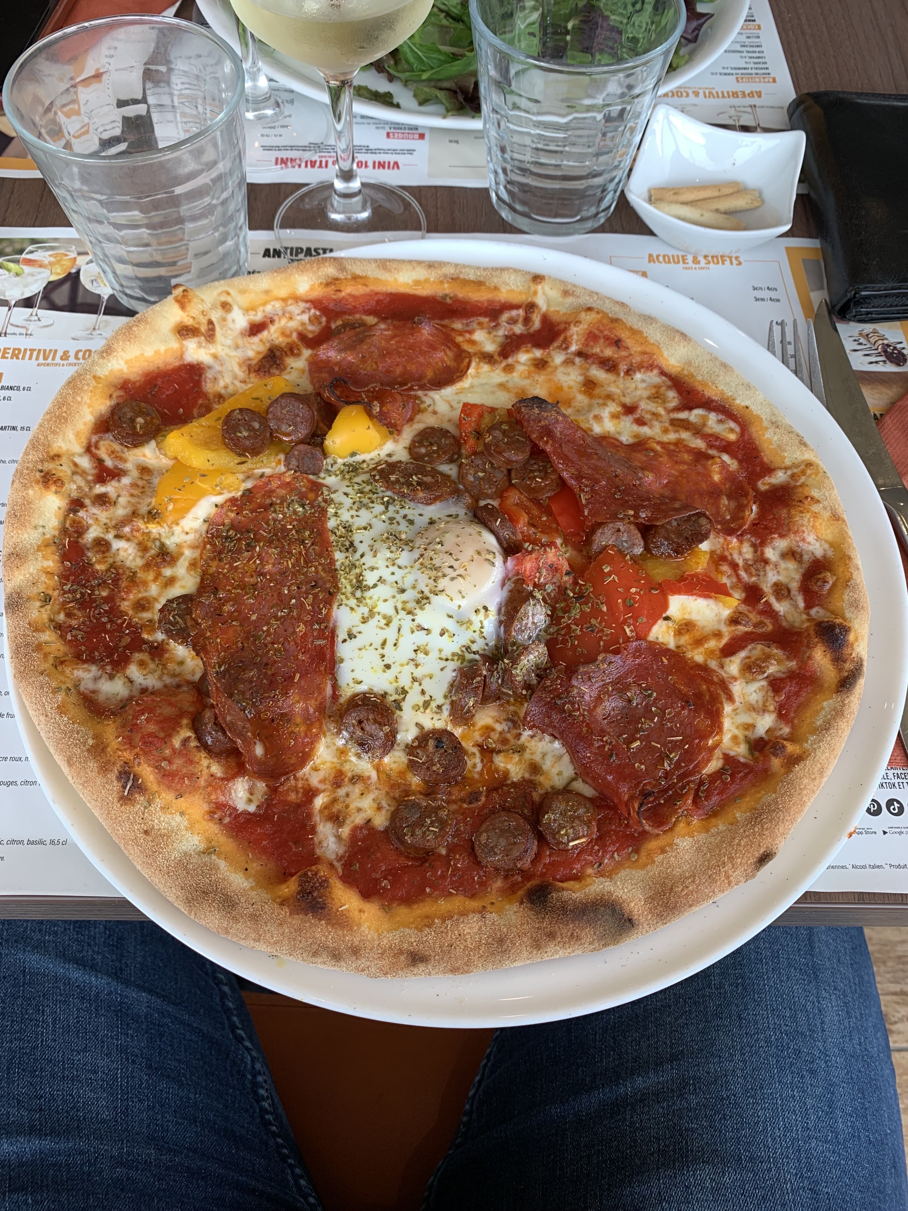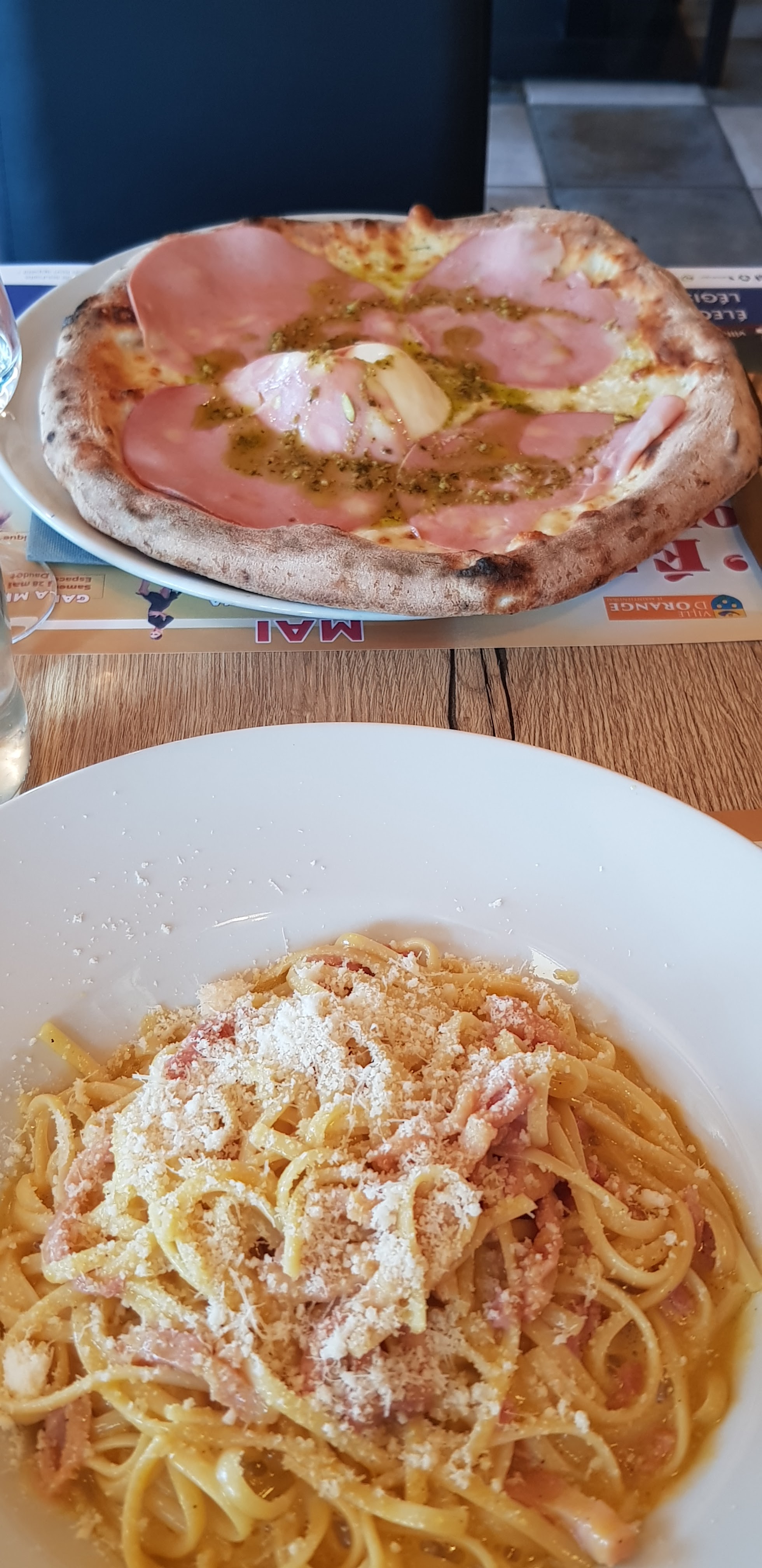 Restons sympa, serveur aussi, j'ai pris une pizza carbonara très bonne mais que je ne n'ai pas pu finir