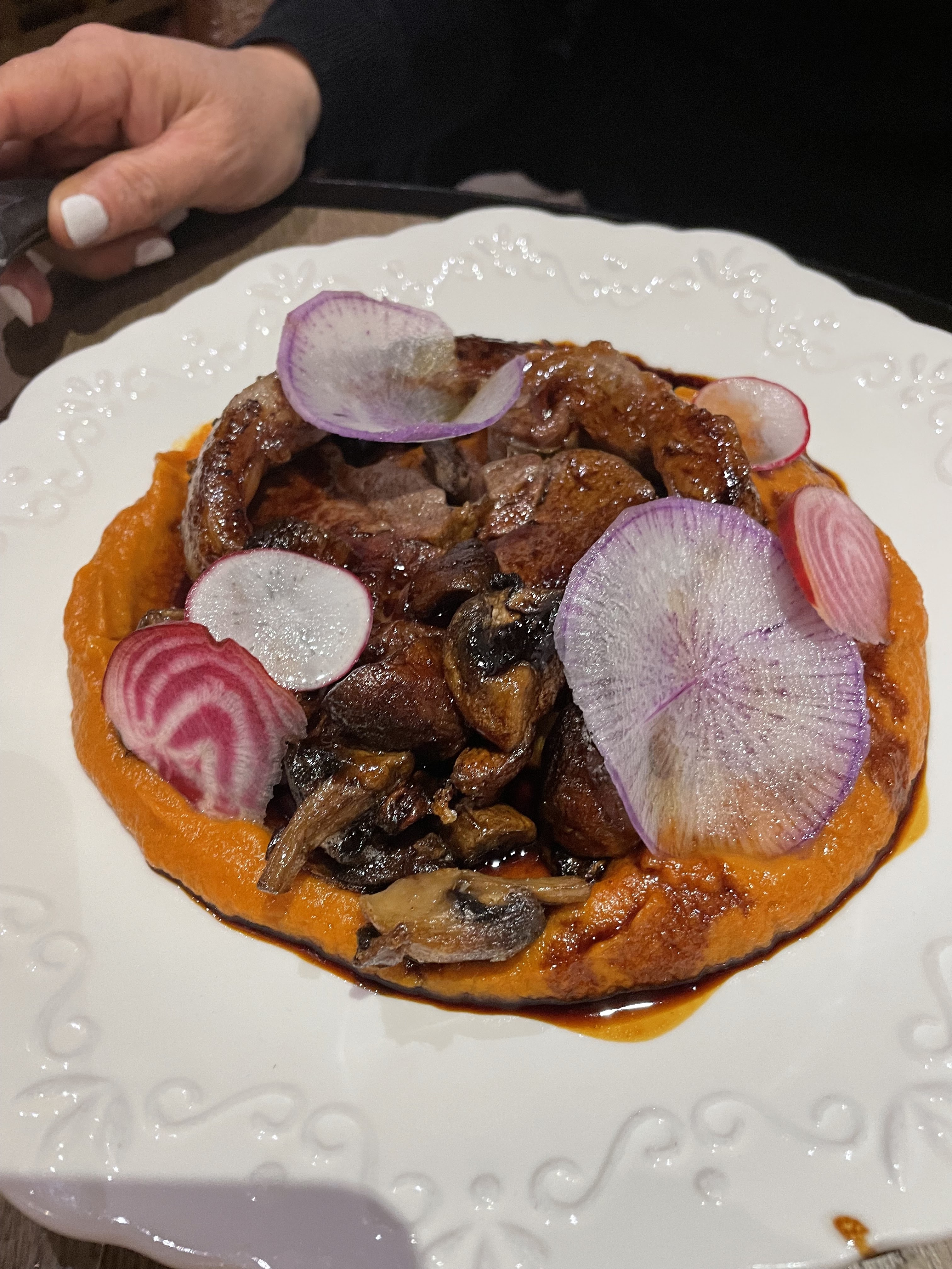 Restaurant agréable et la cuisine est bonne mais reste un peu sur l’estomac. La volaille était très chère au vu de la quantité et du faible accompagnement.