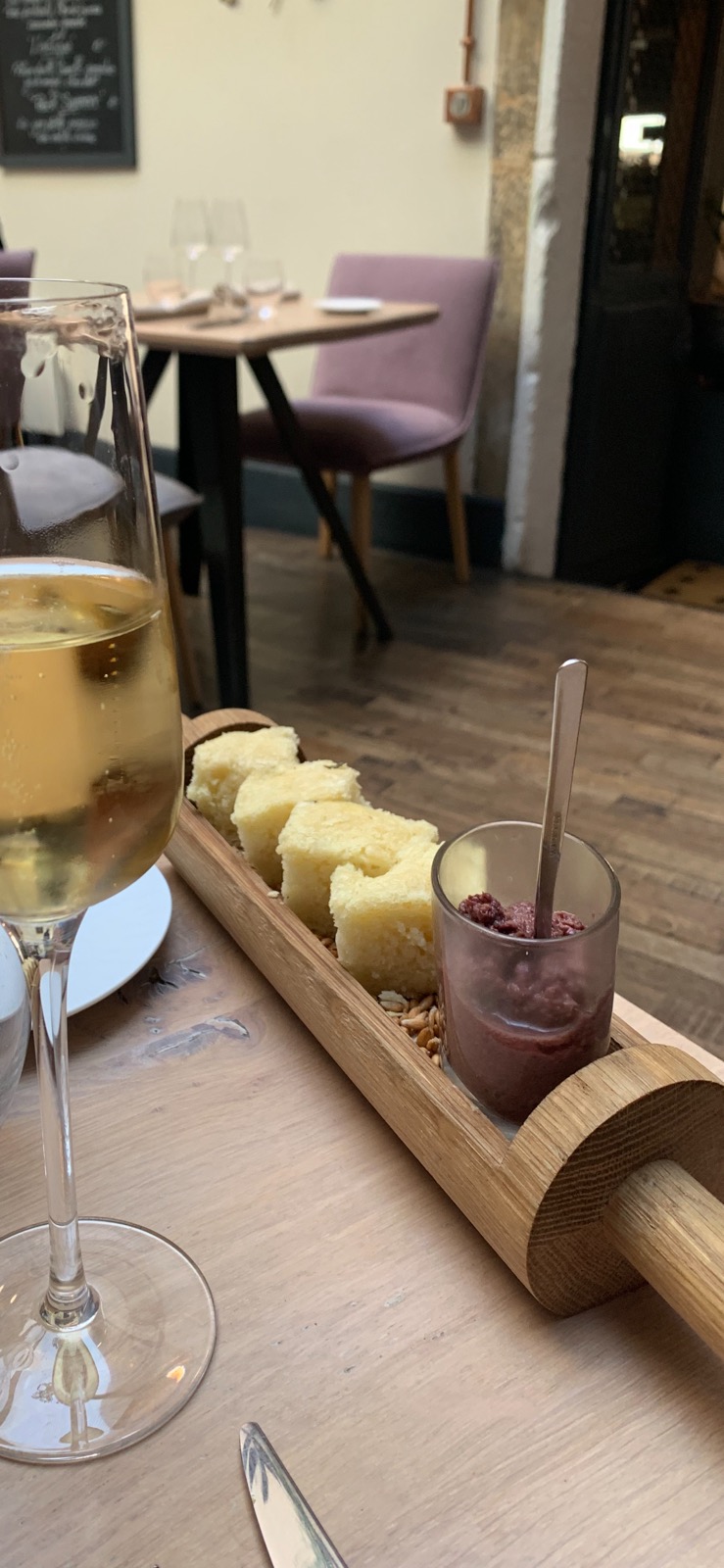 Ce restaurant est absolument a tester ! Le personnel et accueillant, la nourriture délicieuse et les prix sont très corrects compte tenu du niveau de qualité... Sauf en ce qui concerne l'accord met/vins je me permet de le déconseiller car 27€/pers pour 3 très petits verres de vins qui ne dépassent pas 10€ chez un caviste ou Leclerc.... Il faudrait soit augmenter la quantité (la base c'est 12cL) soit mettre des vins moins jeunes et de meilleurs qualité ! Sinon évidemment j'y retournerai c'est certain!!!!