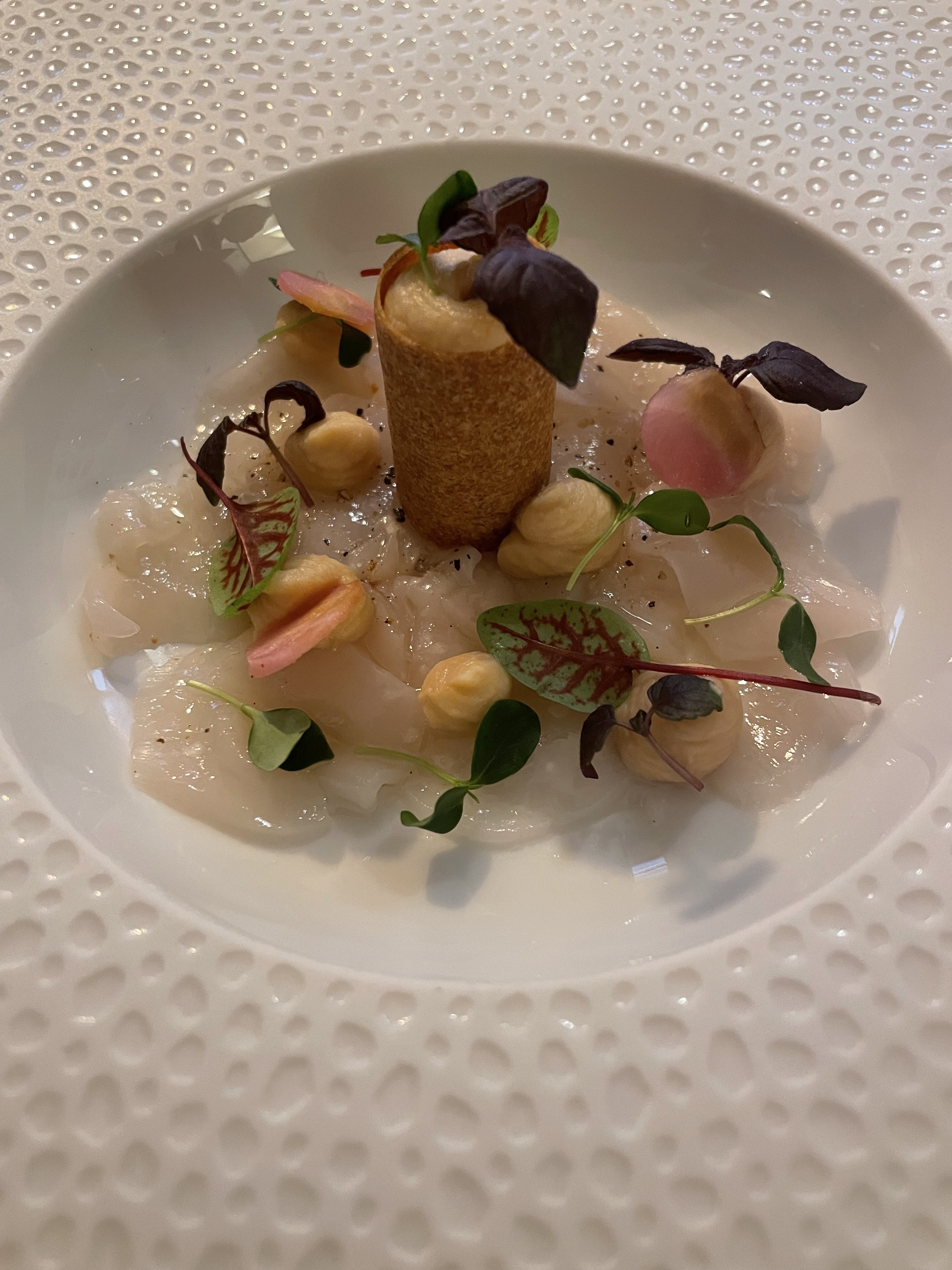 Restaurant dans lequel nous sommes rentrés par hasard. Nous avons choisi un service en 6 plats. Et lorsque pour l’apéritif nous avons mentionné un heureux événement le serveur est venu nous demander si j’étais immunisée contre la toxoplasmose. J’ai trouvé cette attention vraiment très délicate. L’intégralité de mon menu a été adapté en conséquence. Très bons plats. Et service impeccable.