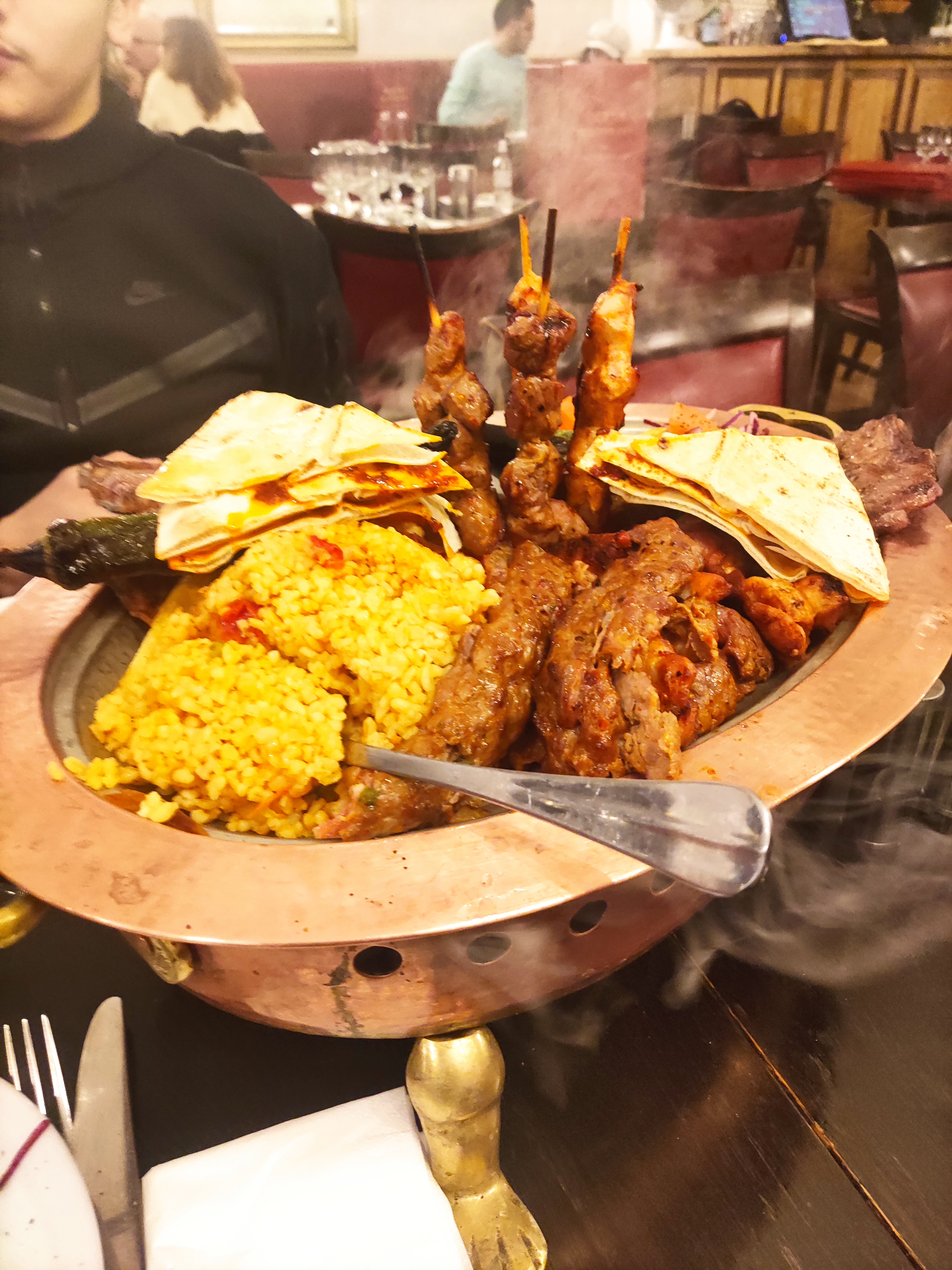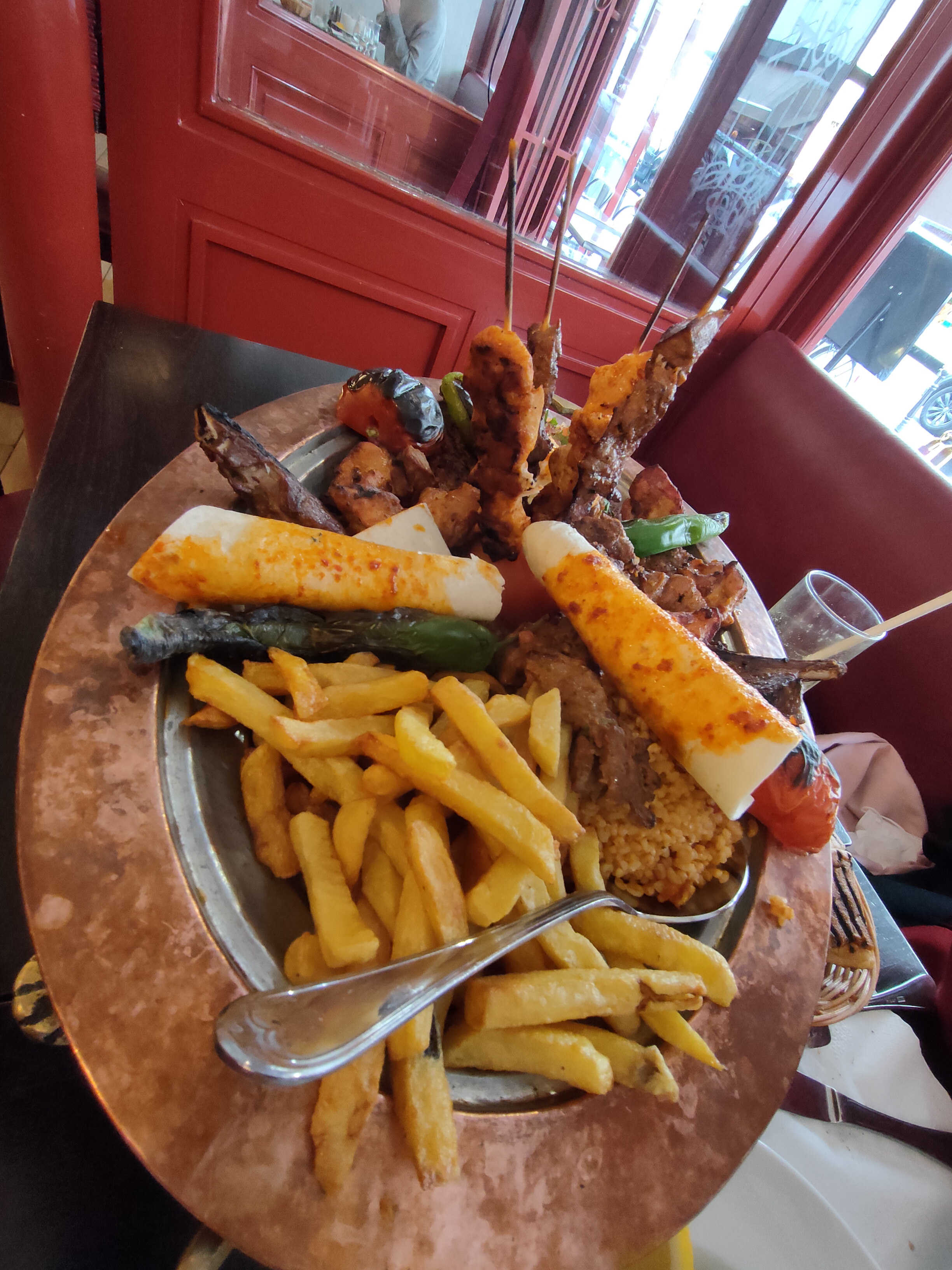 Restaurant de spécialités turques à 2 pas de la porte Saint Denis. On a pris un mix grill pour 2 bien copieux. Serveurs efficaces