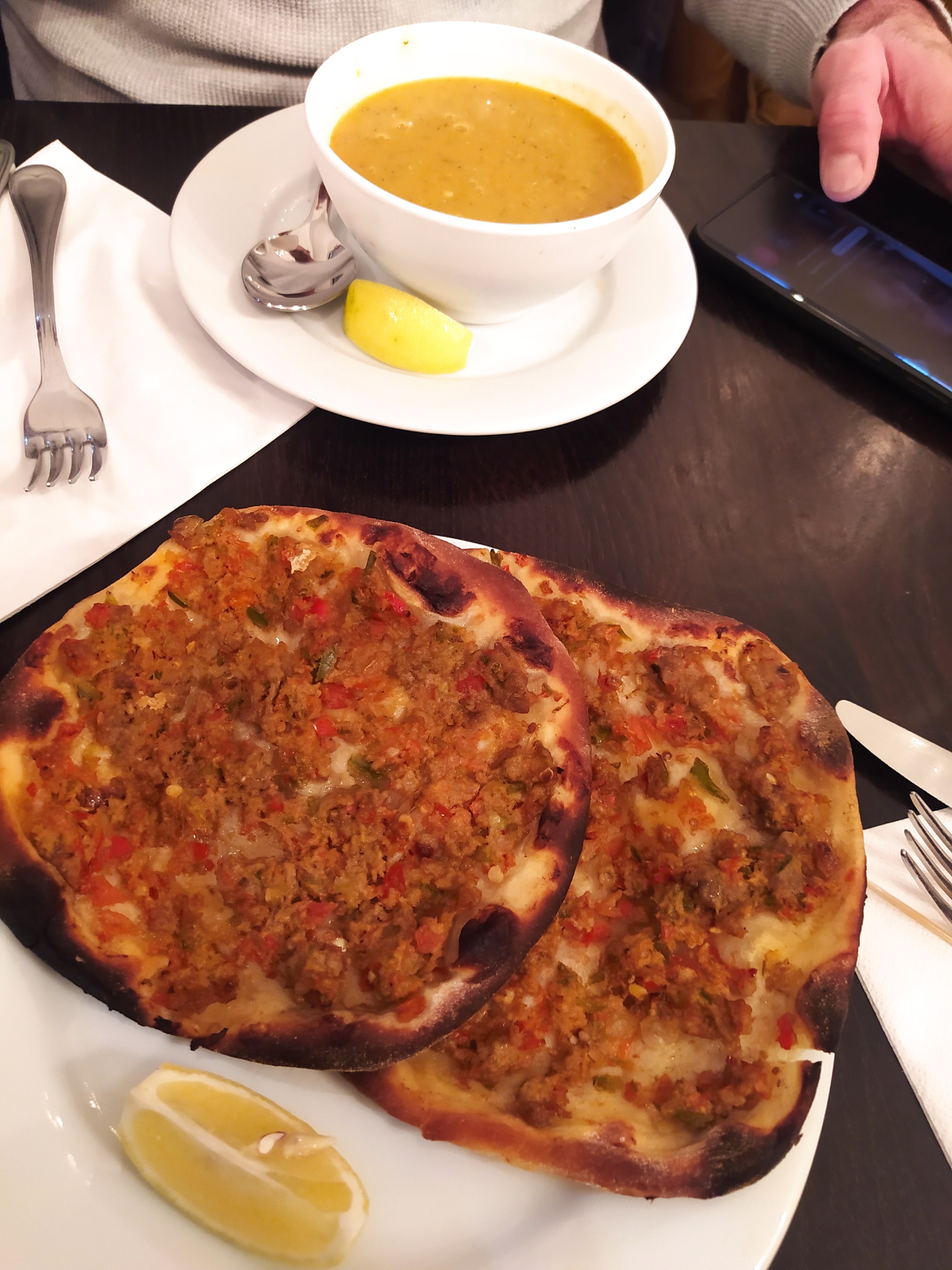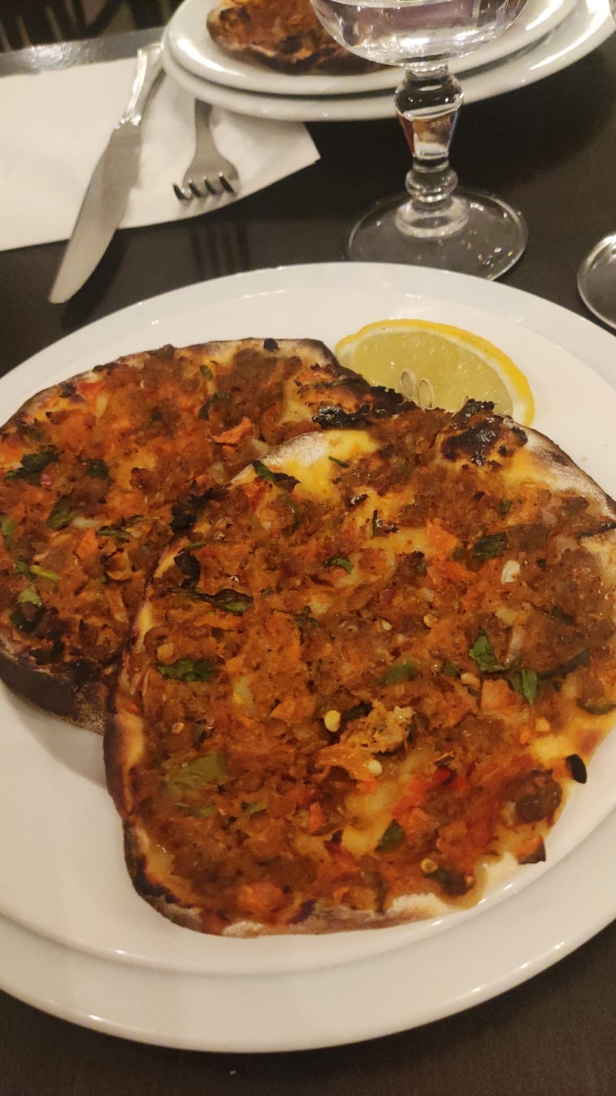 Le premier restaurant turque « crevard » où j’ai pu me rendre. Je n’ai jamais eu un lahmajun à 5€ aussi minuscule, 3 culières à soupe d’une sorte de Tzatziki sans goût à 5 ou 6€ Des toutes petites quantités pour des prix exorbitants, sur les photos ça ne parait pas petit mais le tzatziki faisait réellement 3 cuillères à soupe et je vous garantie que celui d’une supérette est meilleur. Le lahmajun faisait la taille d’une main d’adulte. Du yaourt servi étrangement. On peu avoir l’impression que la viande est servie généreusement sur la photo mais elle est mélangée à des morceaux de pains.