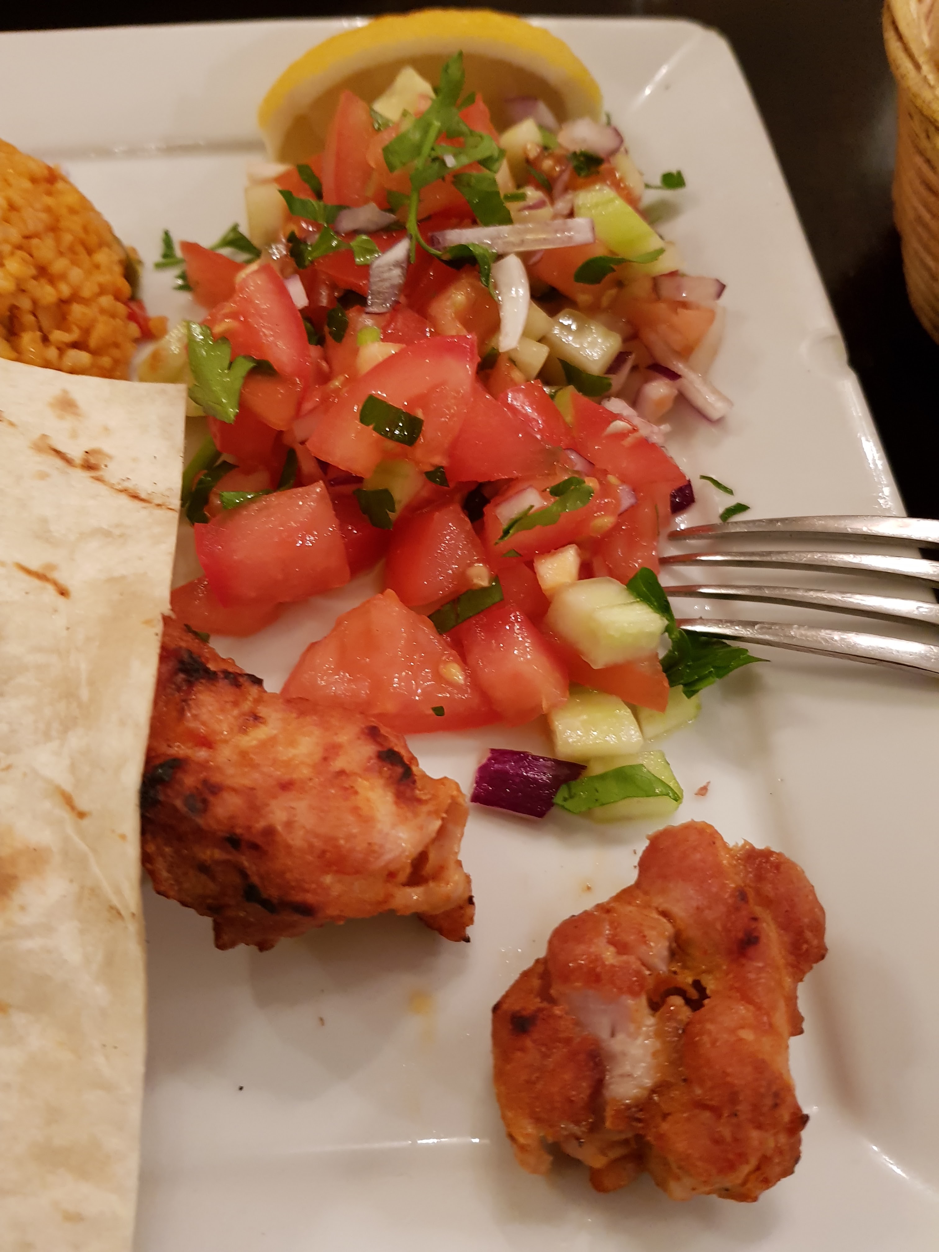 Personnel accueillant, bel espace, très déçu de la brochette de poulet, mal cuit, avec une odeur de poisson !? Un poisson a du etre cuit juste avant et sur la meme plaque... pain pas top comparé a d'autre kebab de quartier bien moins cher.. bref a éviter
