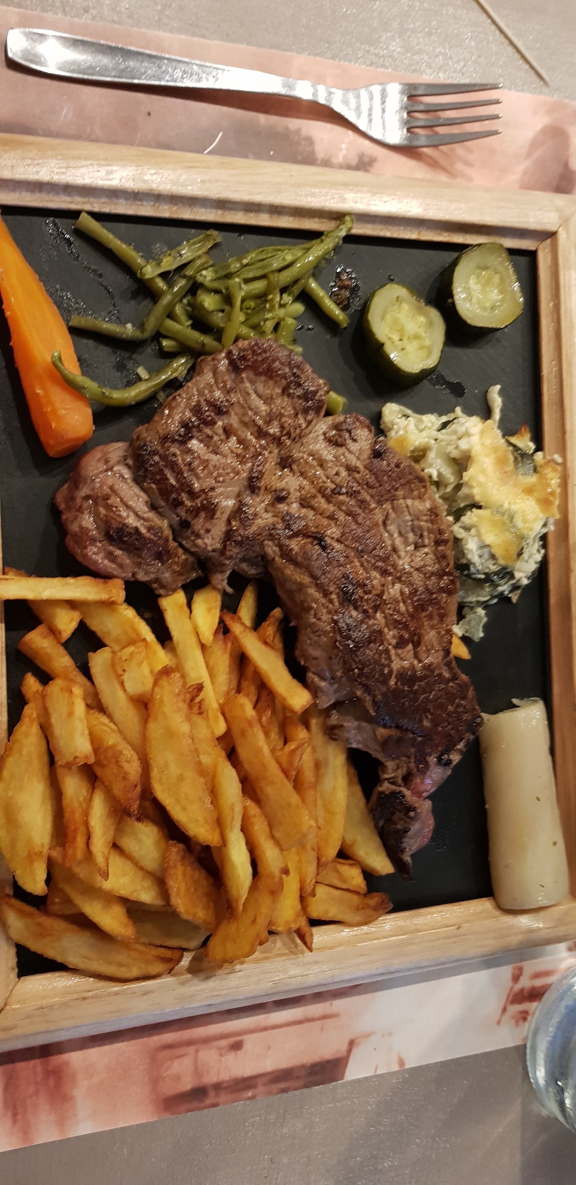 A la lecture des avis et des notes, nous avons dû tomber un mauvais jour. Entrecote, légumes, et pomme de terre sans aucun goût. A croire que le cuistot avait perdu son palais. Service très chaleureux
